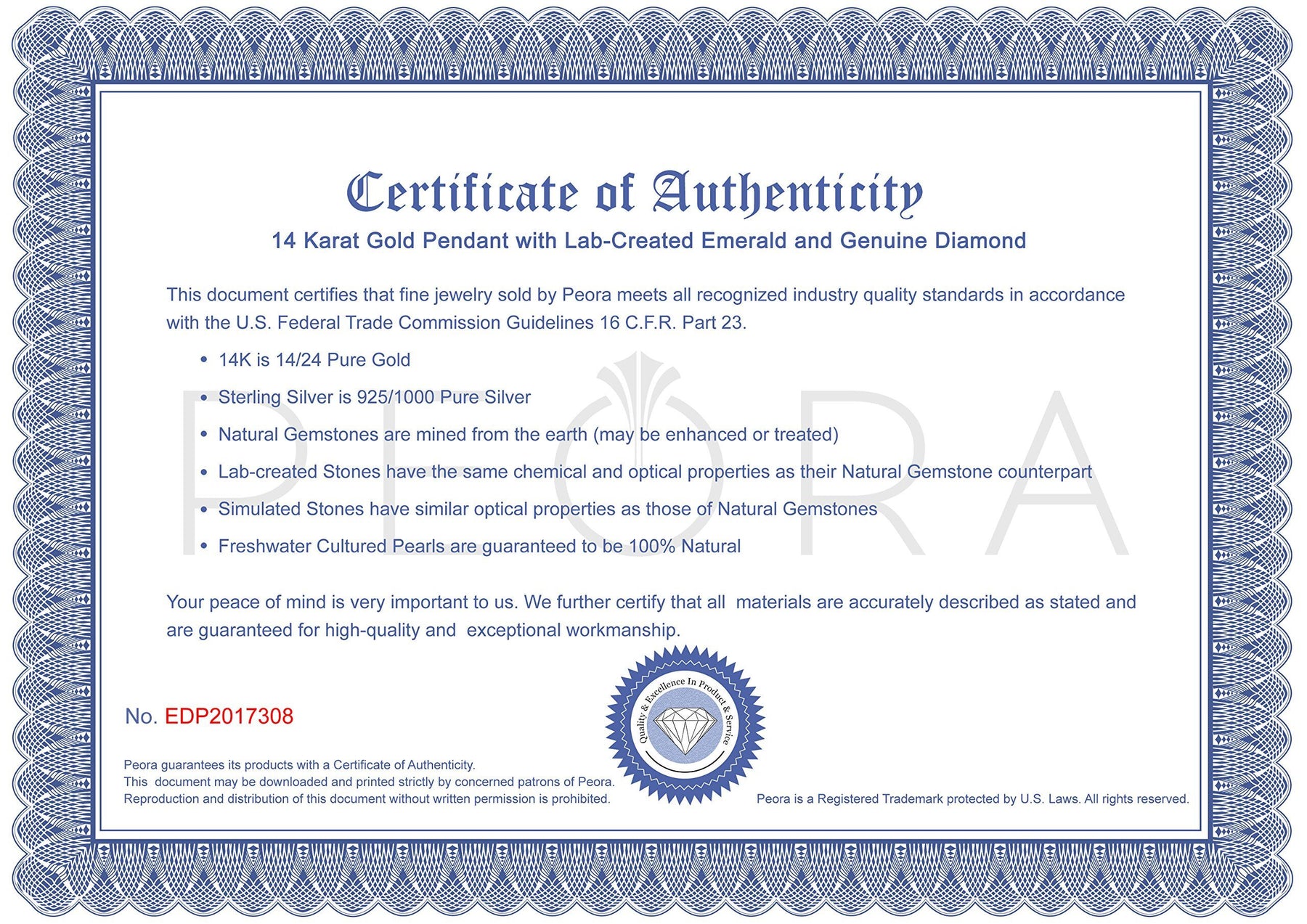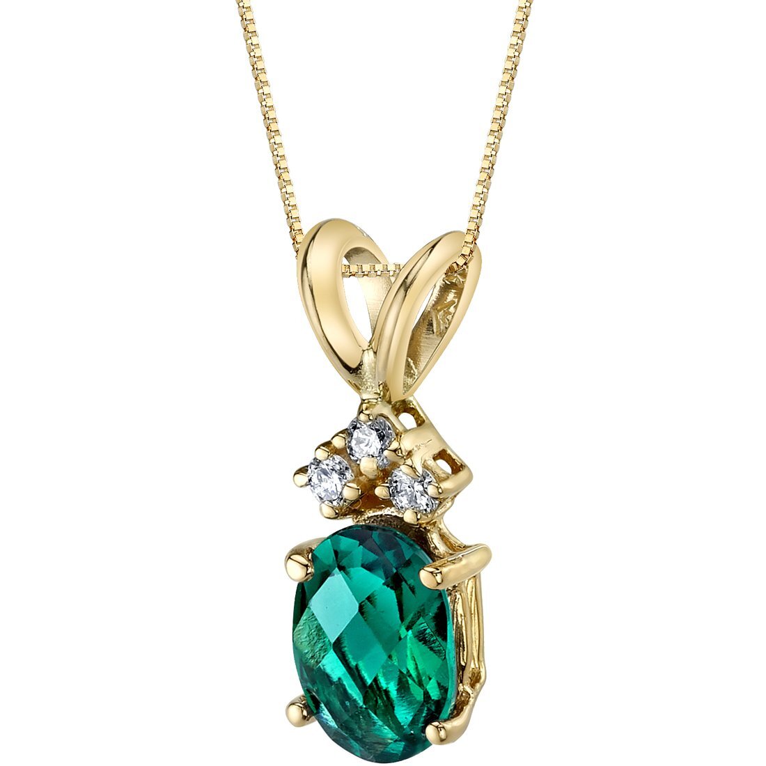 This classic pendant features oval shape Peora created Emerald gemstones in 14K yellow gold.