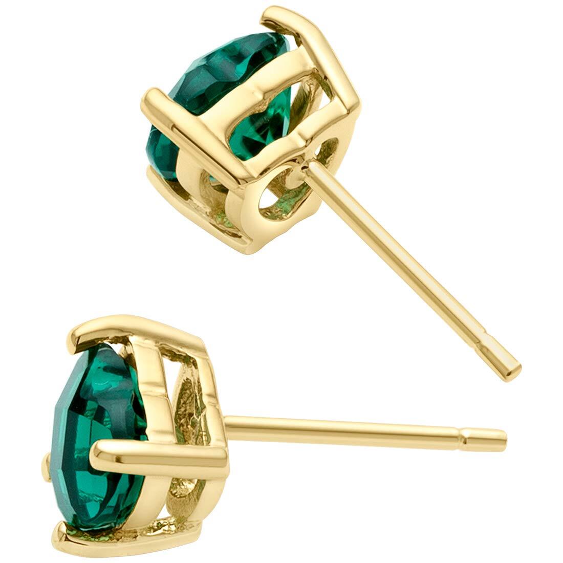 These versatile earrings feature heart shape Peora created emerald gemstones in 14K yellow gold.