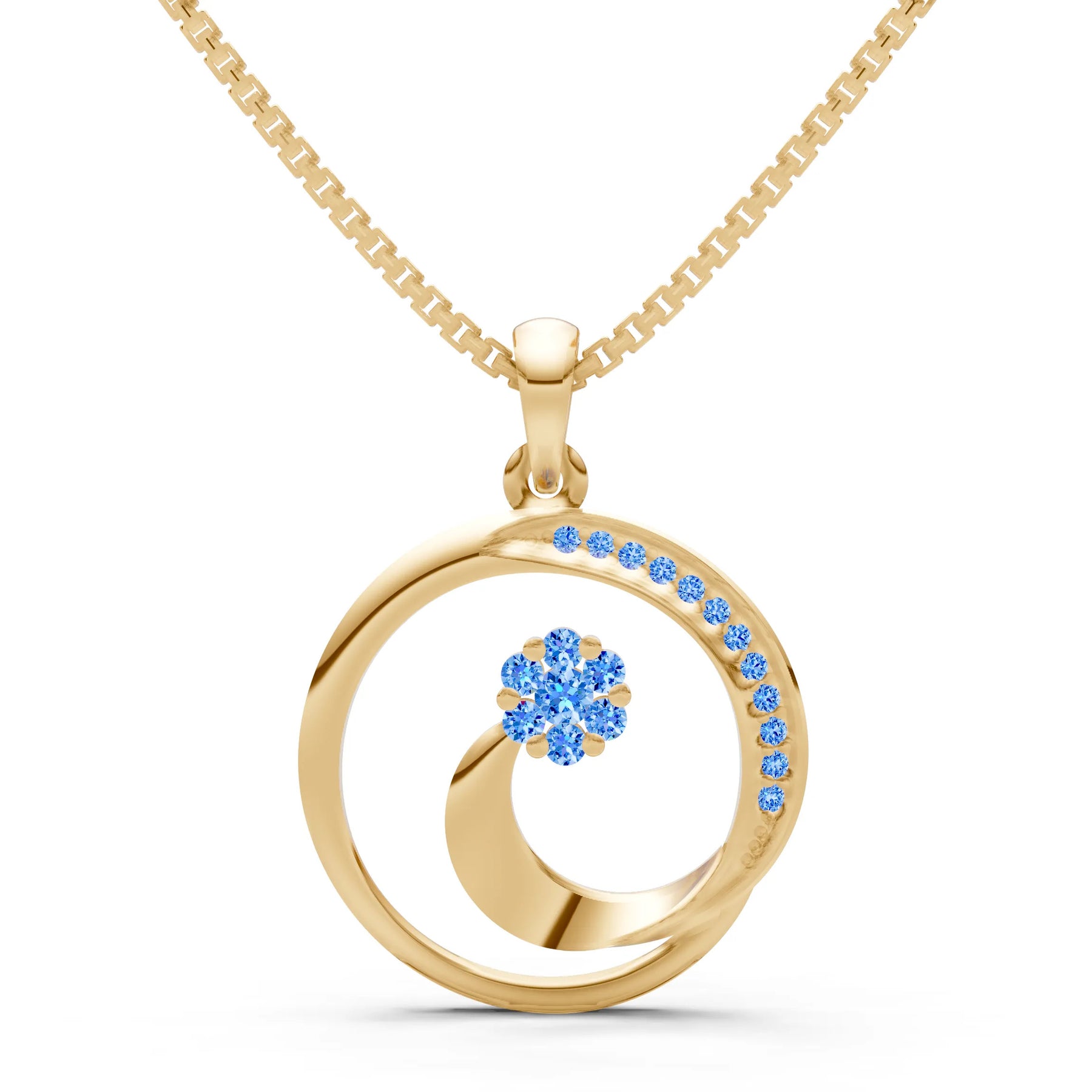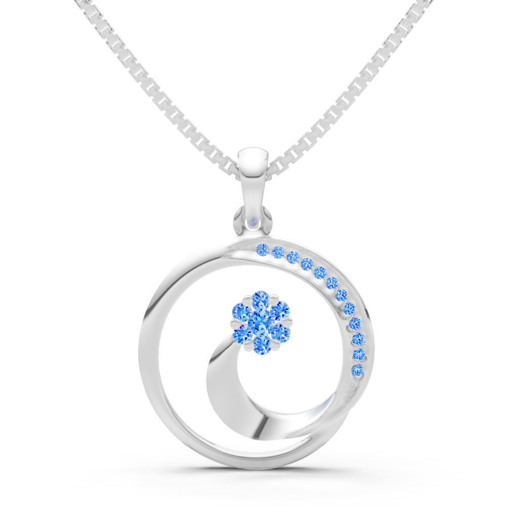 Swiss Blue Topaz Concentric Circle Flower Pendant