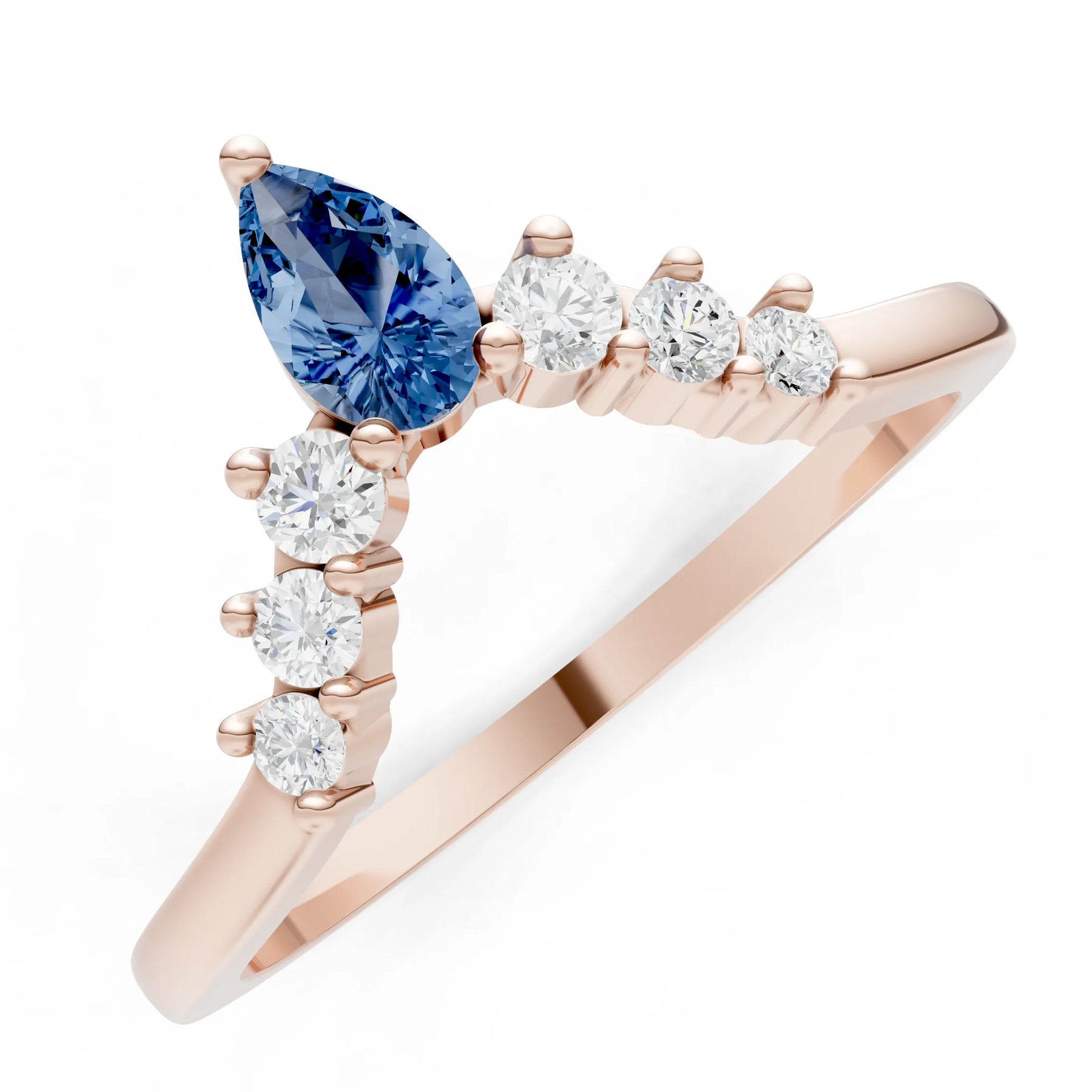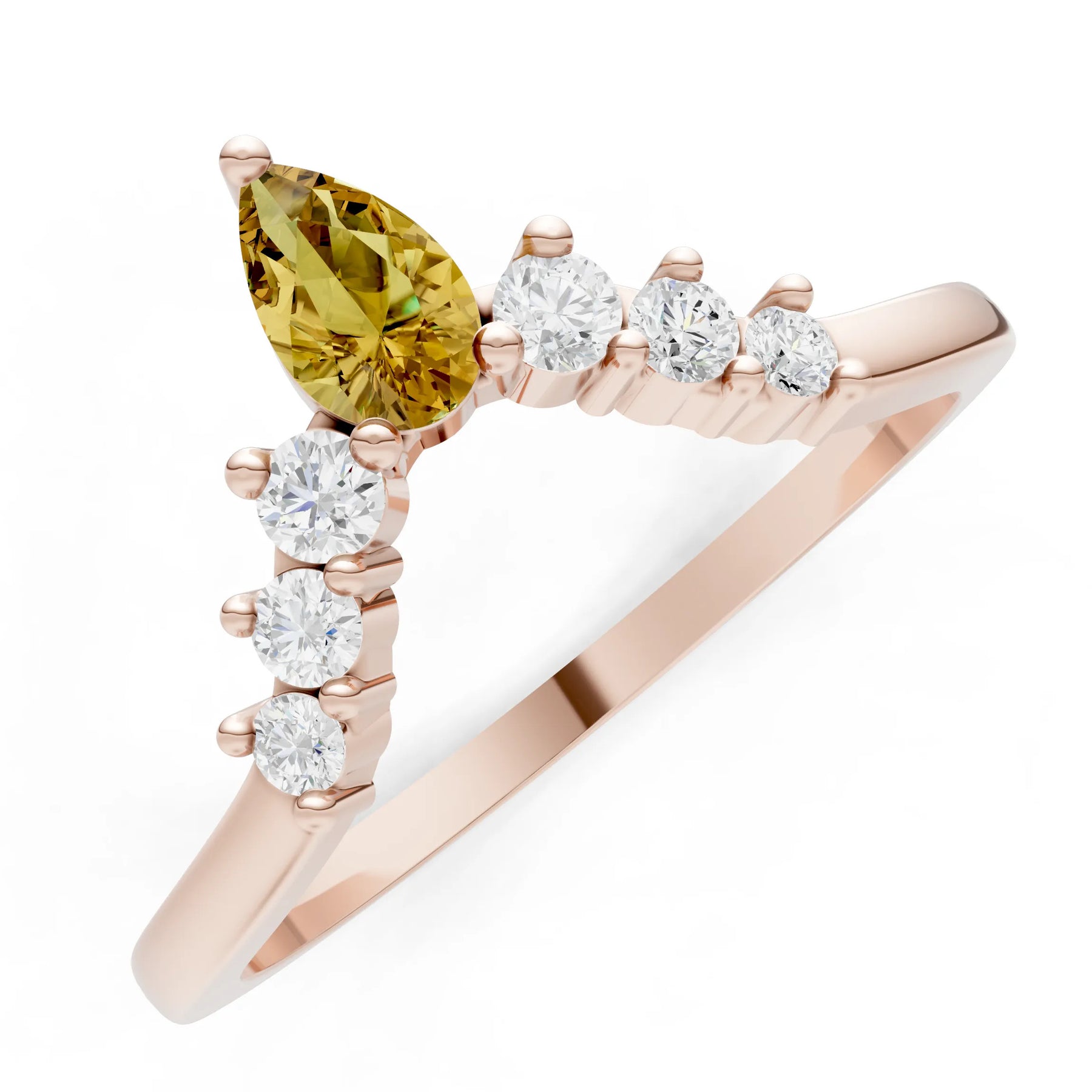 Pear & Round Shape Curved Wedding Gold Band