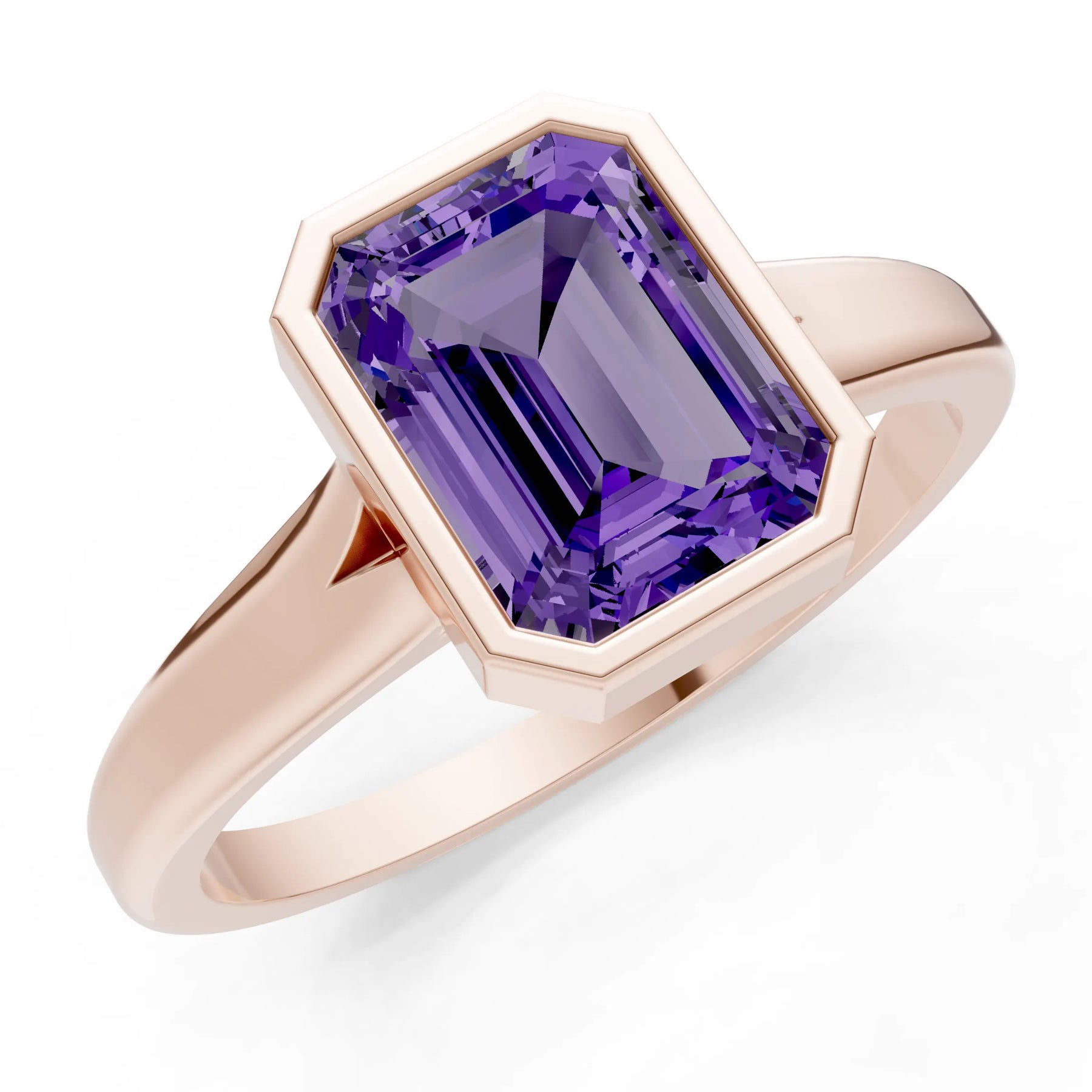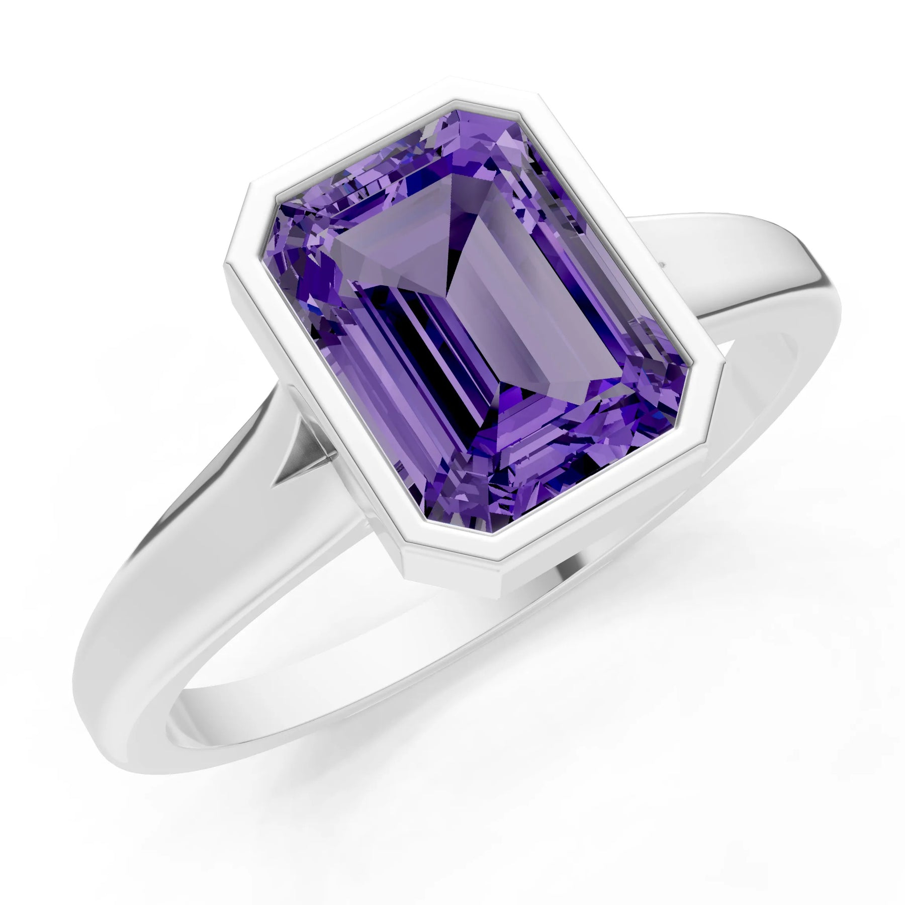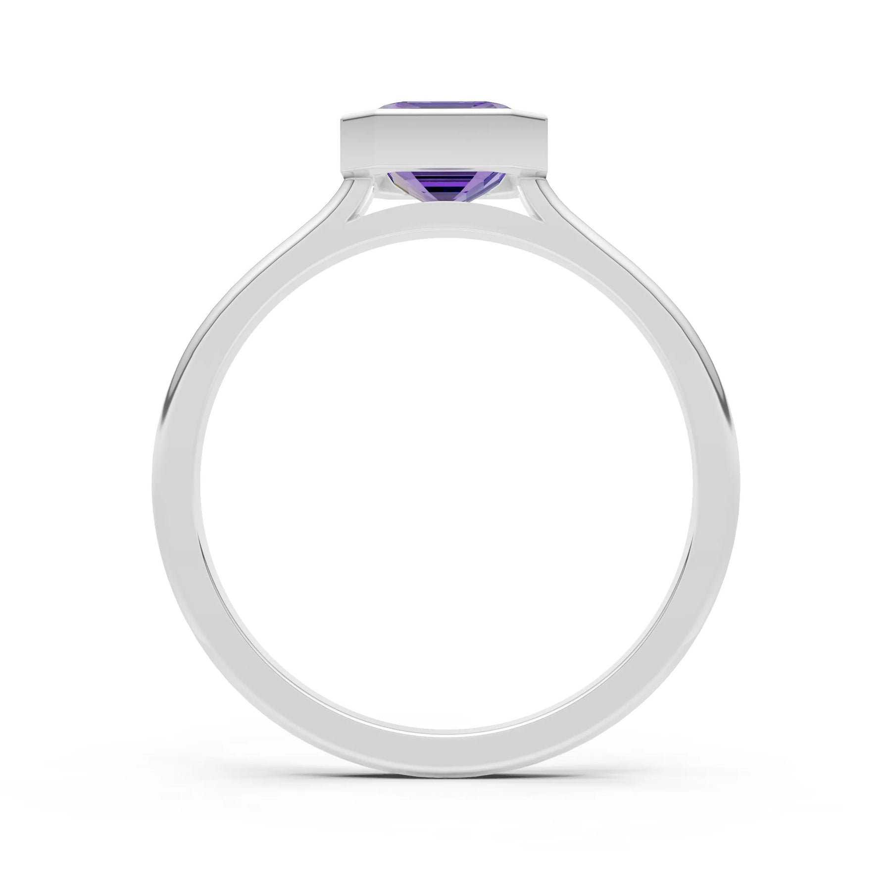 Amethyst Emerald Cut Bezel Set Solitaire Ring