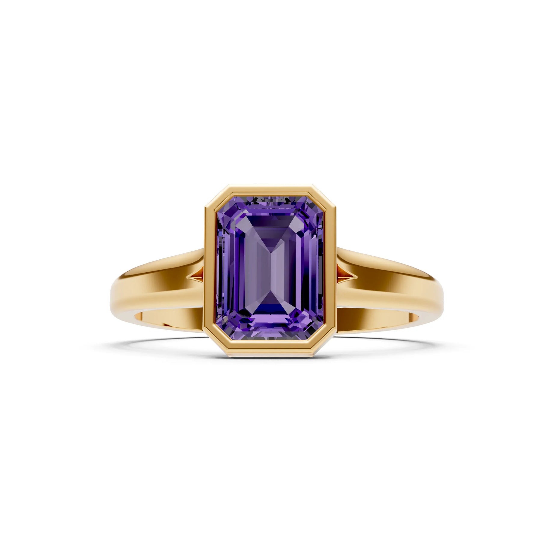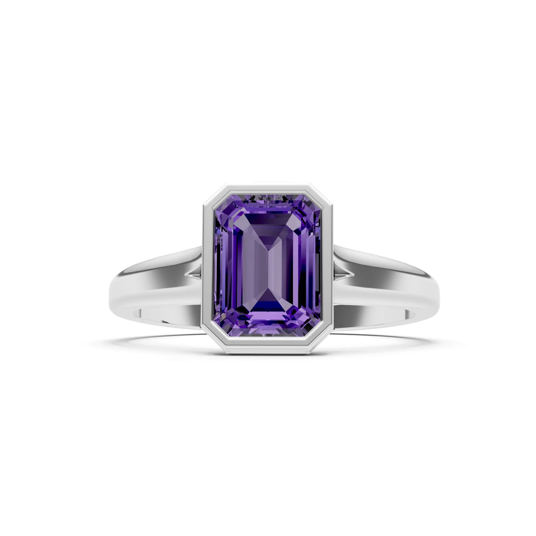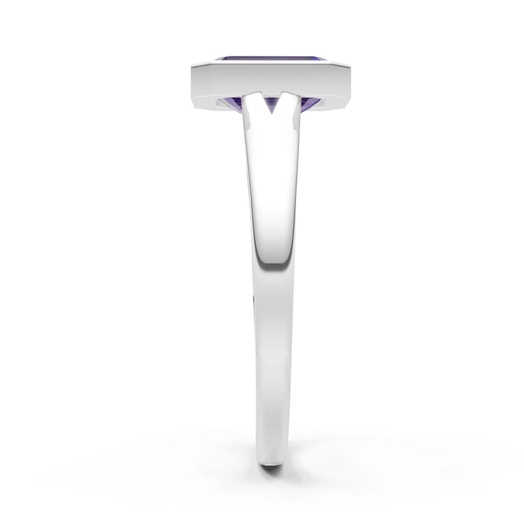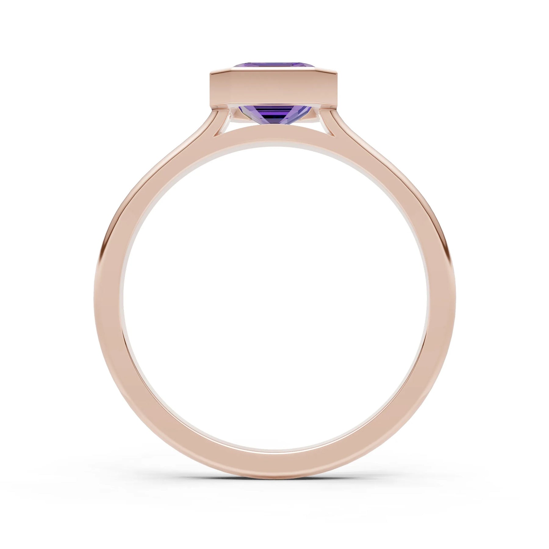 Amethyst Emerald Cut Bezel Set Solitaire Ring