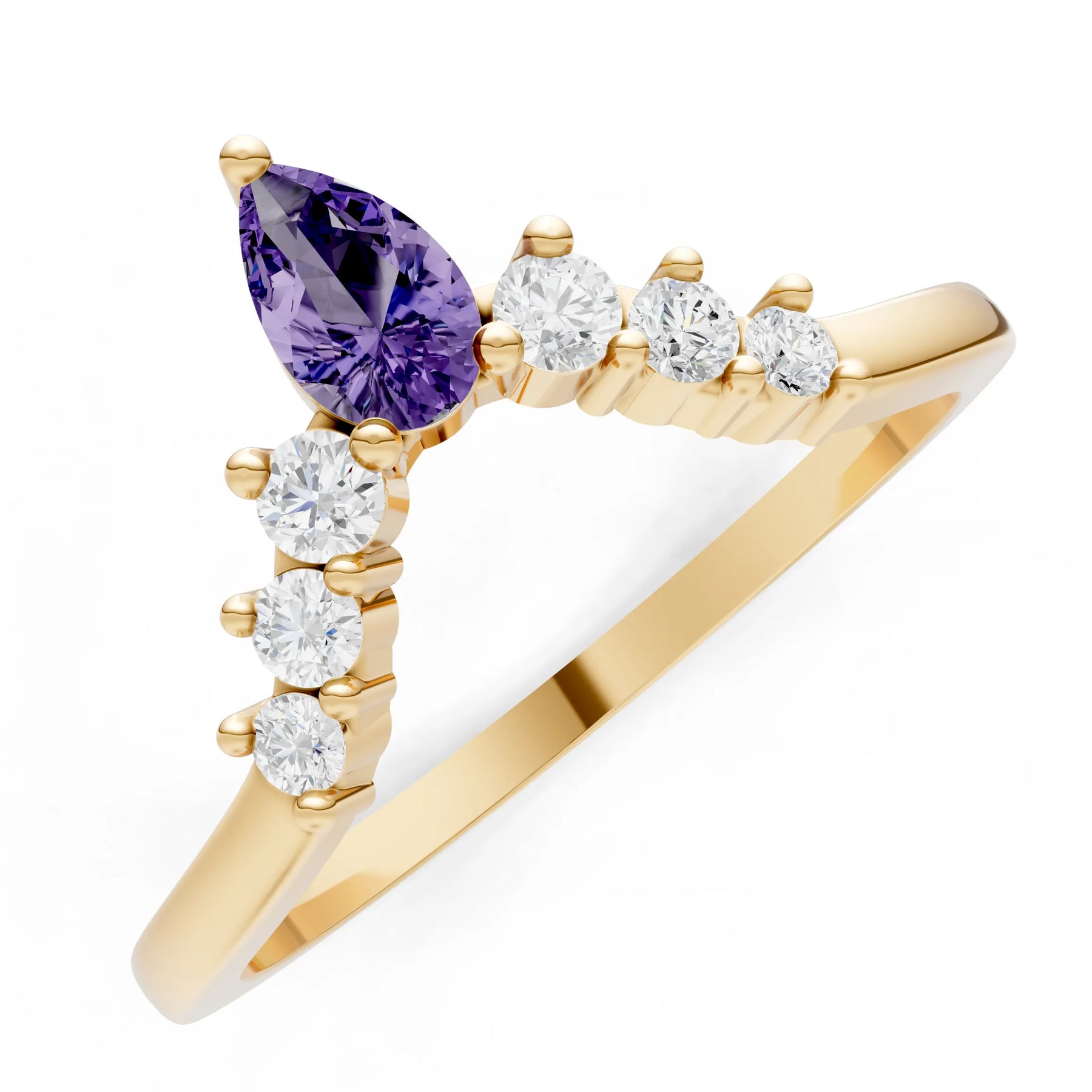 Amethyst Pear & Round Shape Curved Wedding Band