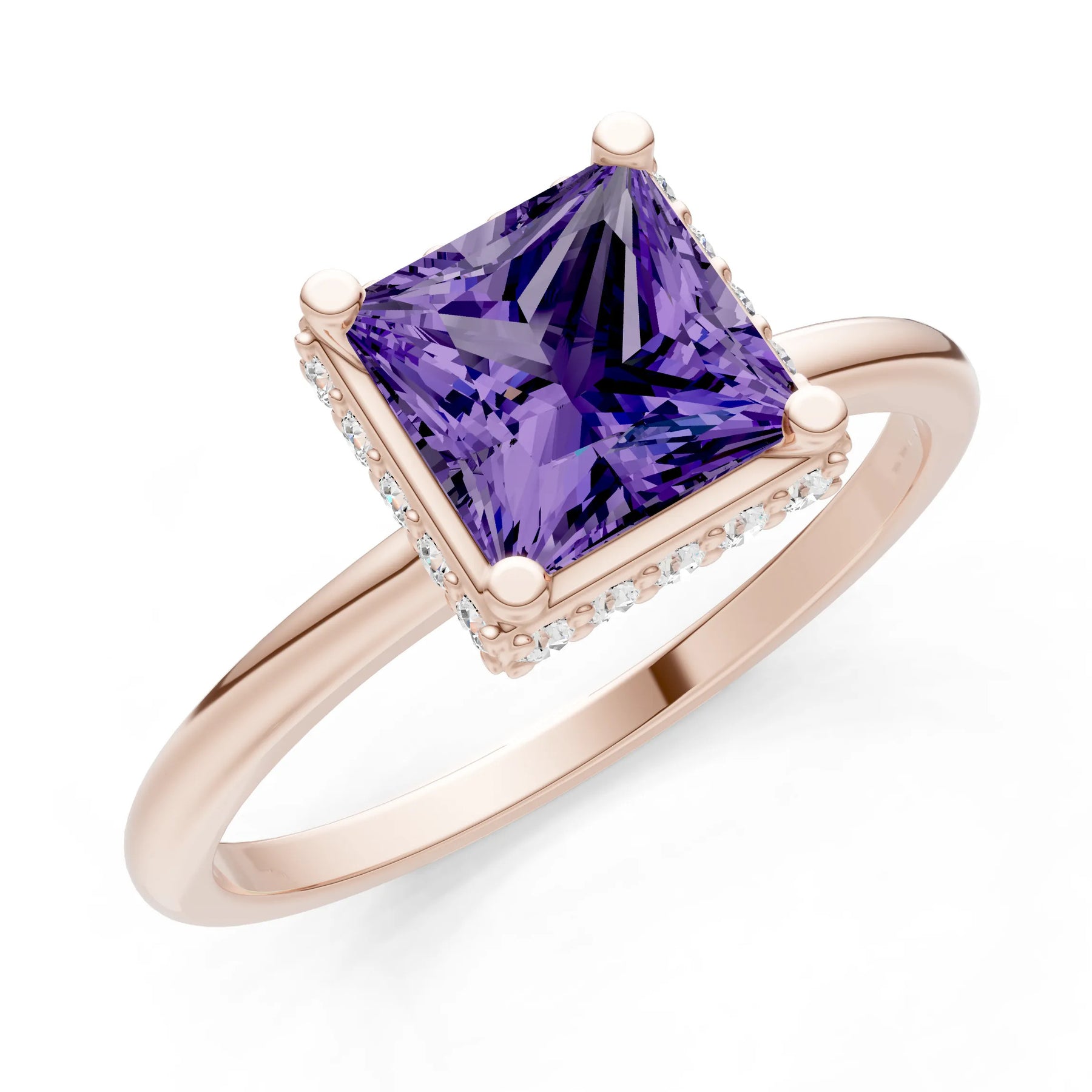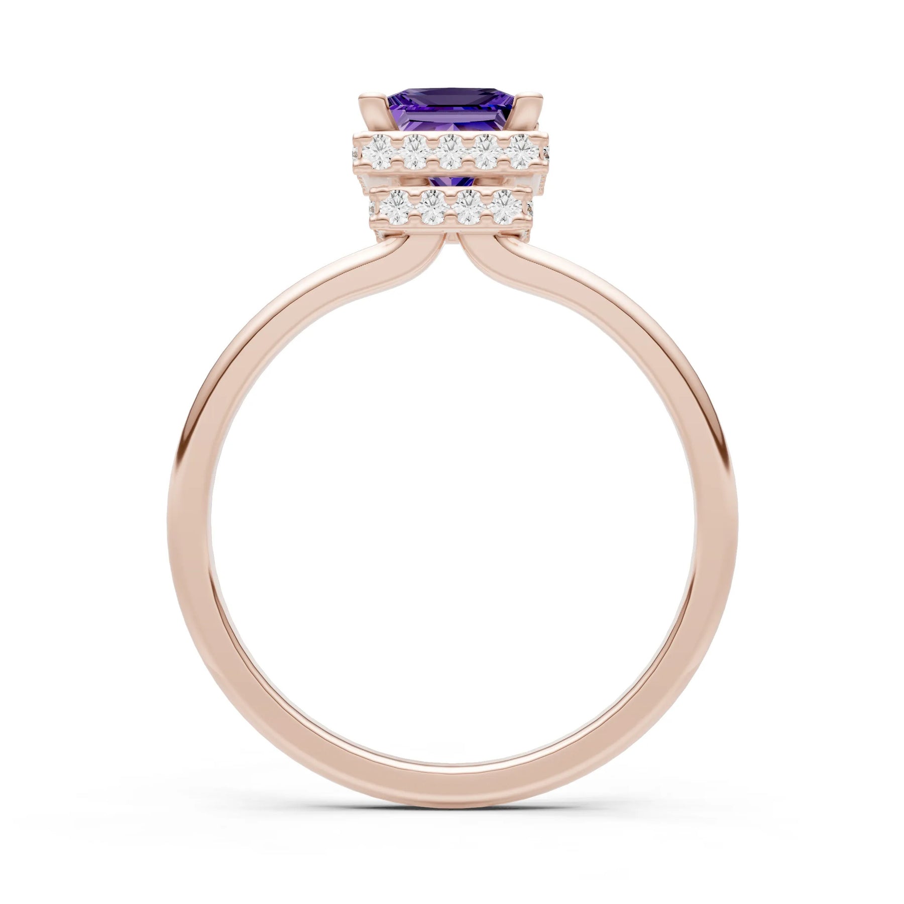 Amethyst Princess Cut Hidden Double Halo Engagement Ring