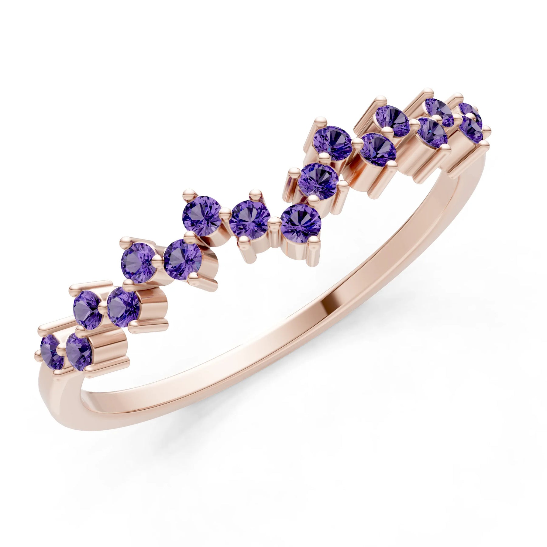 Amethyst Dainty Cluster Band Multi-Stone Prong Set