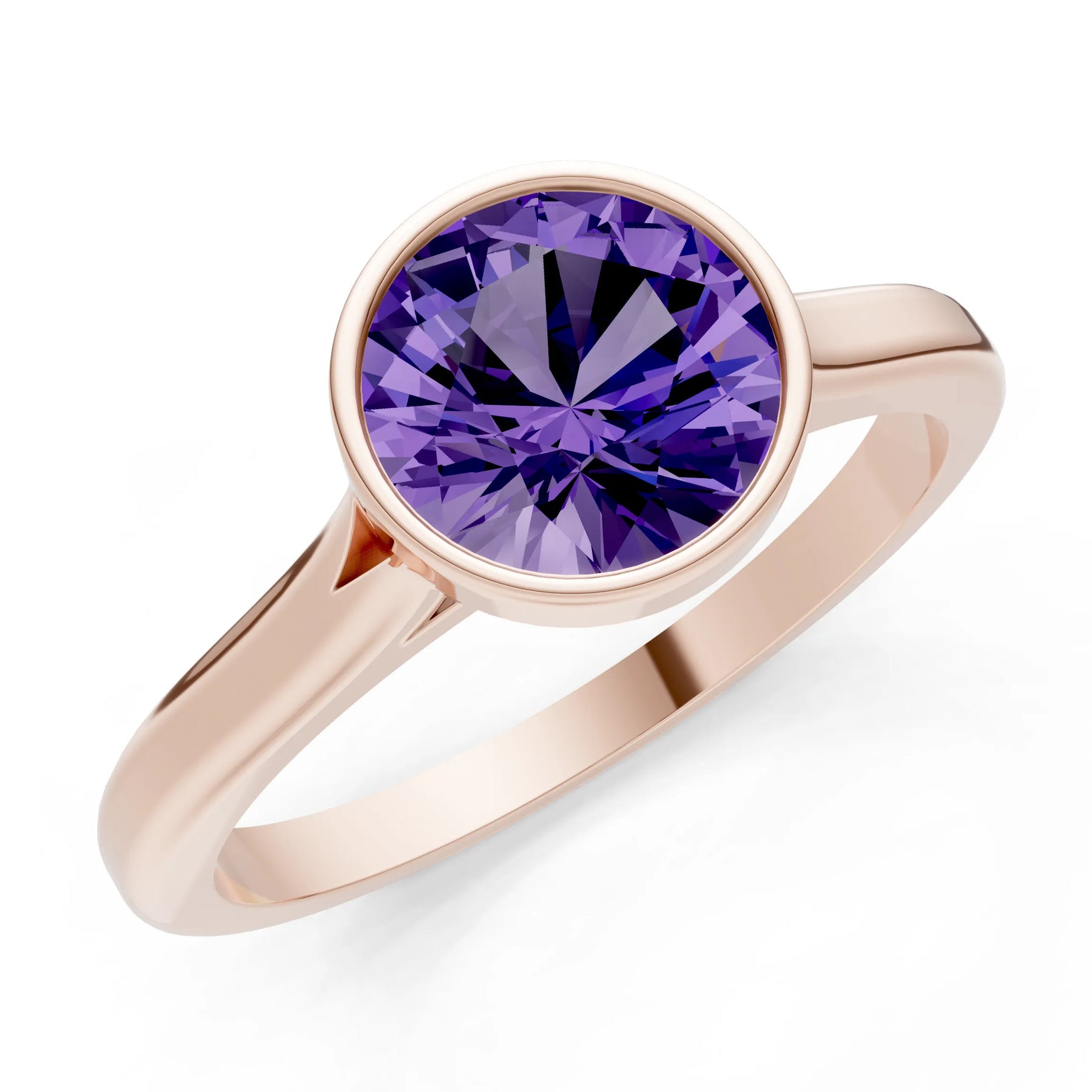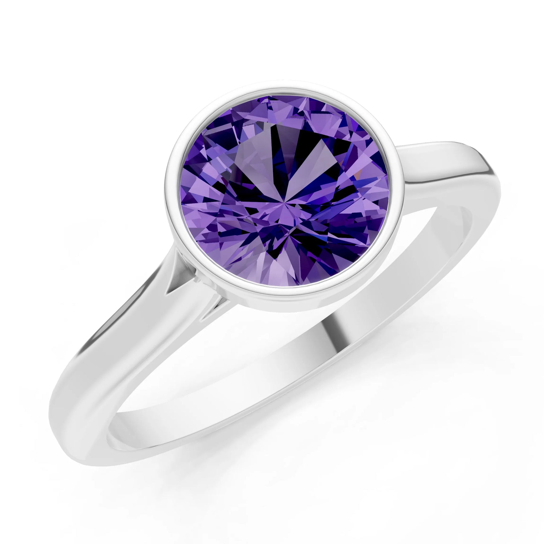 Amethyst Round 6.5mm Normal Round Bezel Set Solitaire Ring