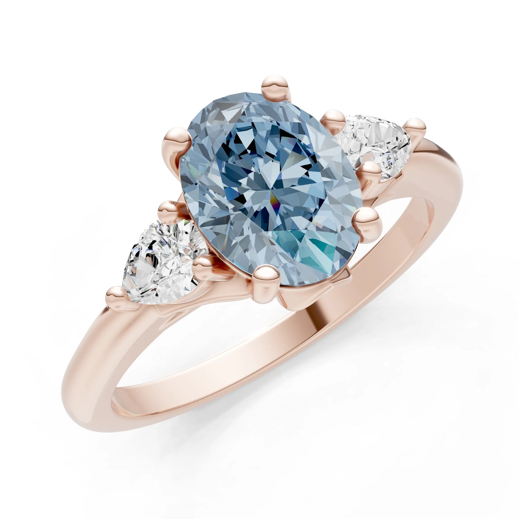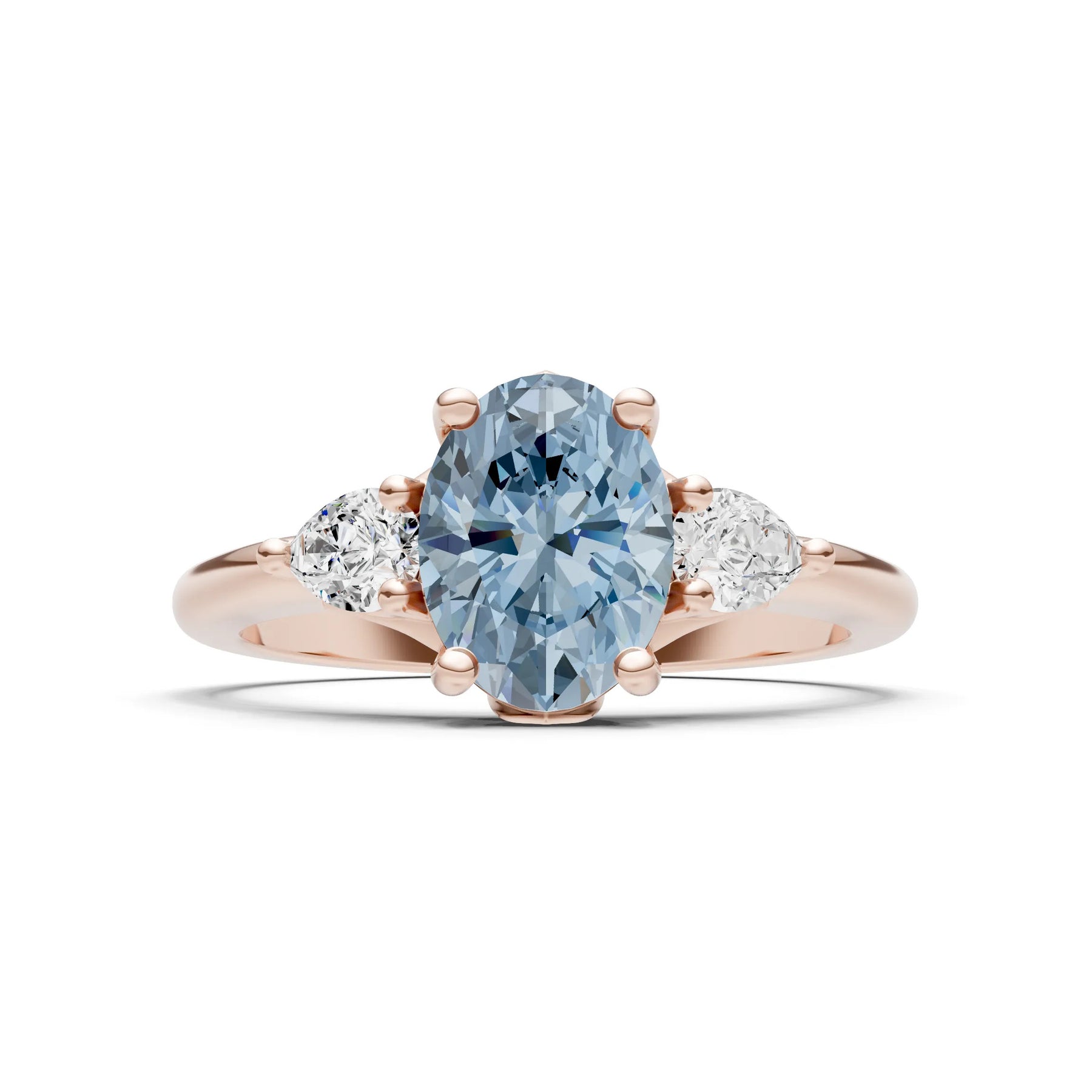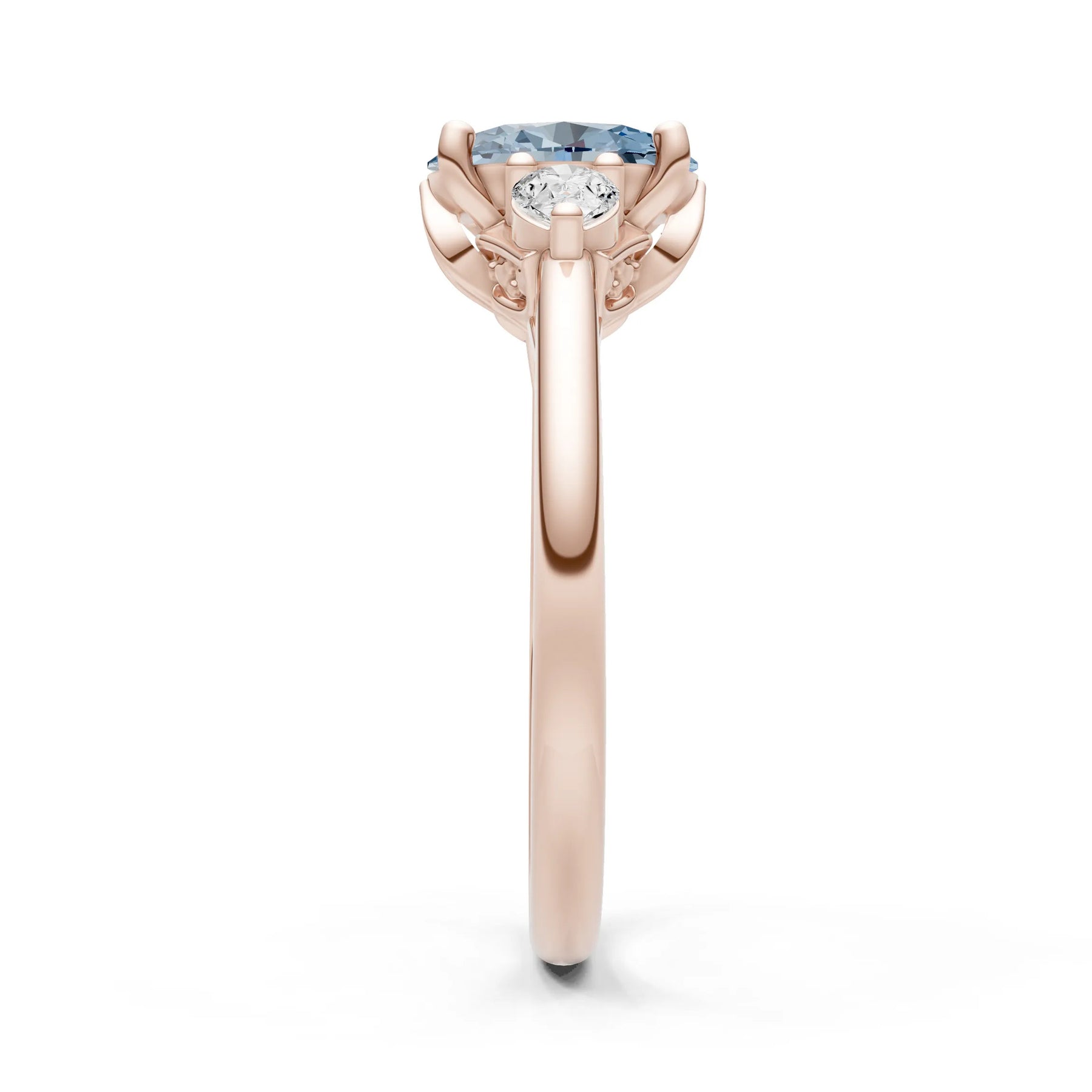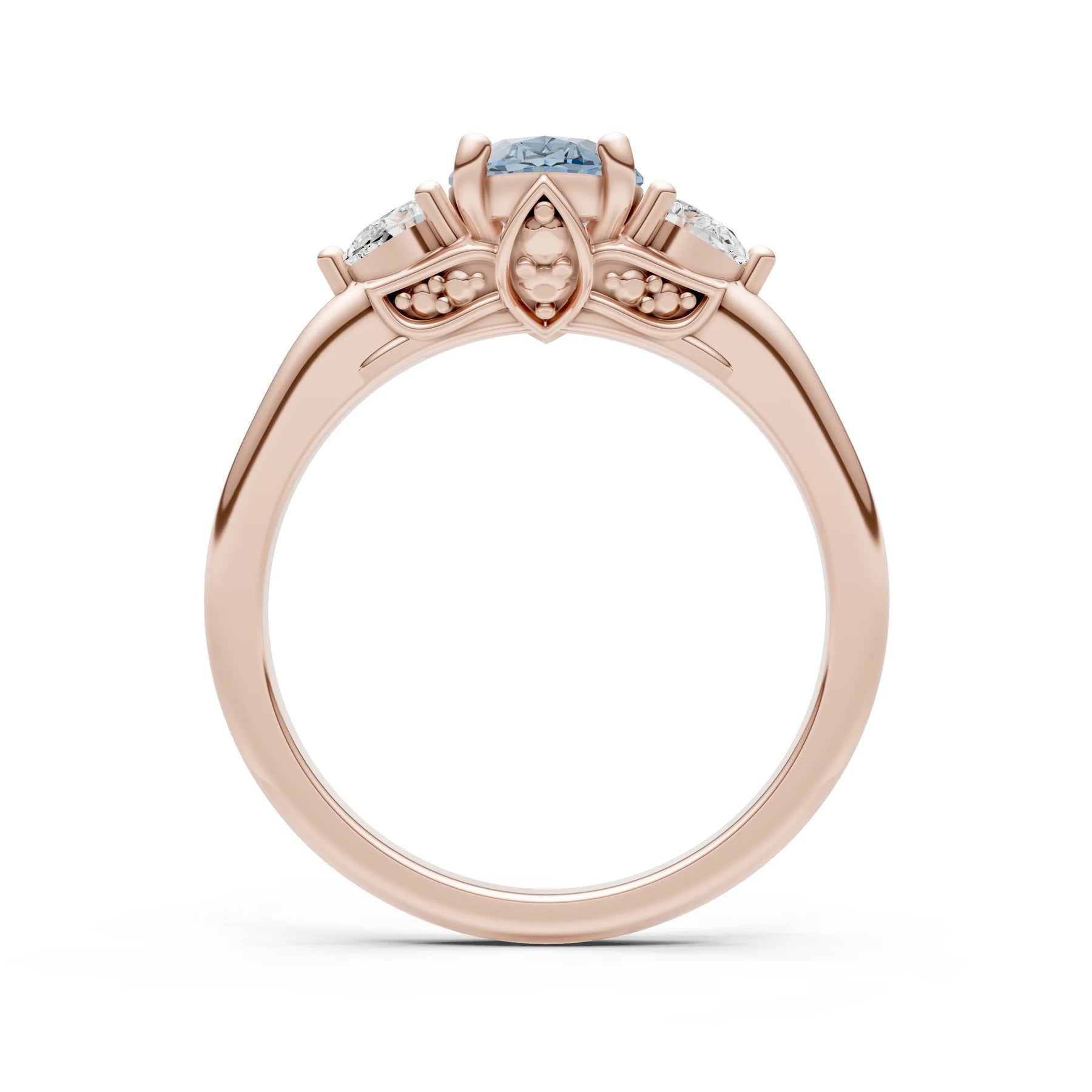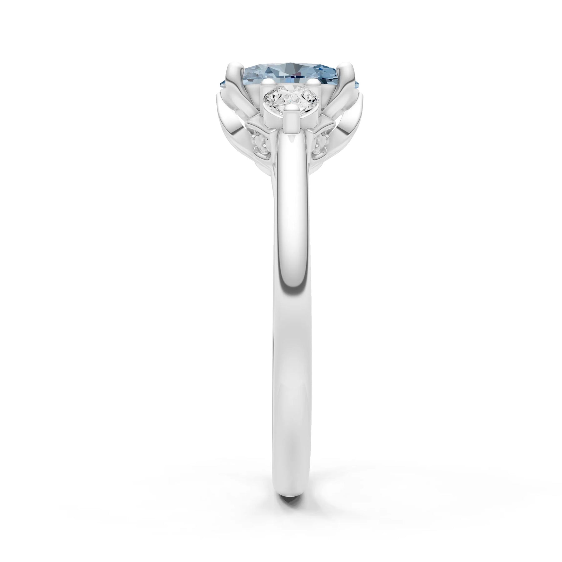 Aquamarine Oval 8x6mm Normal Trellis Three Stone Oval and Pear Lab Diamond Engagement Ring