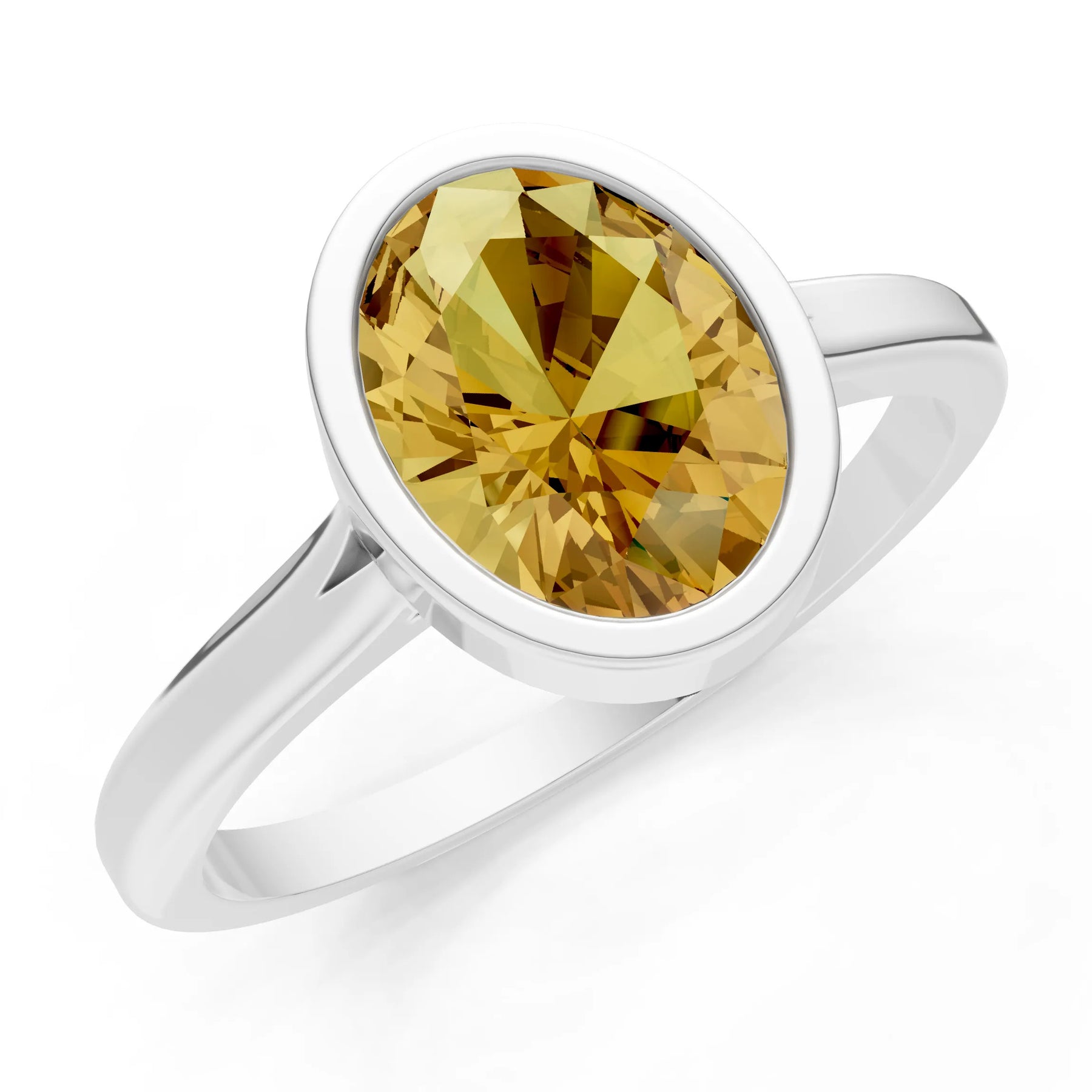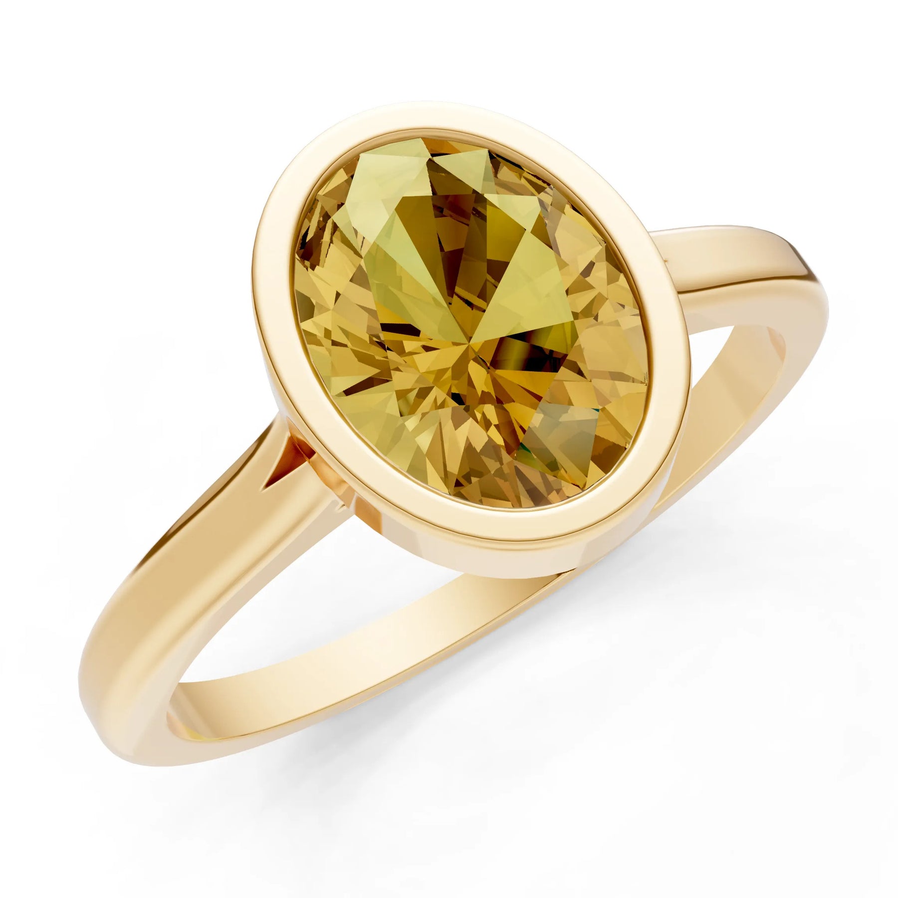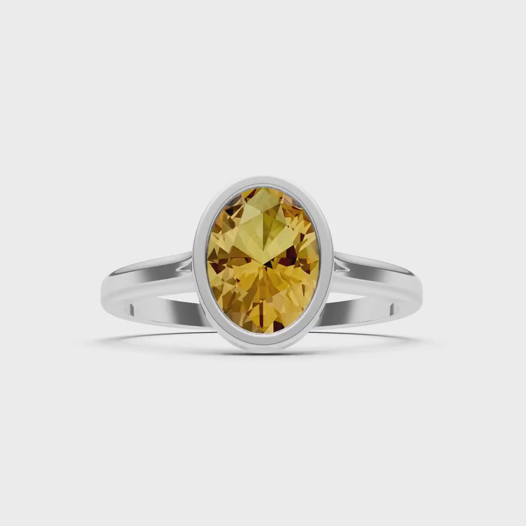 Citrine Oval Shape Bezel Set Solitaire Ring