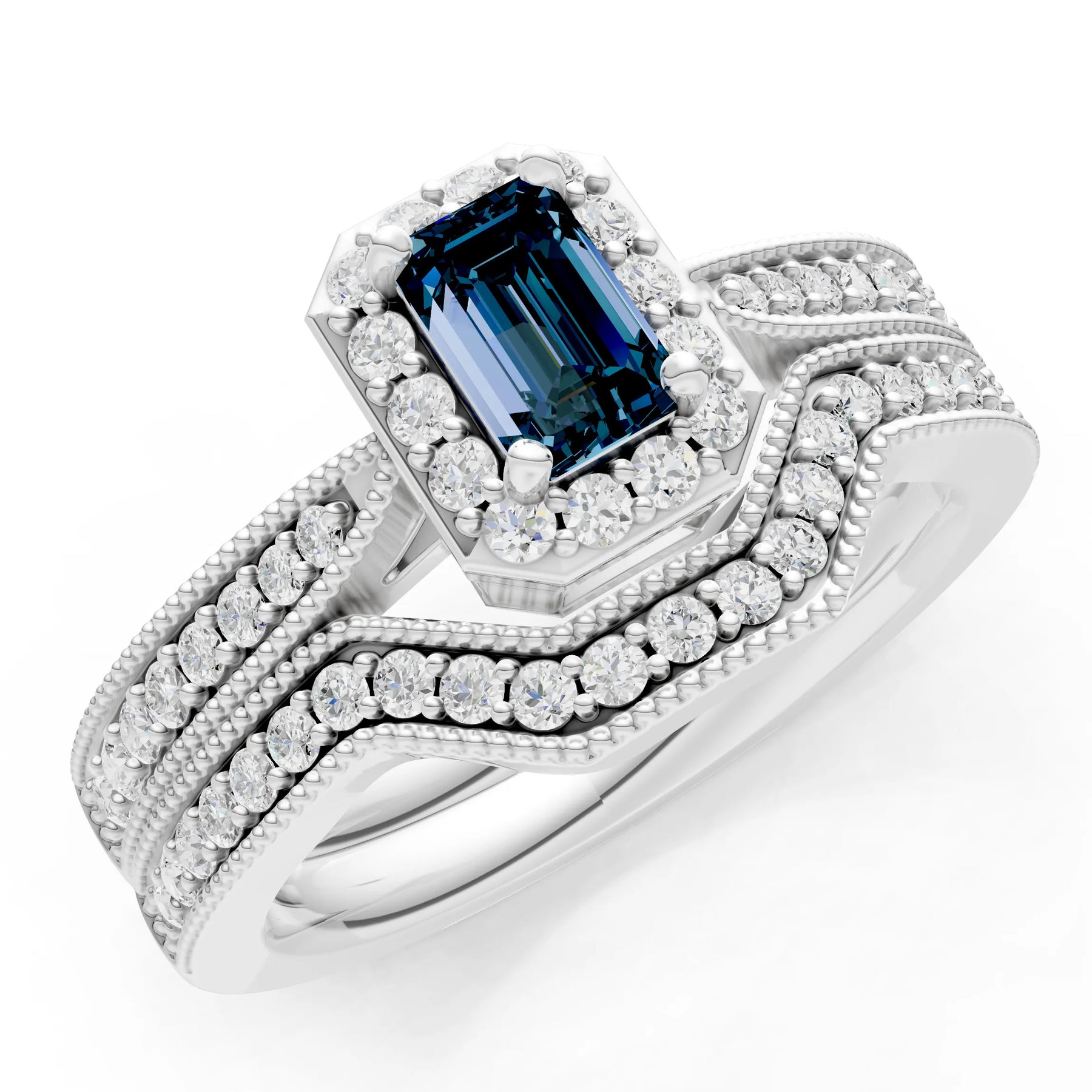 Created Alexandrite Emerald Cut 4x3mm Petitie Five Stone Emerald Cut Gemstone Band