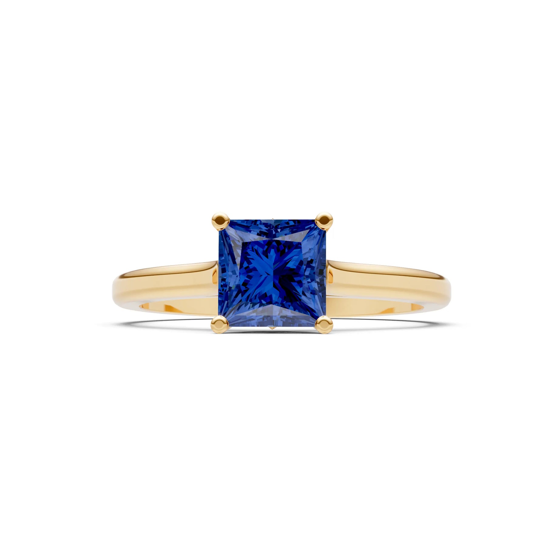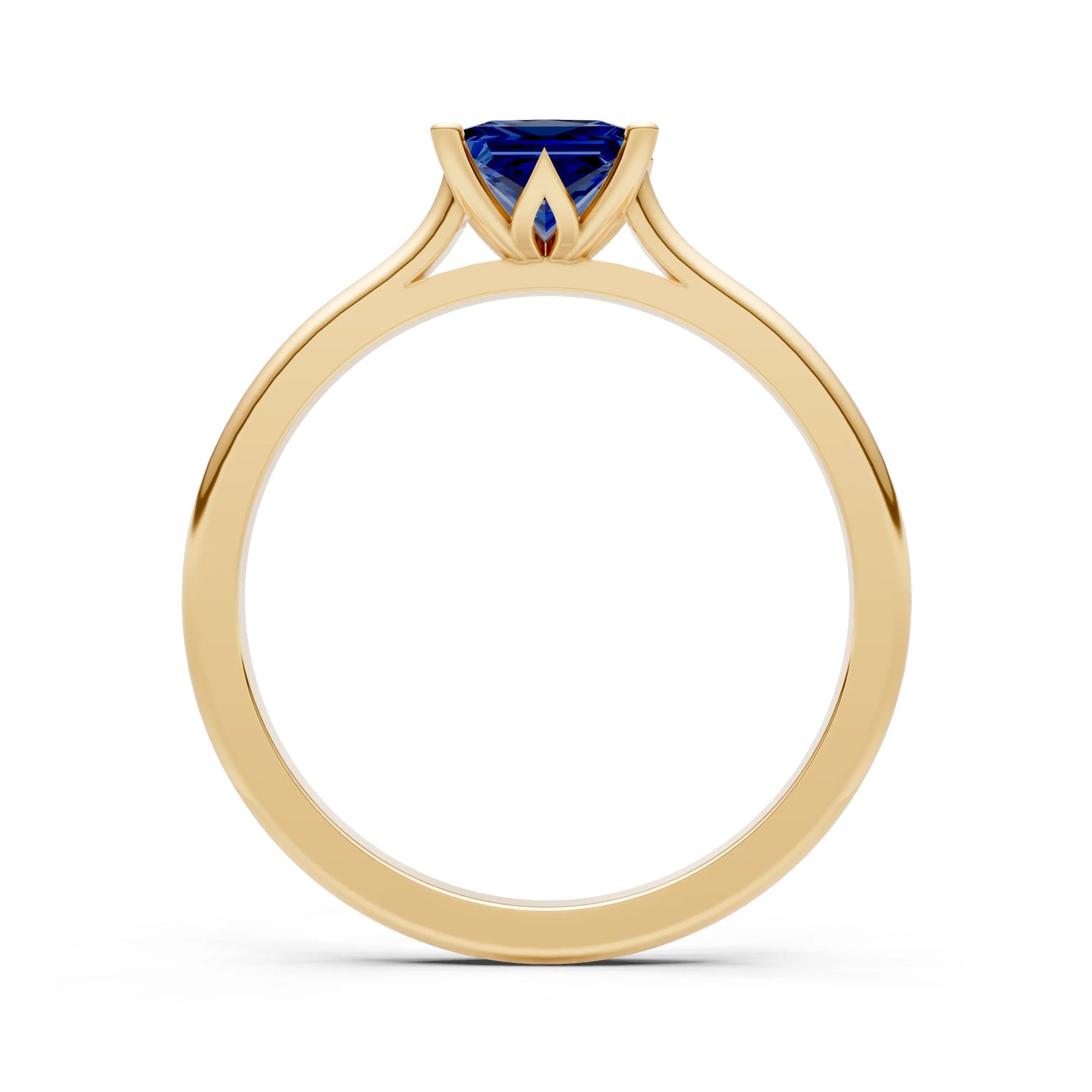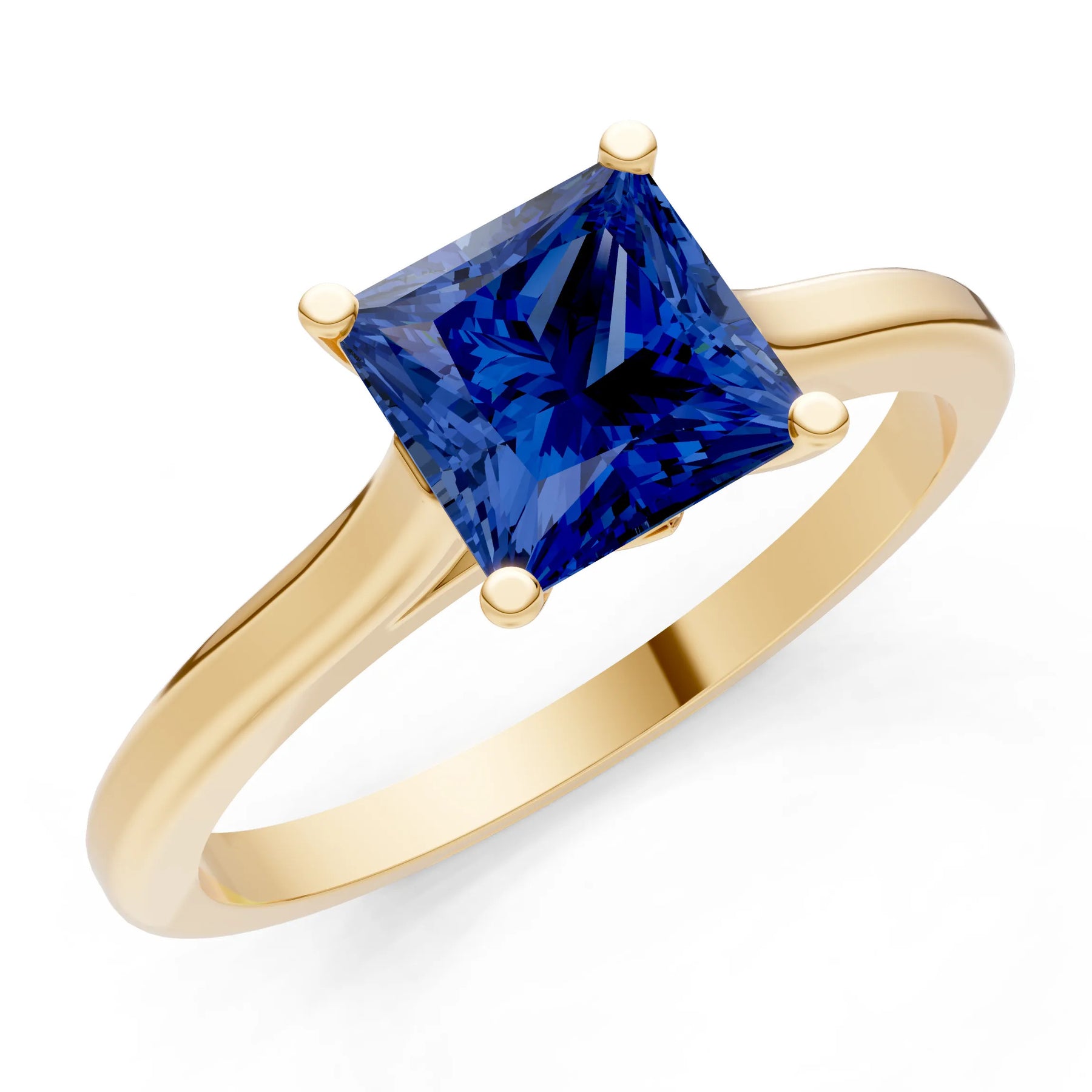 Created Blue Sapphire Princess Cut 6mm Normal Gold Quality 4 Prong Princess Cut Solitaire Cathedral Ring