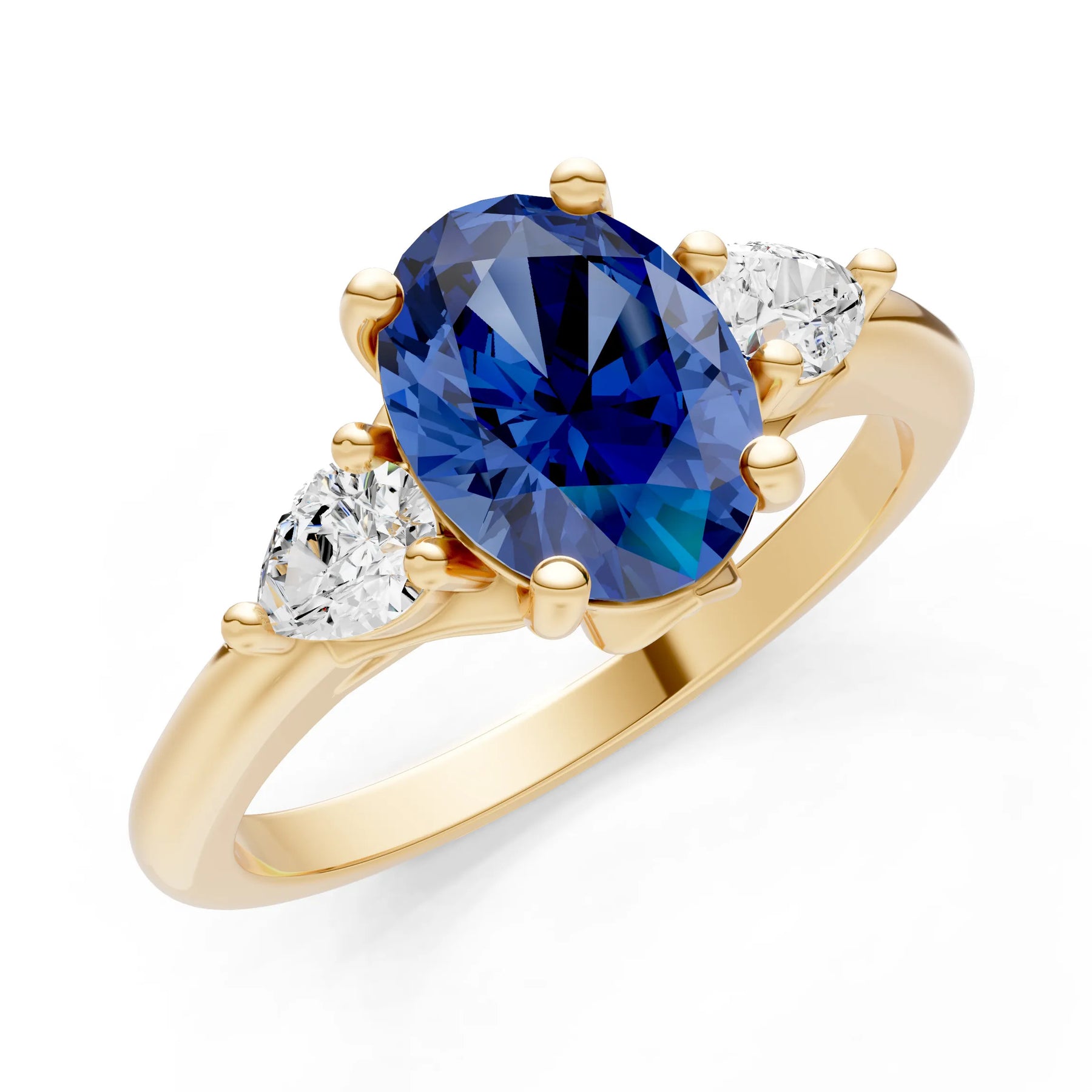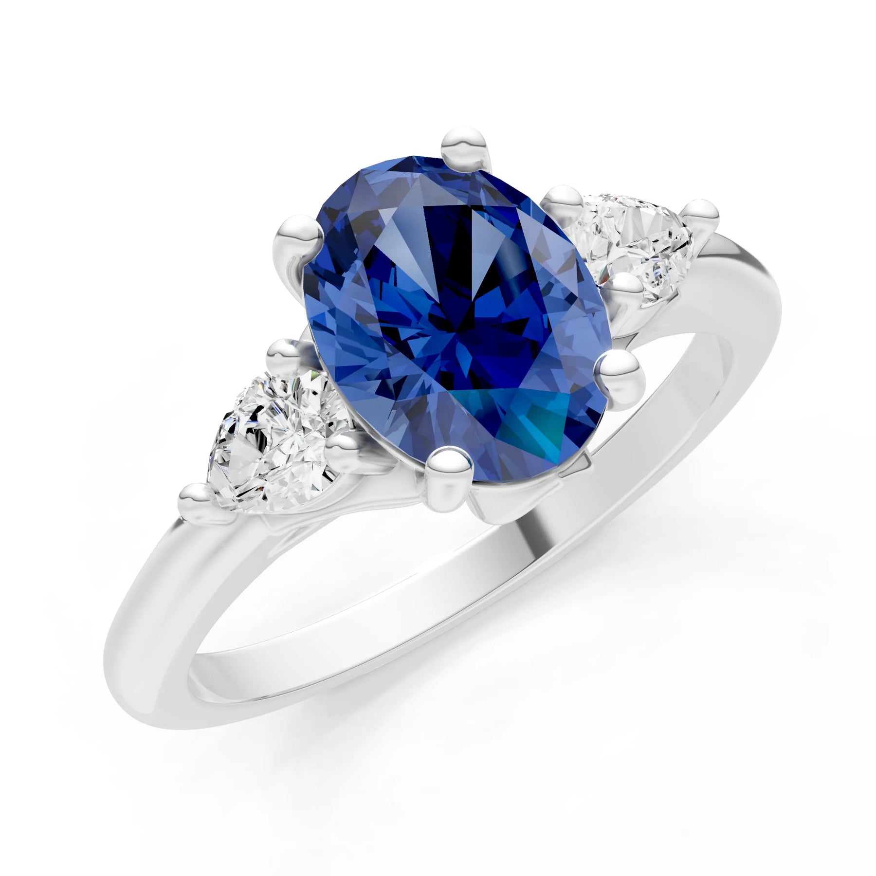 Created BSP Oval 8x6mm Normal Trellis Three Stone Oval and Pear Lab Diamond Engagement Ring