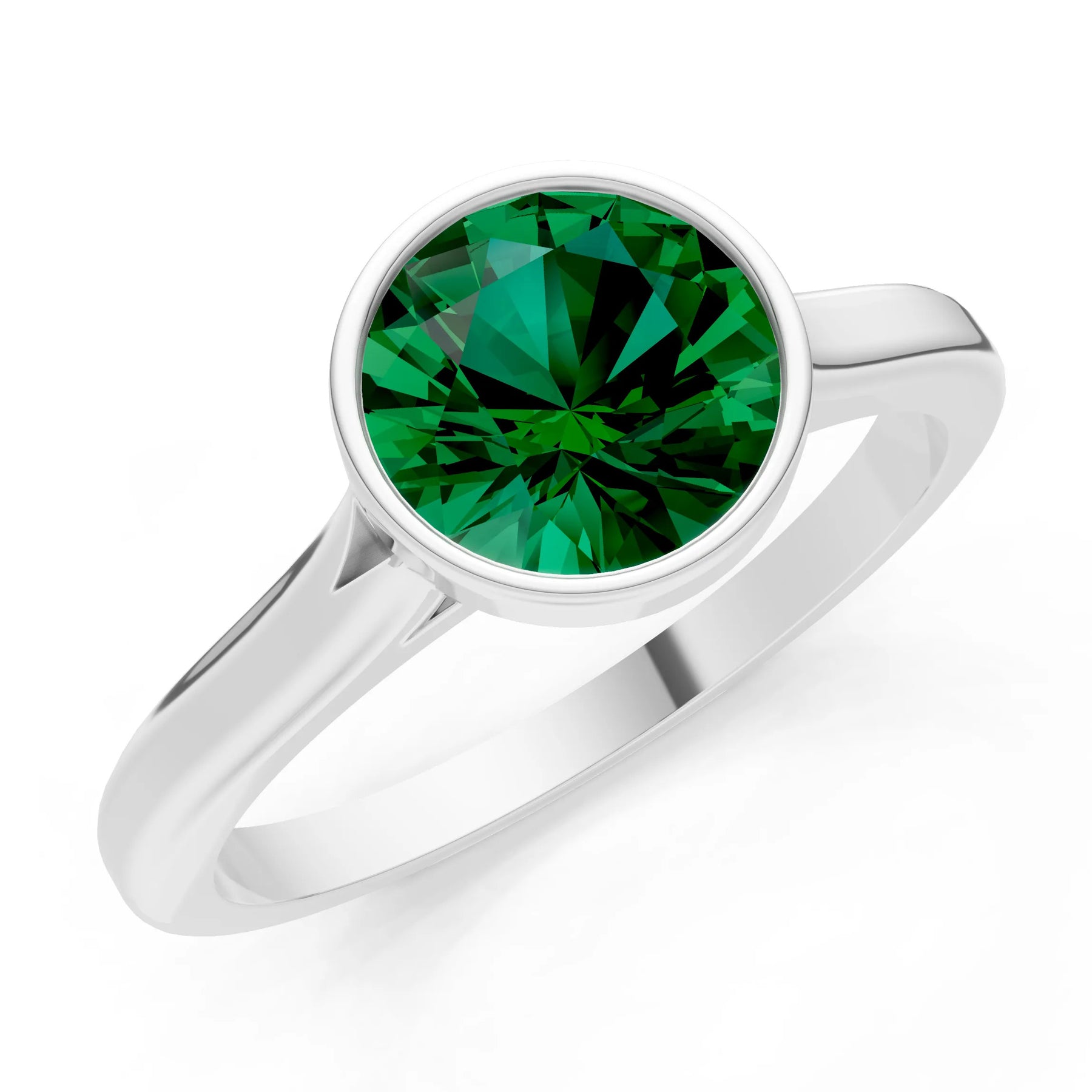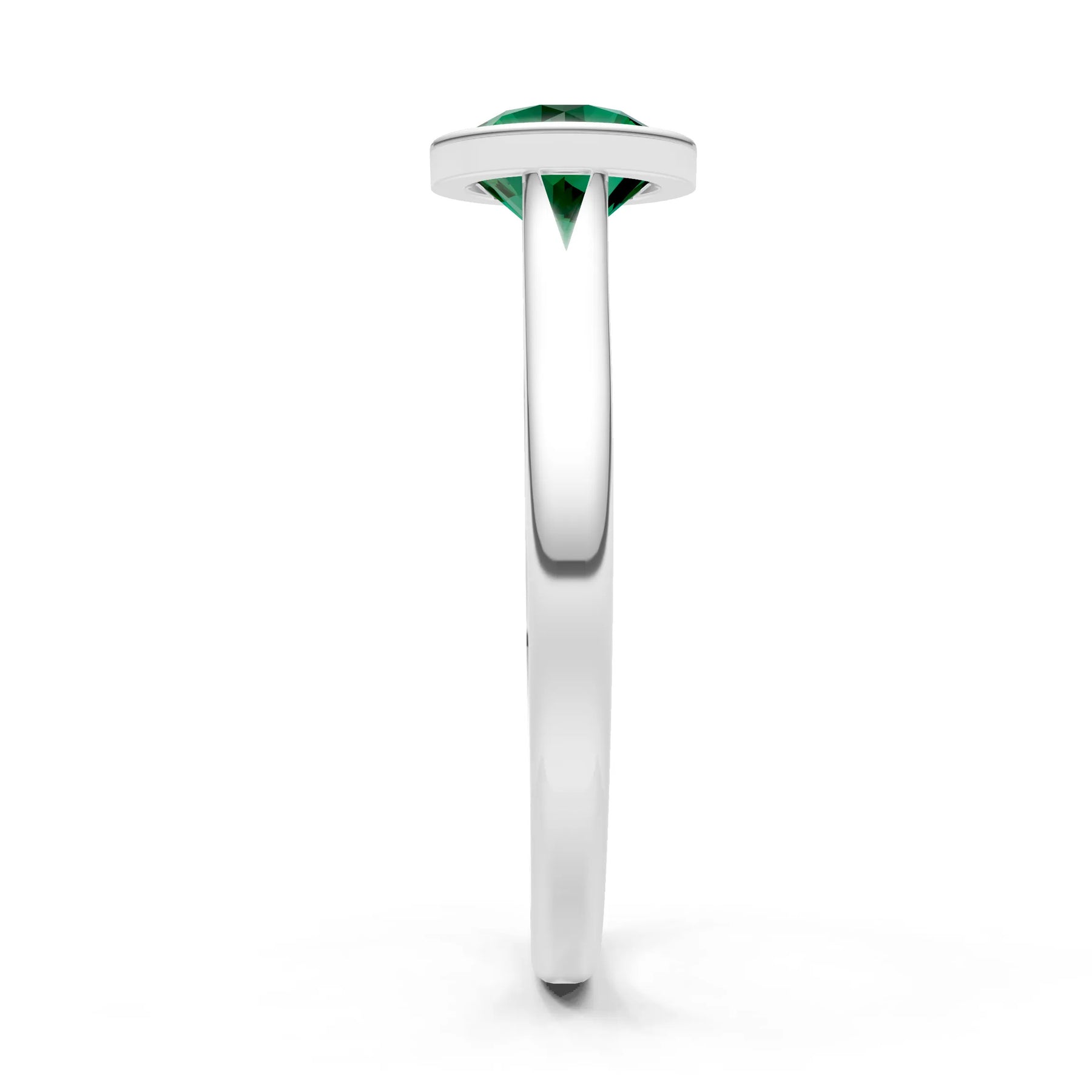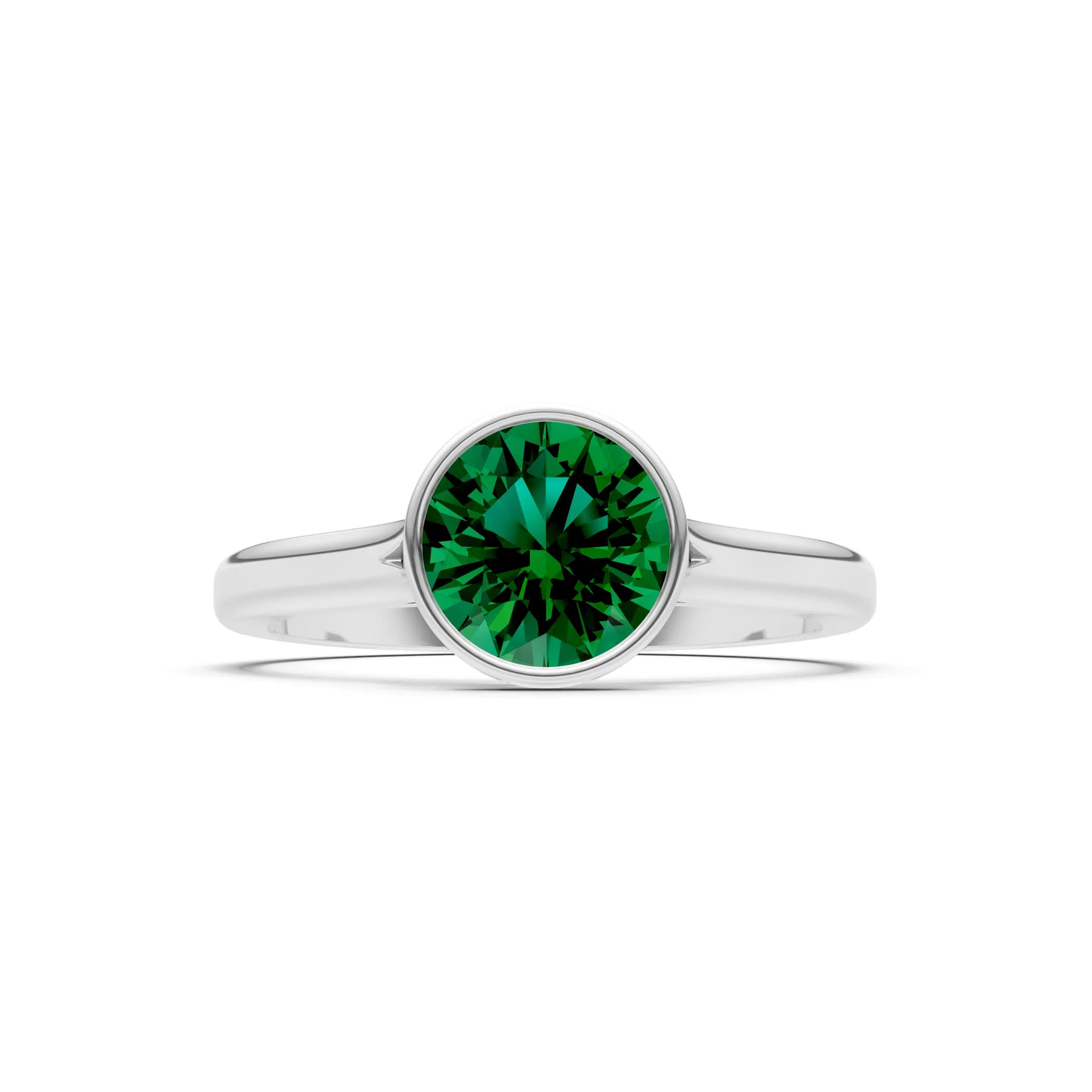 Created Emerald Round 6.5mm Normal Round Bezel Set Solitaire Ring