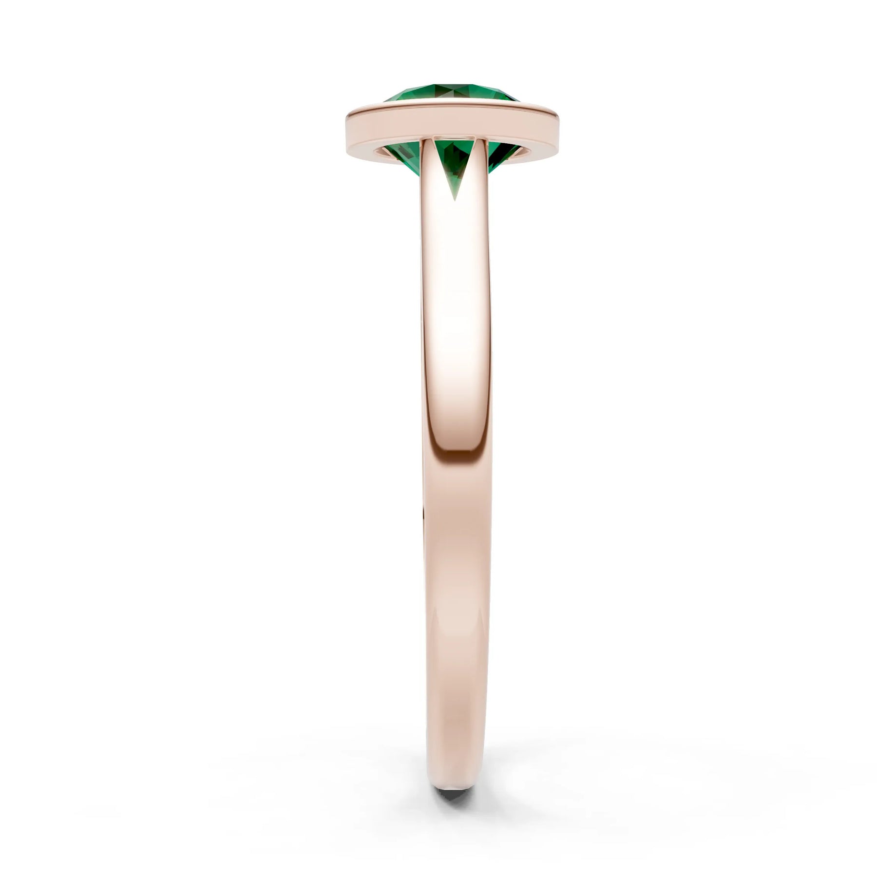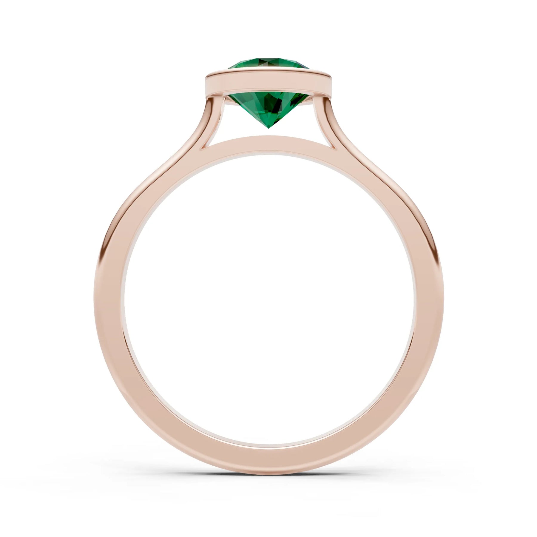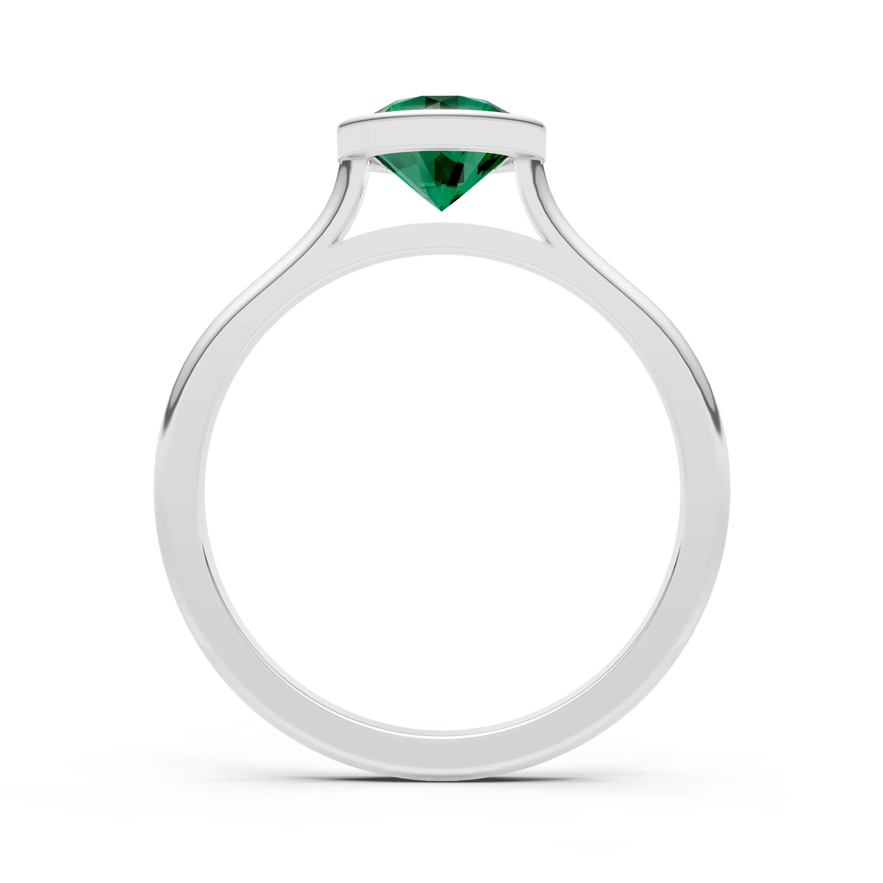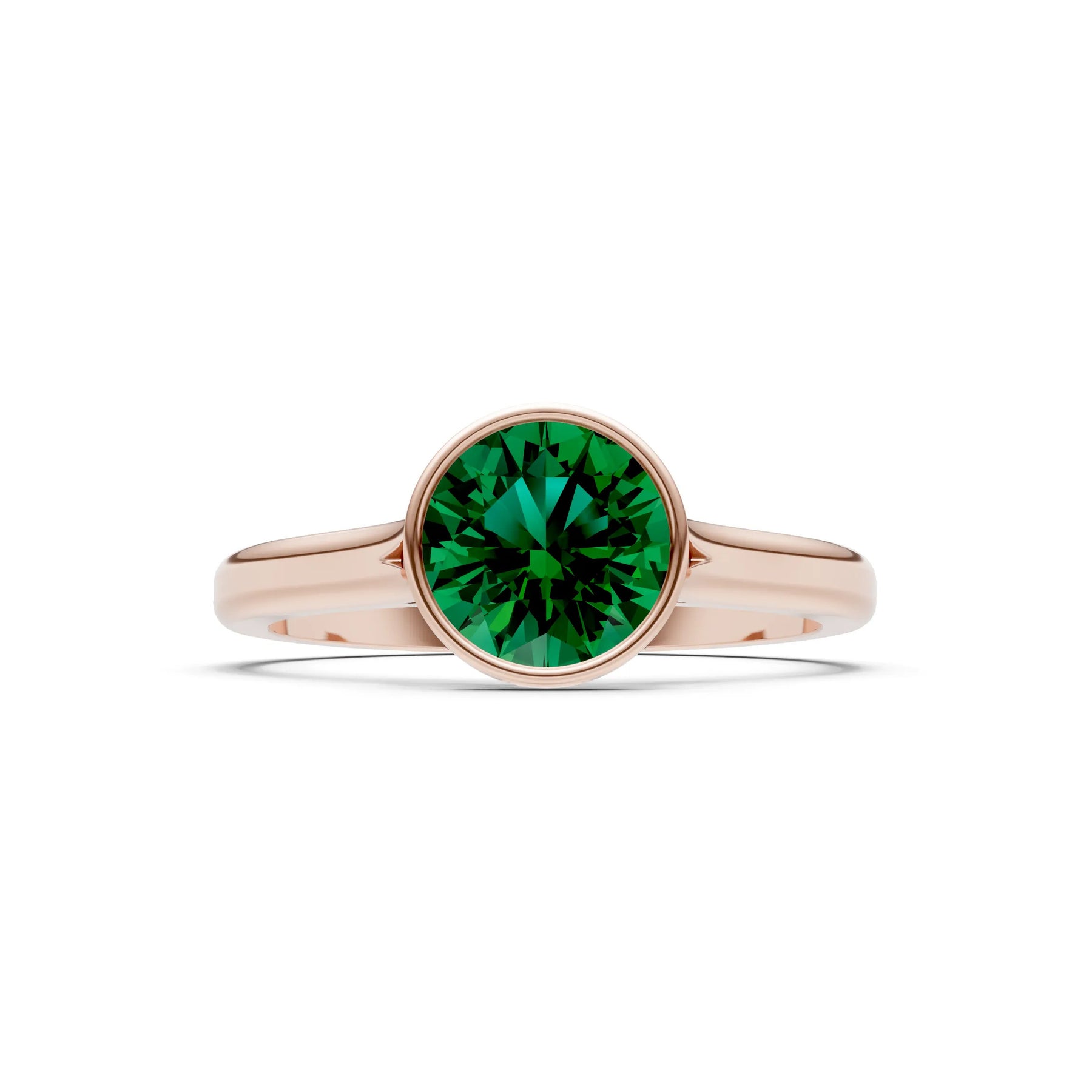 Created Emerald Round 6.5mm Normal Round Bezel Set Solitaire Ring