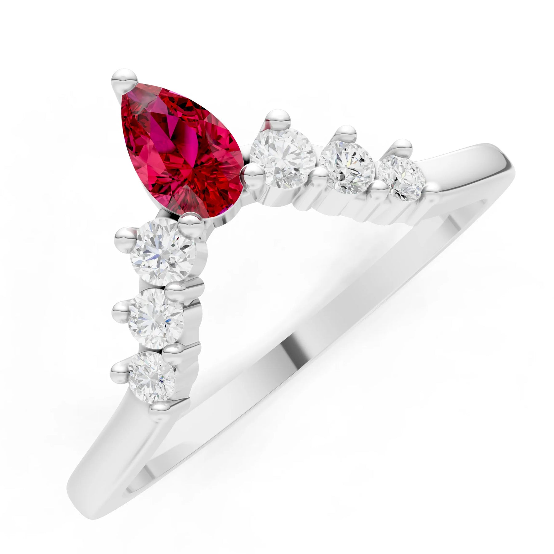 Ruby Pear & Round Shape Curved Wedding Band