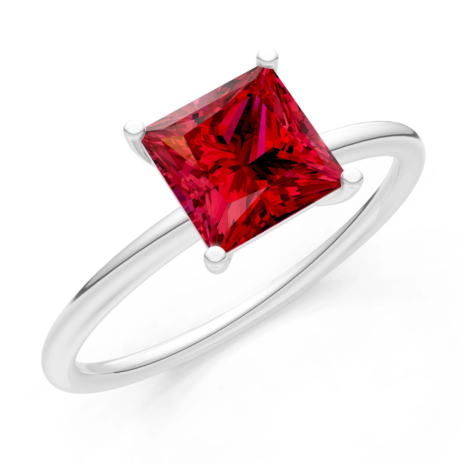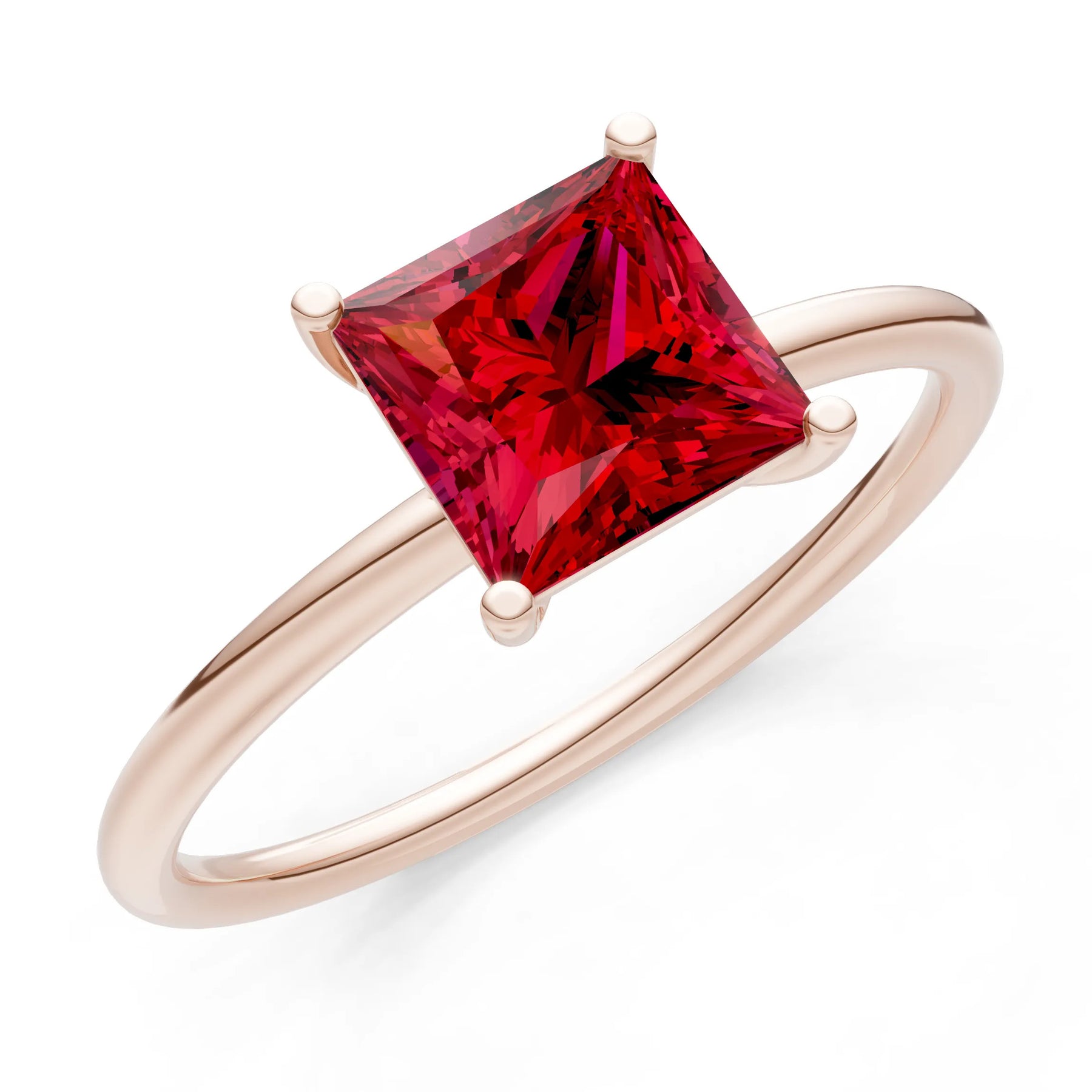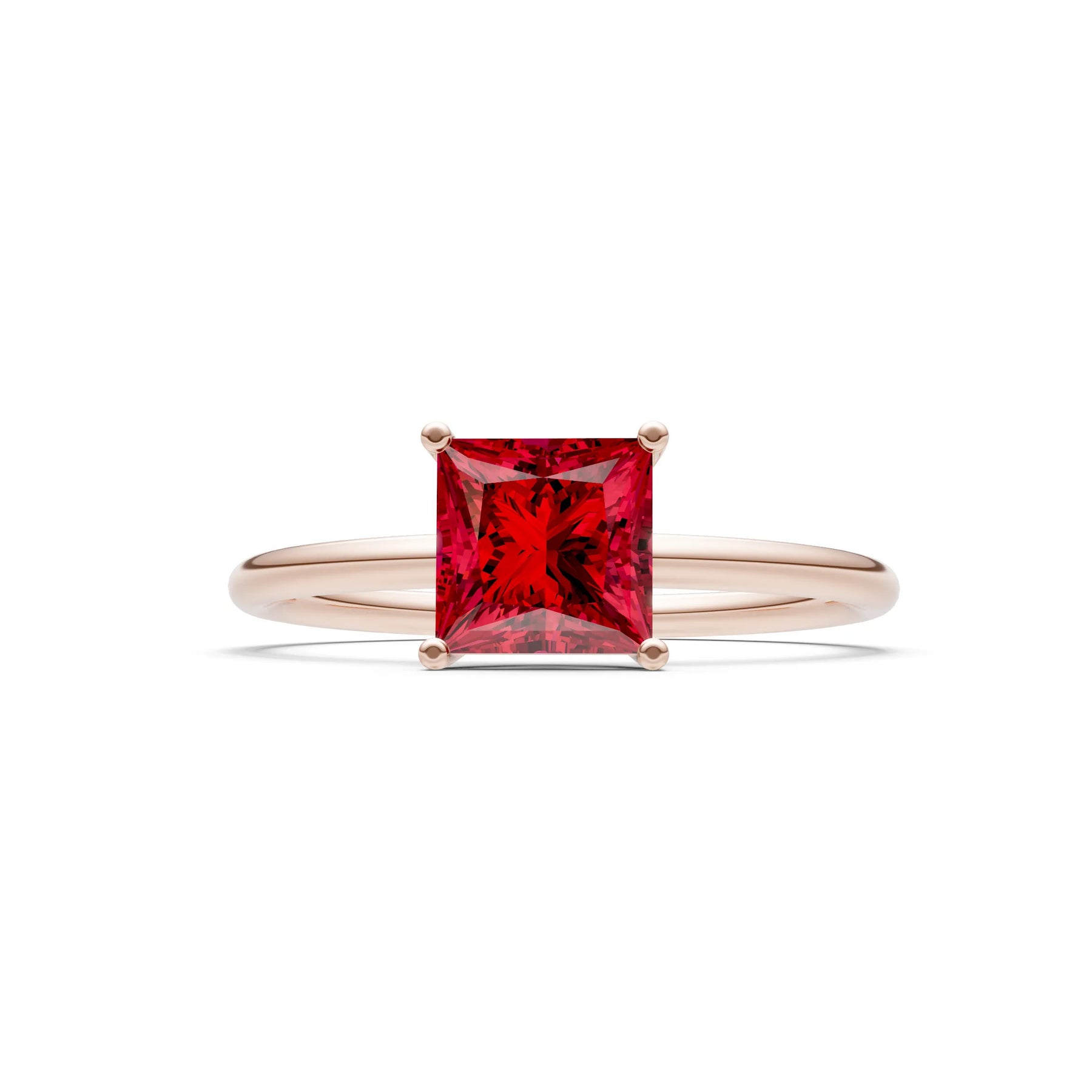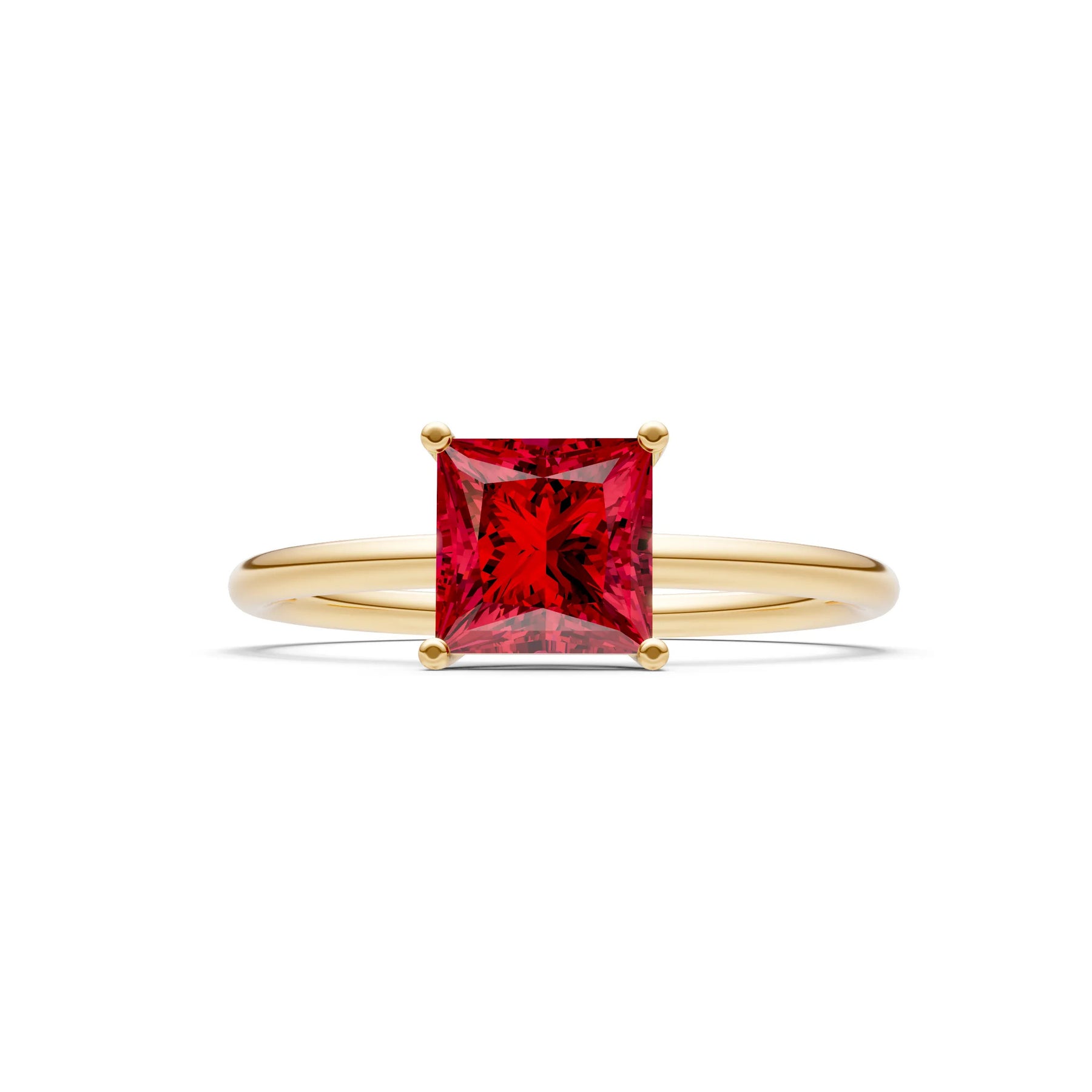 Created Ruby Princess Cut 6mm Normal Gold Quality 4 Prong Princess Cut Basket Classic Solitaire Engagement Ring
