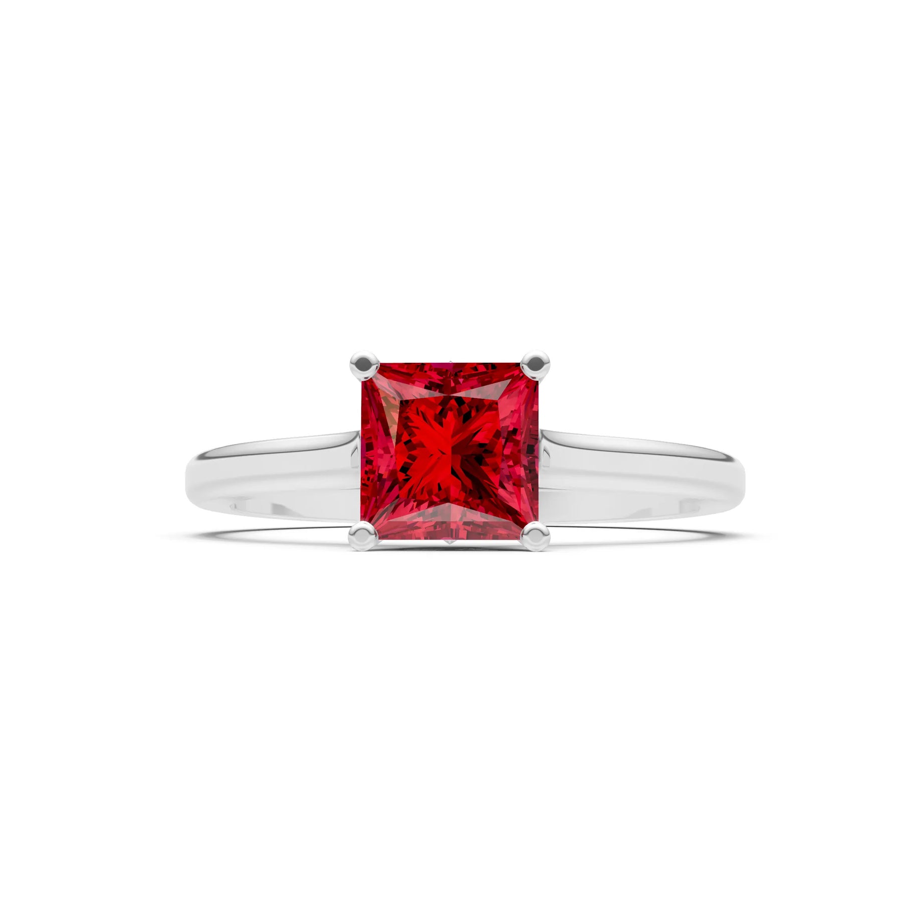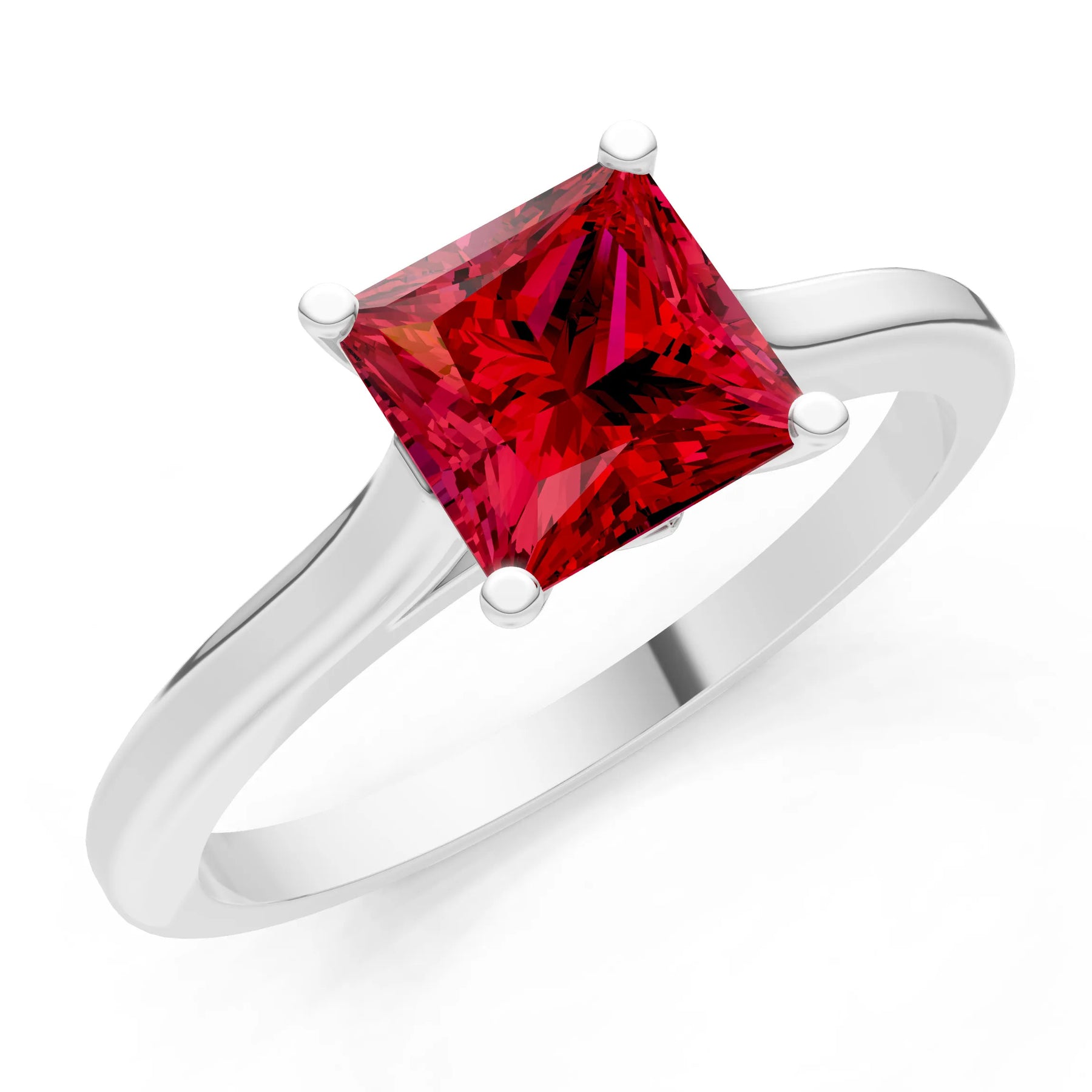 Created Ruby Princess Cut 6mm Normal Gold Quality 4 Prong Princess Cut Solitaire Cathedral Ring