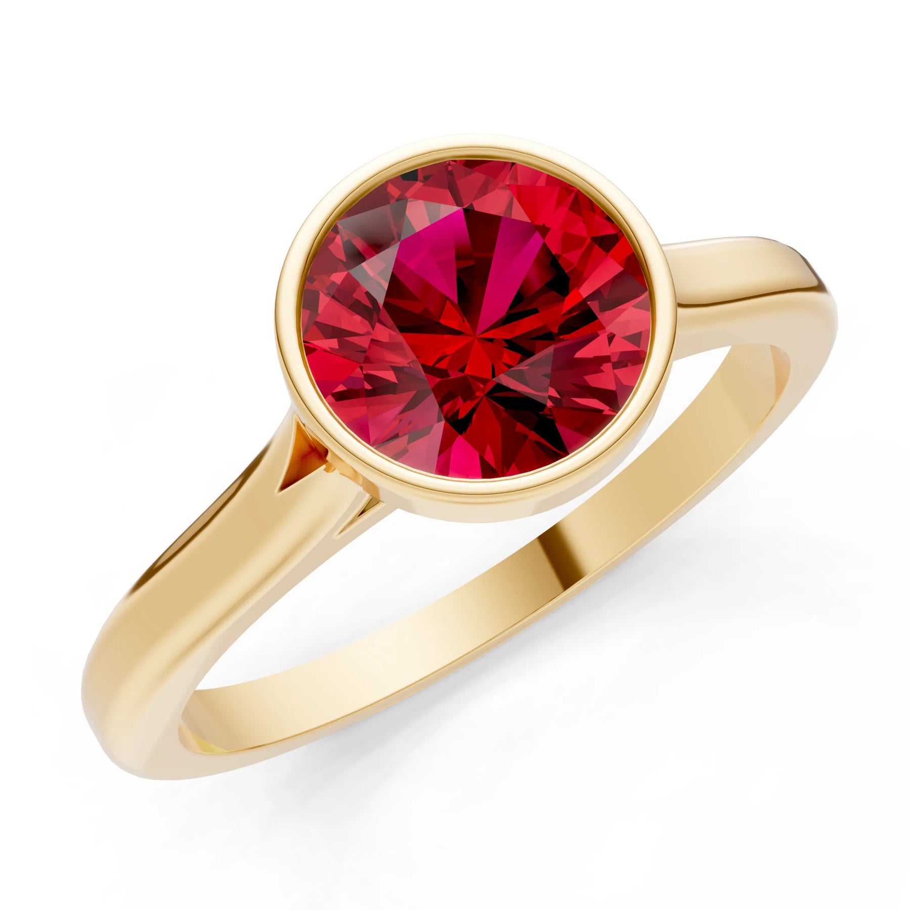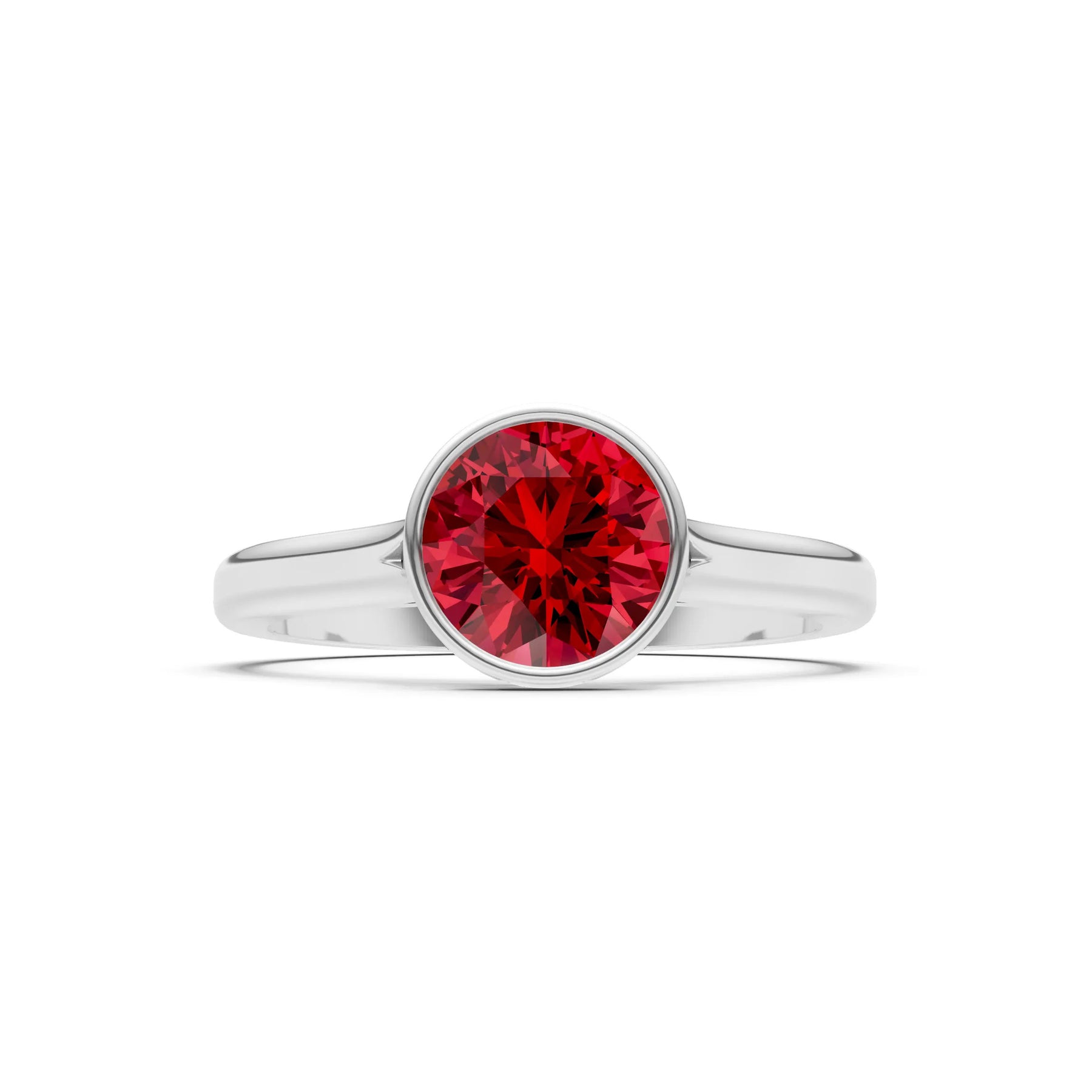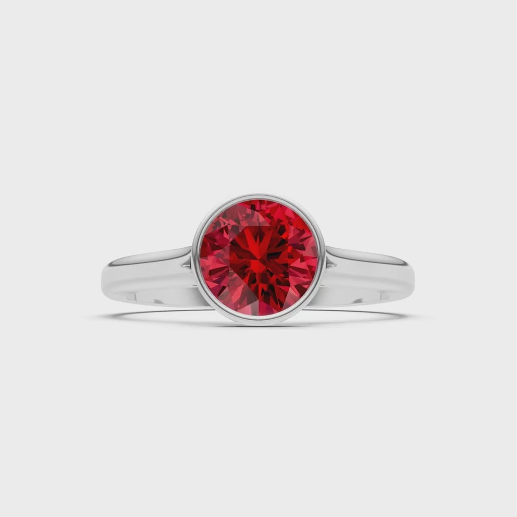 Created Ruby Round 6.5mm Normal Round Bezel Set Solitaire Ring