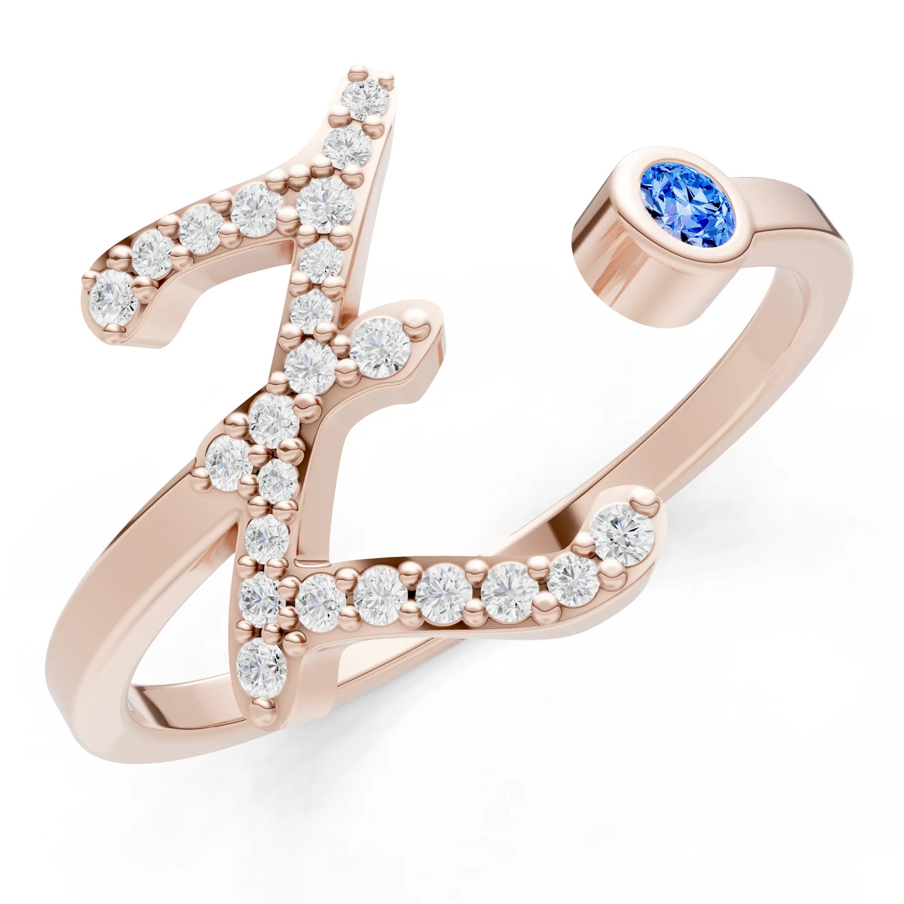 Dainty Initial Letter Birthstone Open Ring – Z