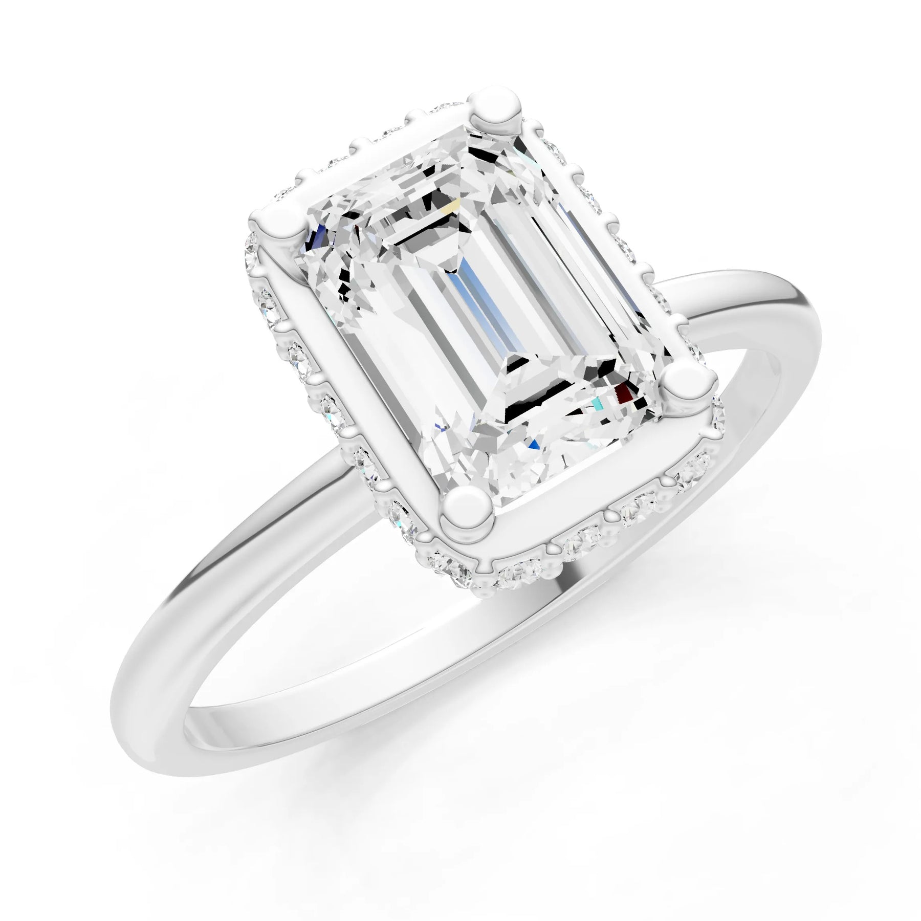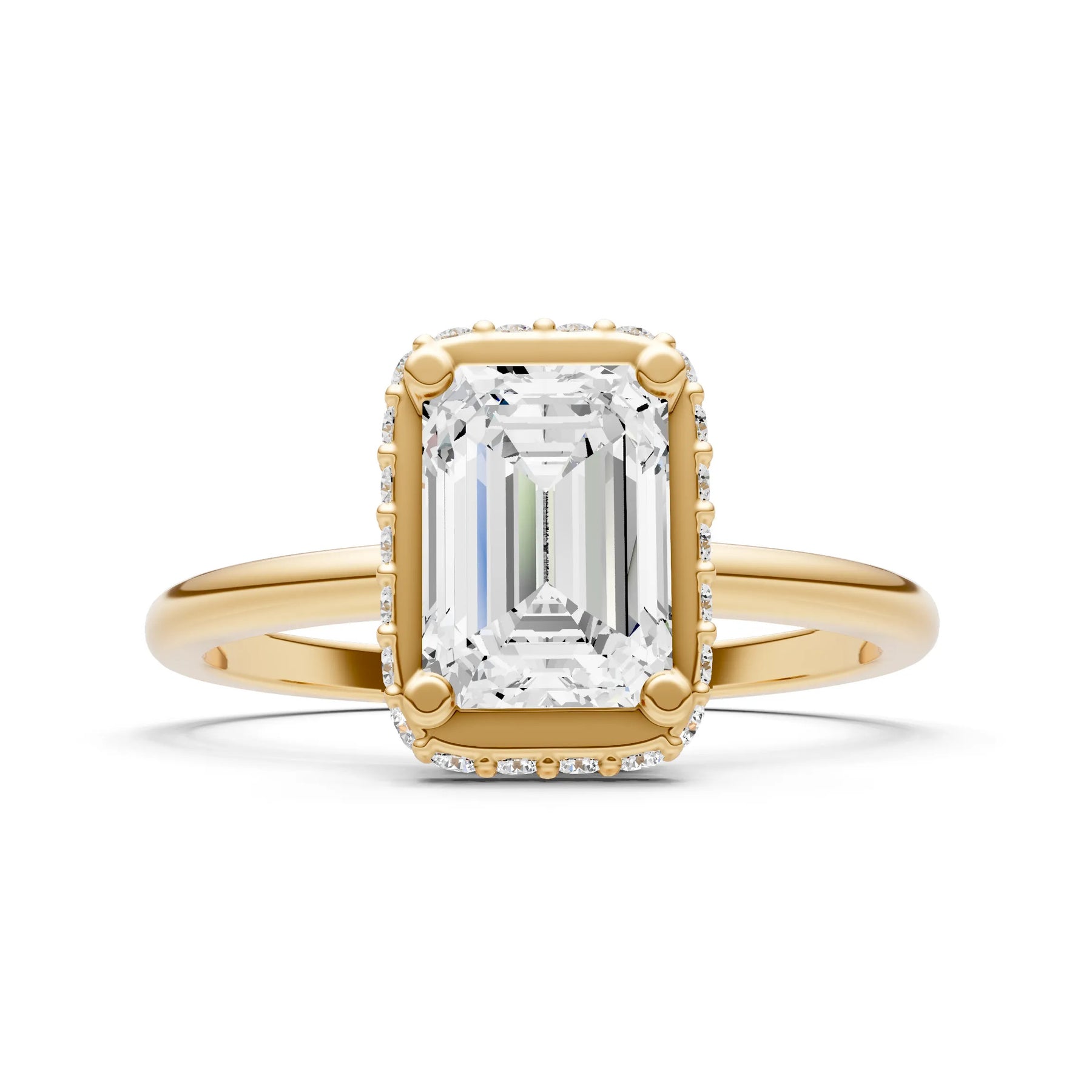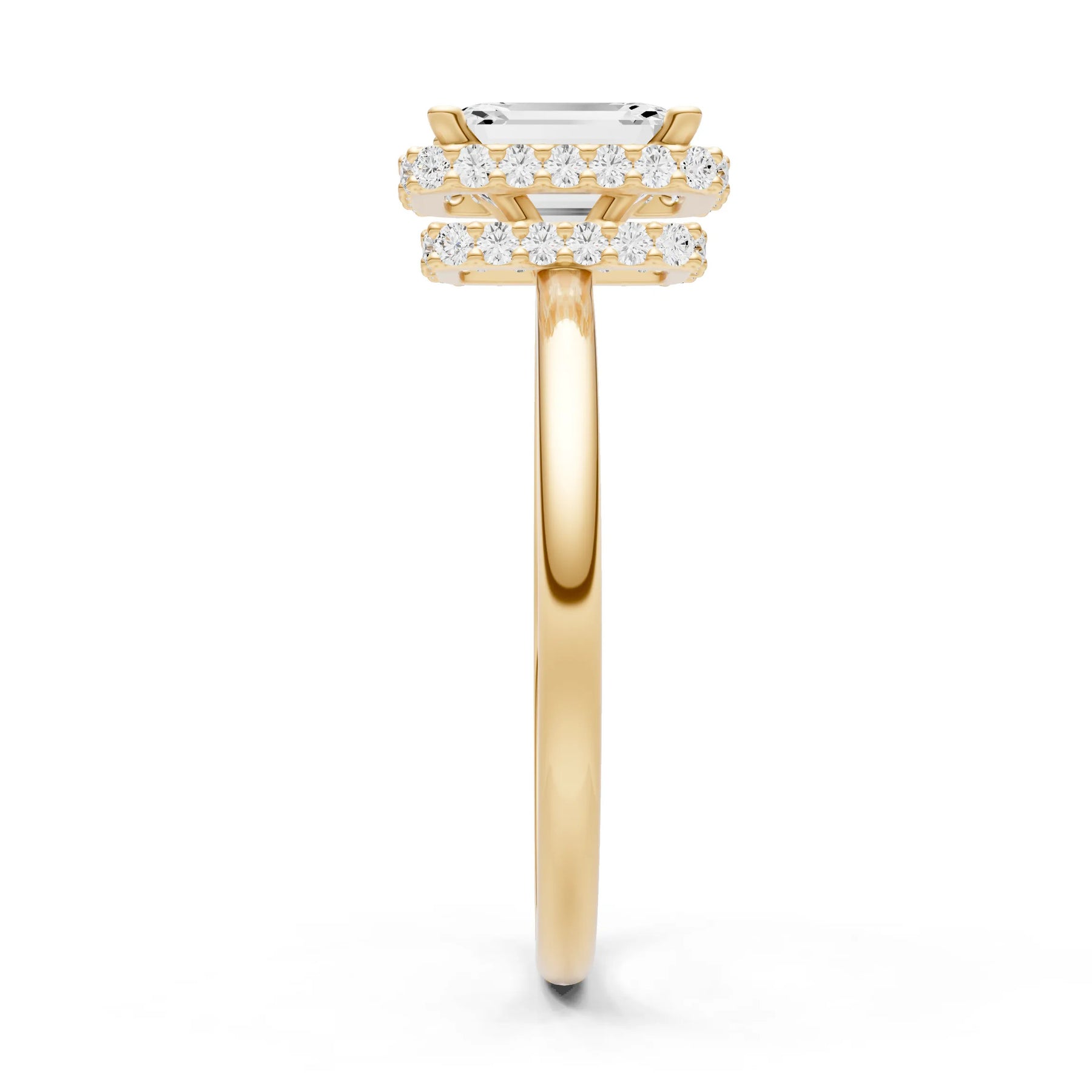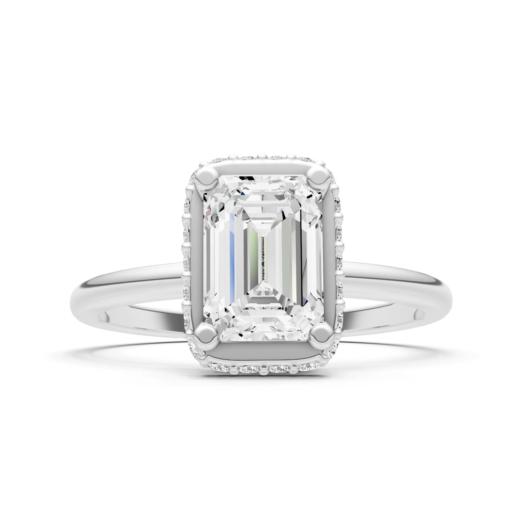 Diamond Emerald Hidden Double Halo Engagement Ring