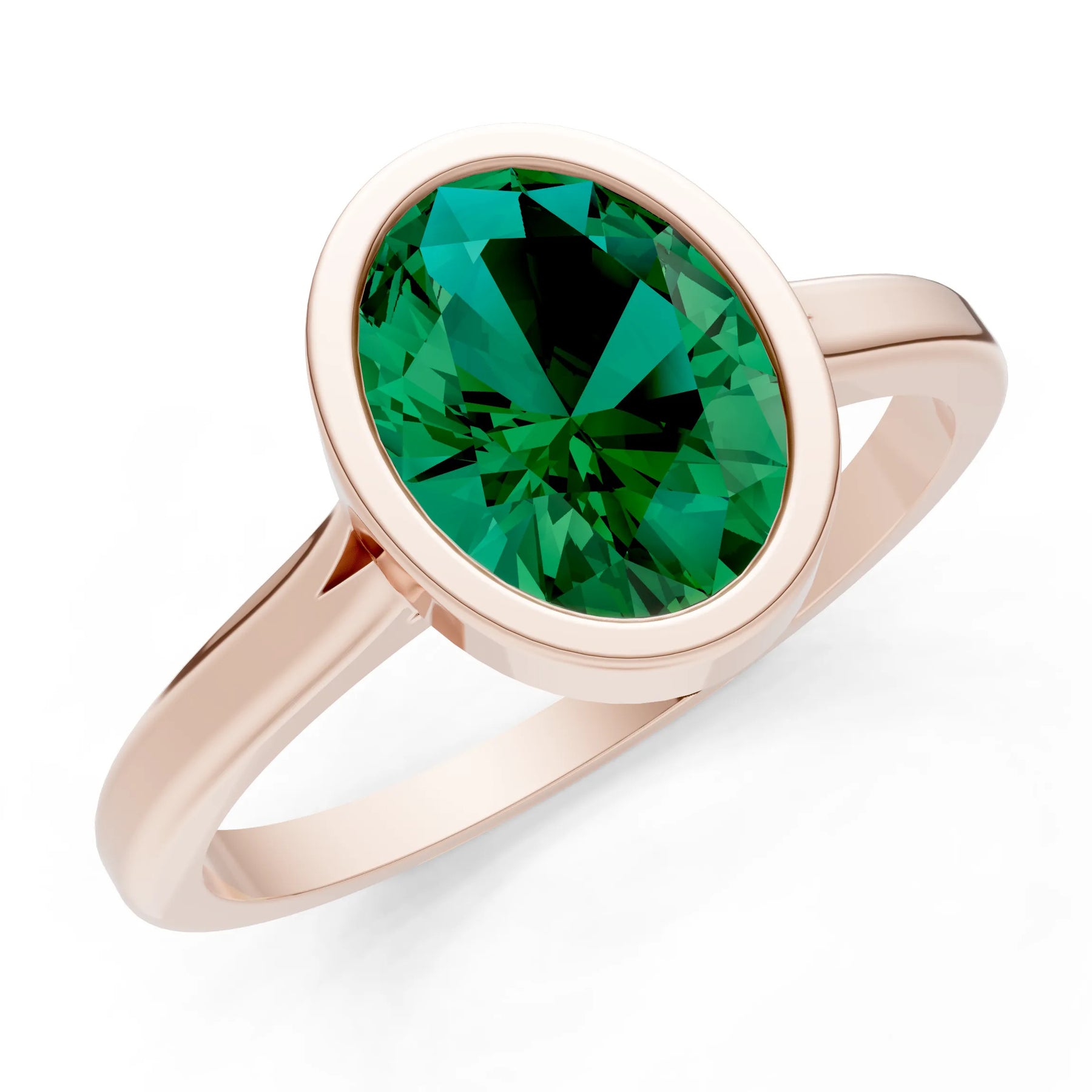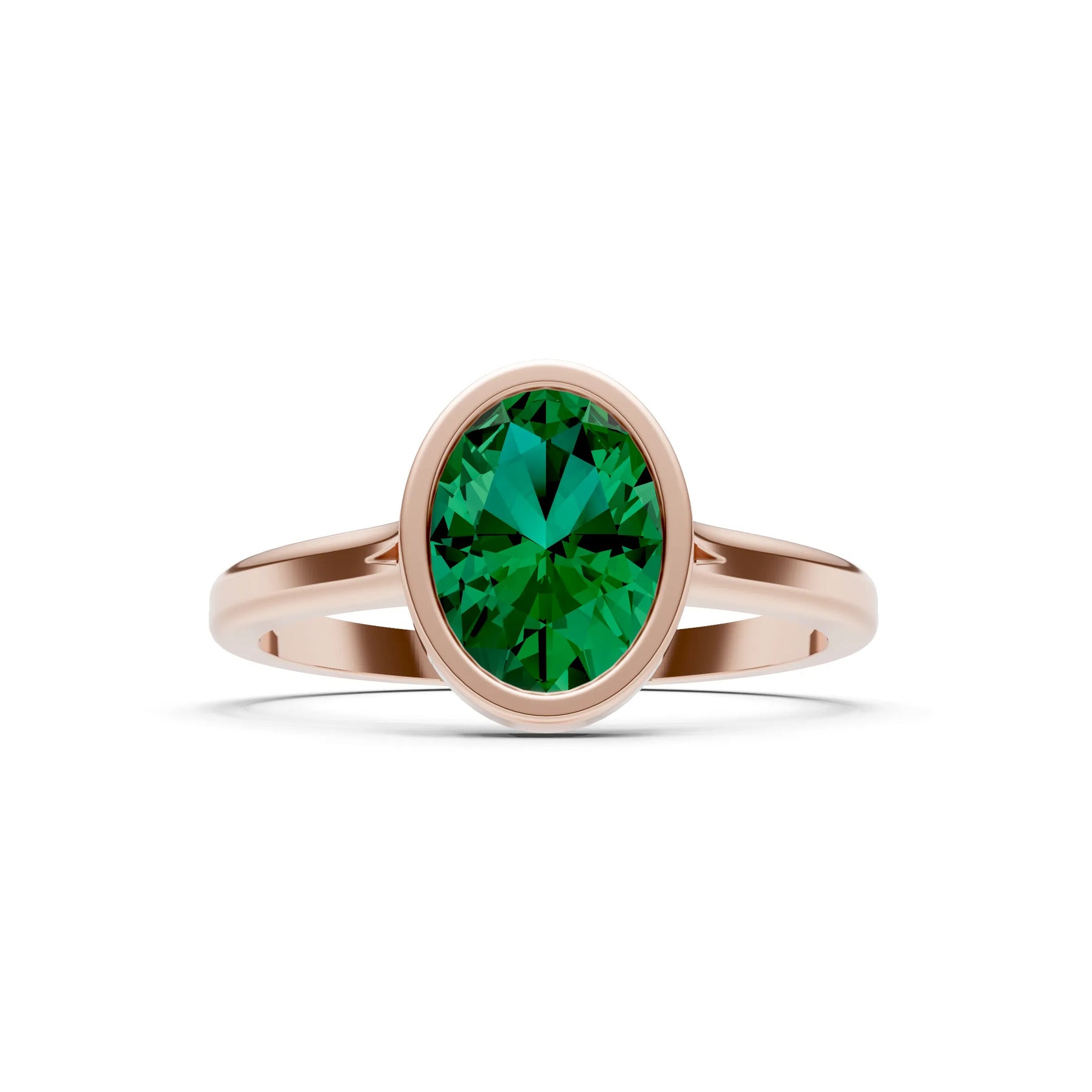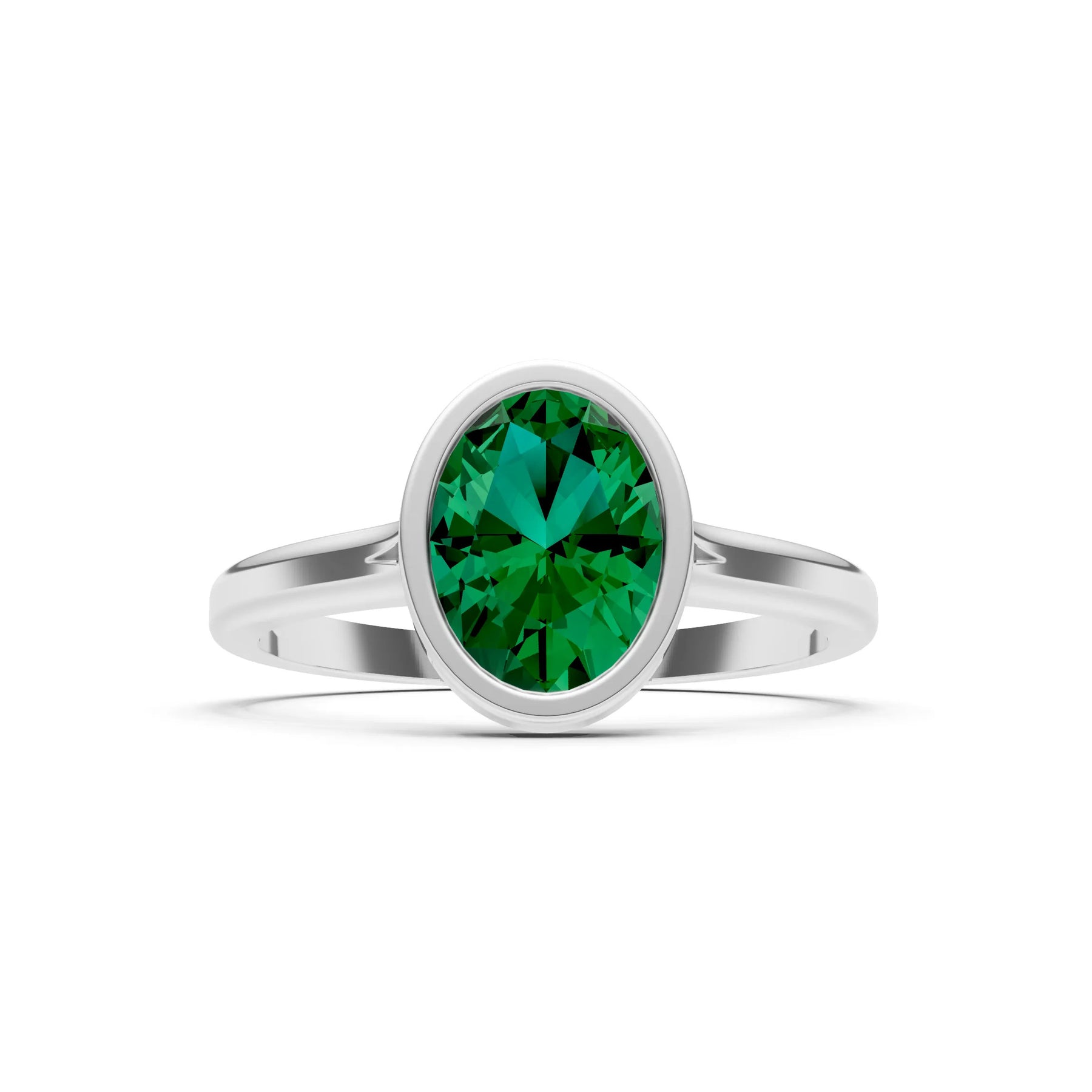 Emerald Oval Shape Bezel Set Solitaire Ring