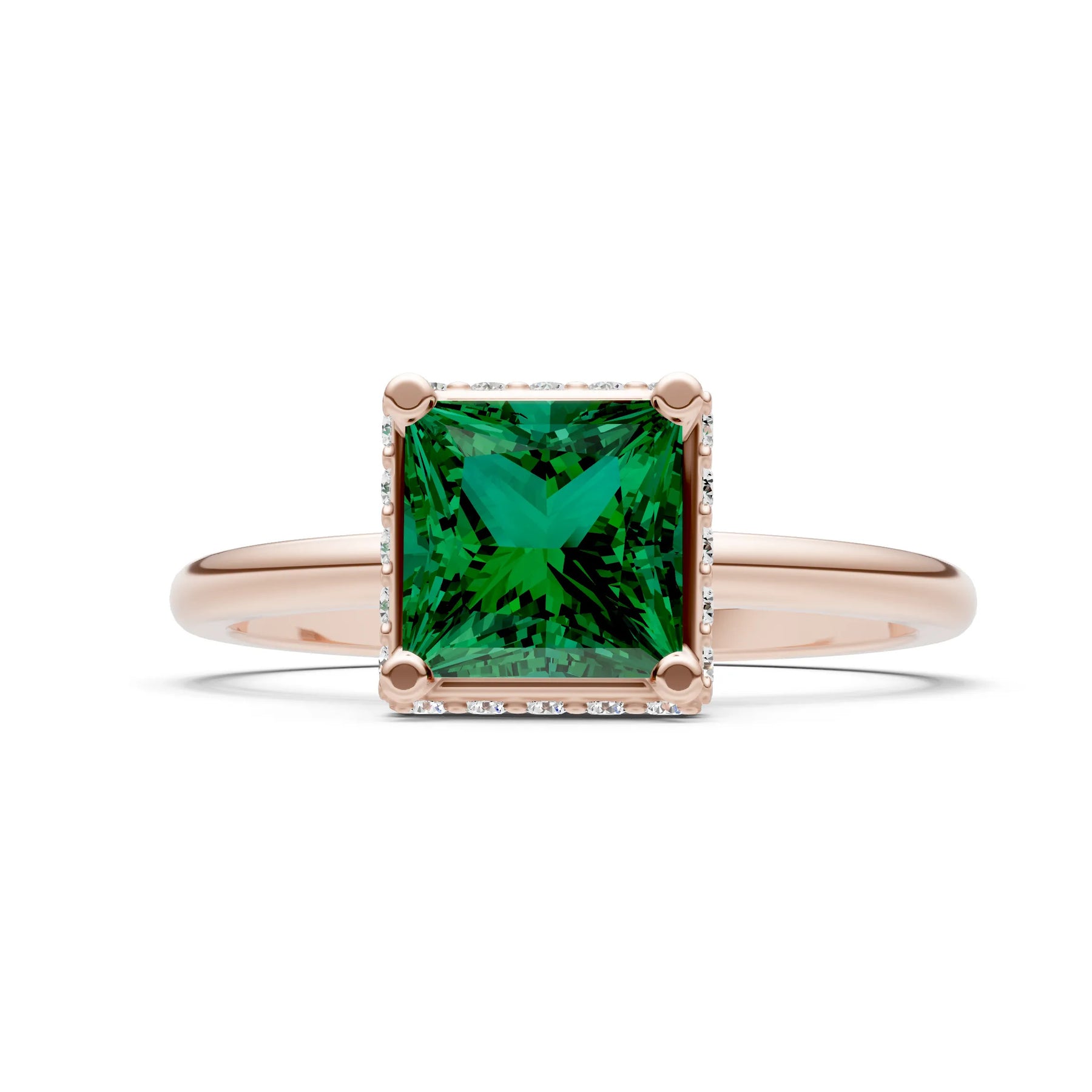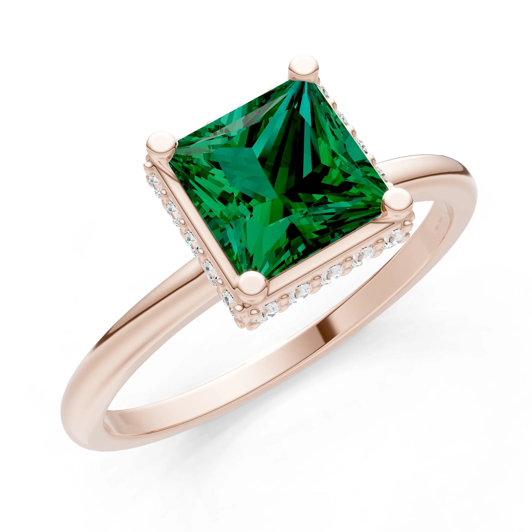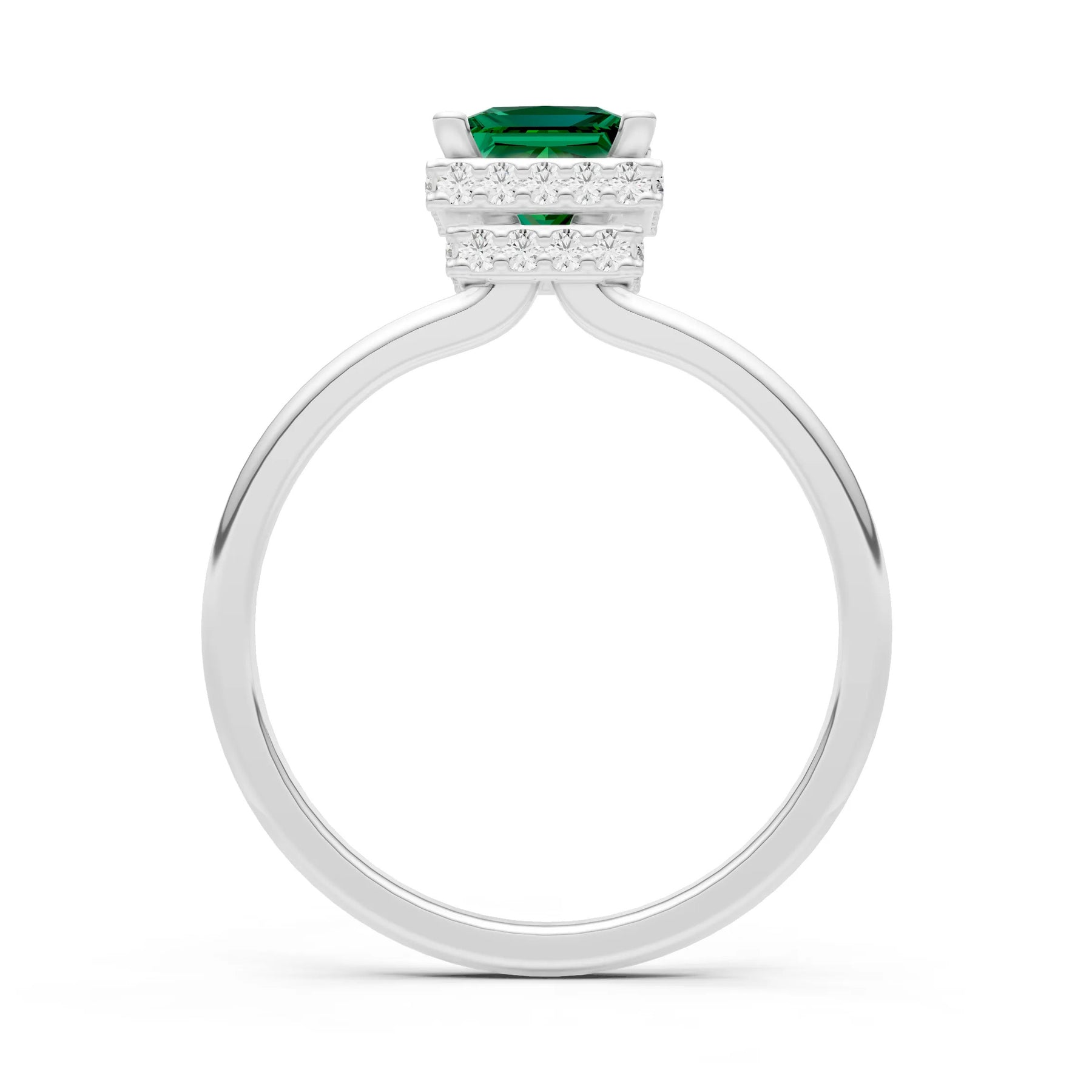 Emerald Princess Cut Hidden Double Halo Engagement Ring