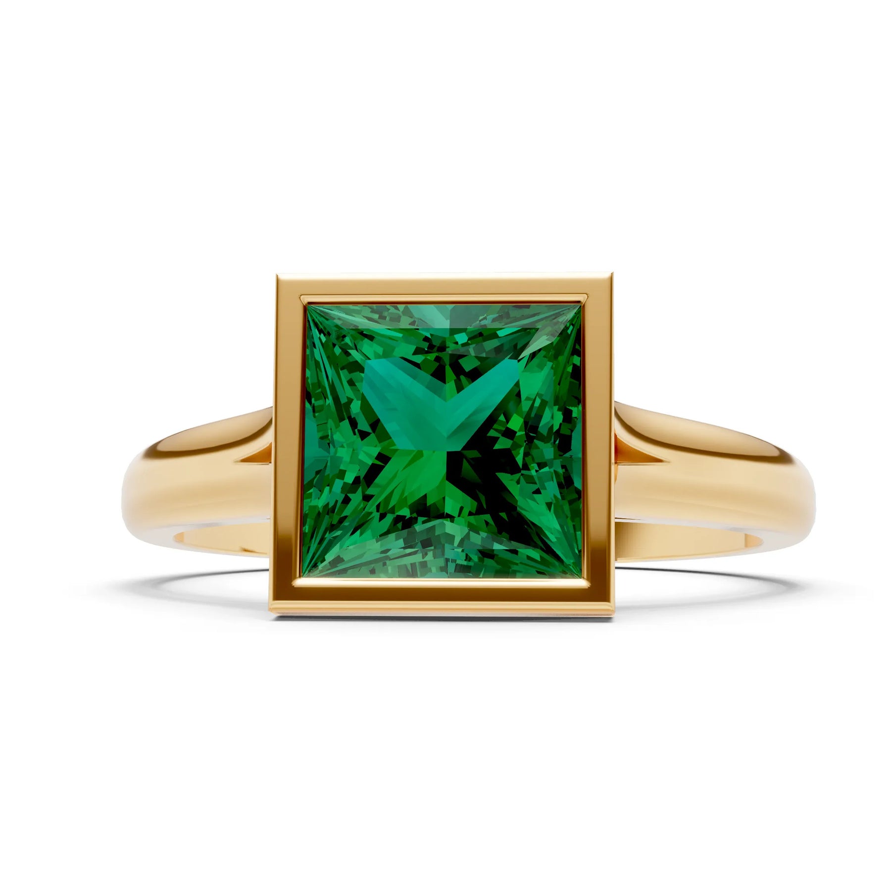 Emerald Princess Shape Bezel Solitaire Ring