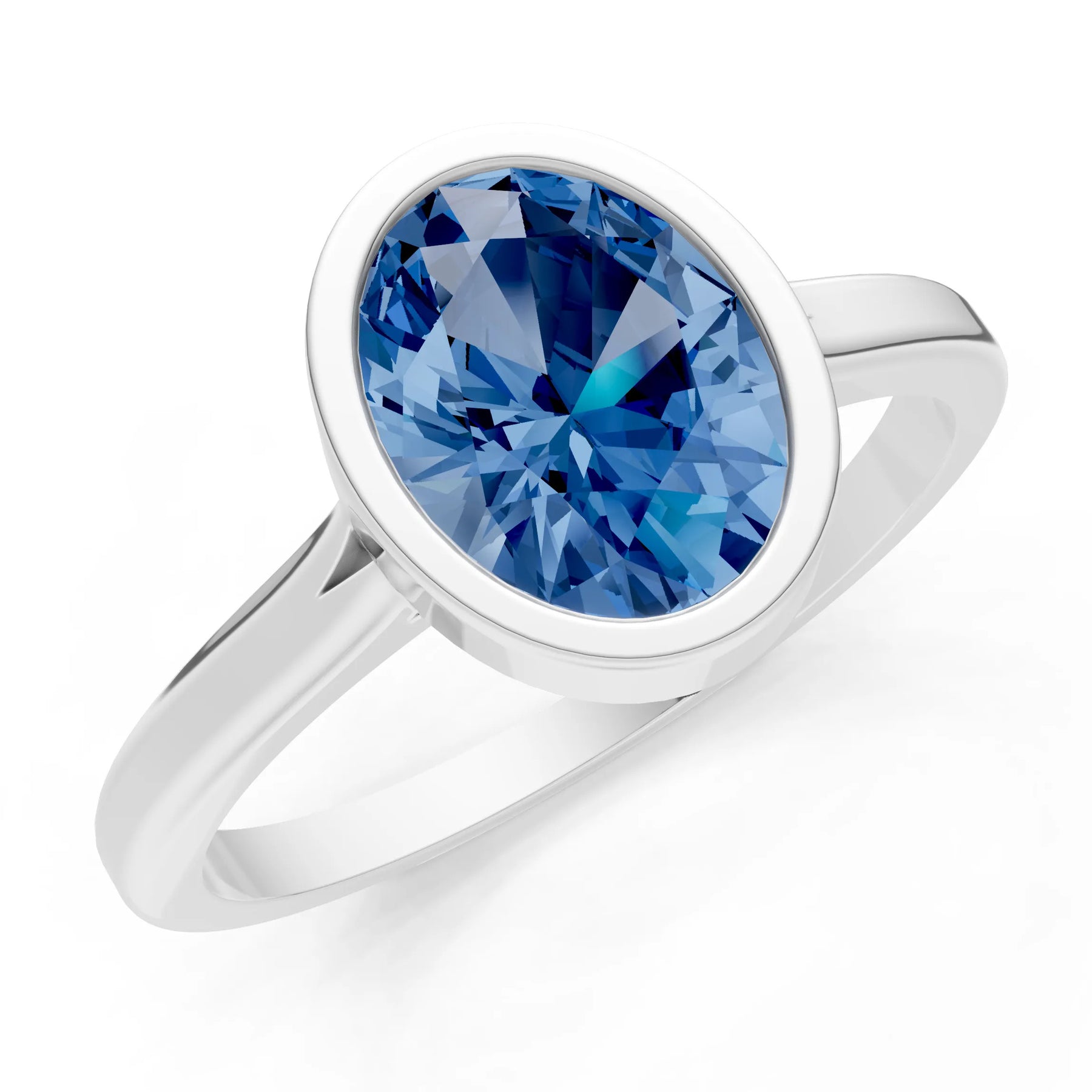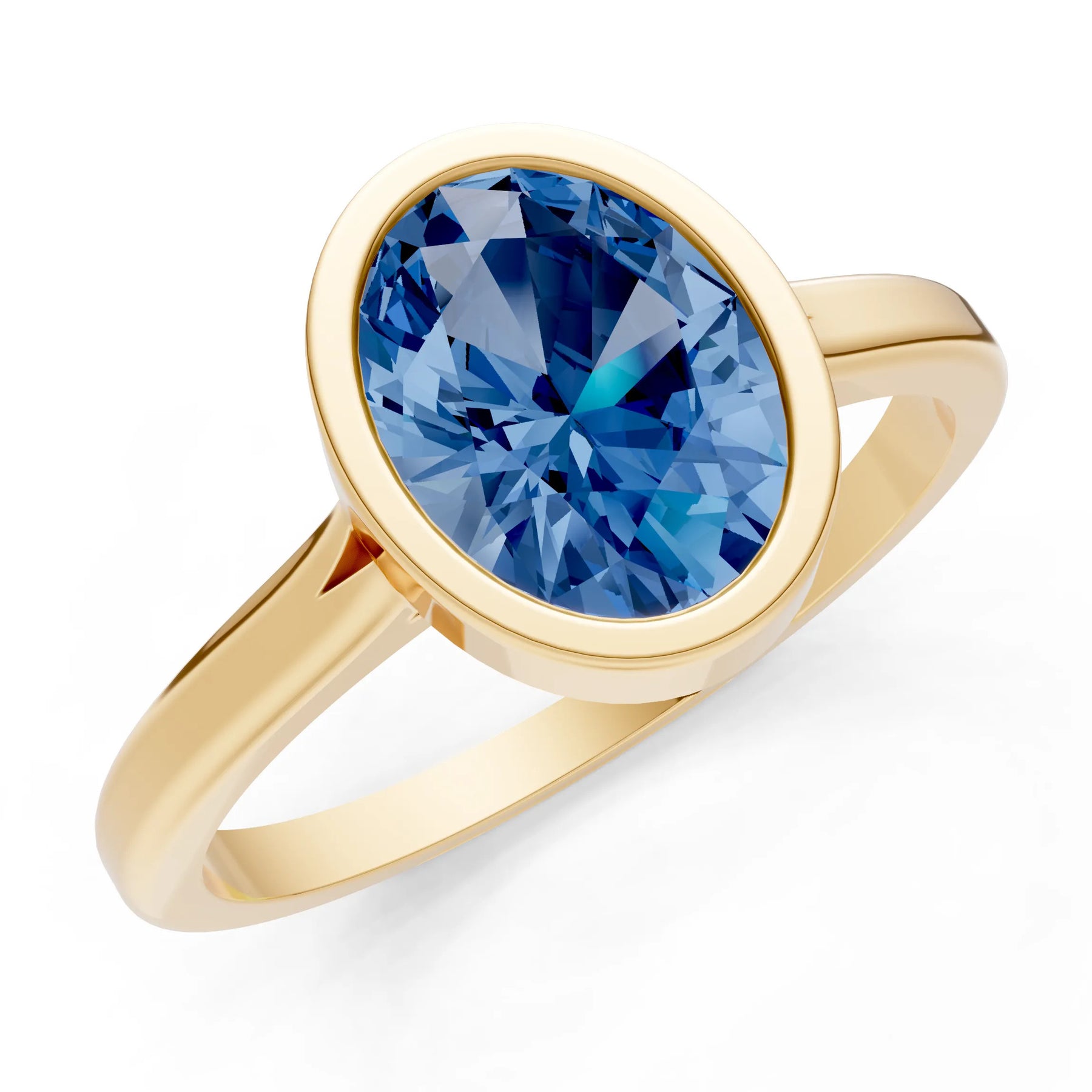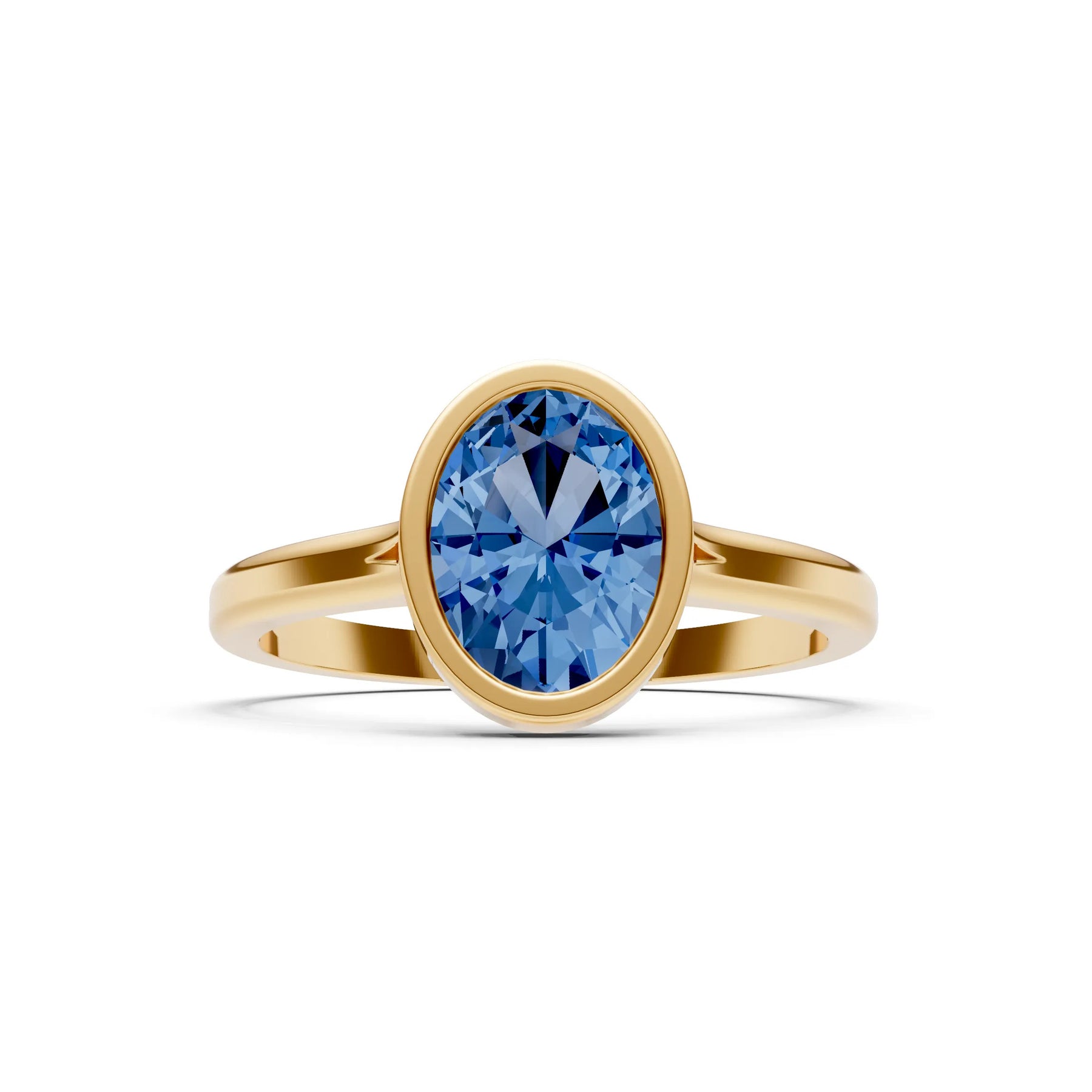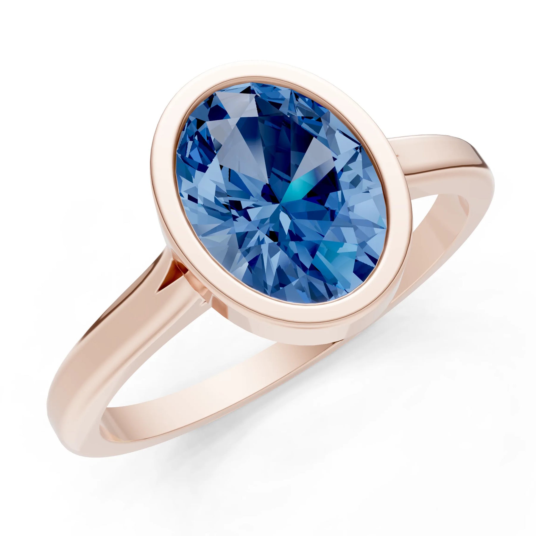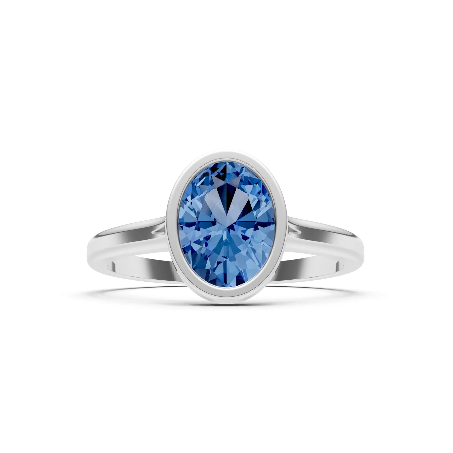London Blue Topaz Oval Shape Bezel Set Solitaire Ring
