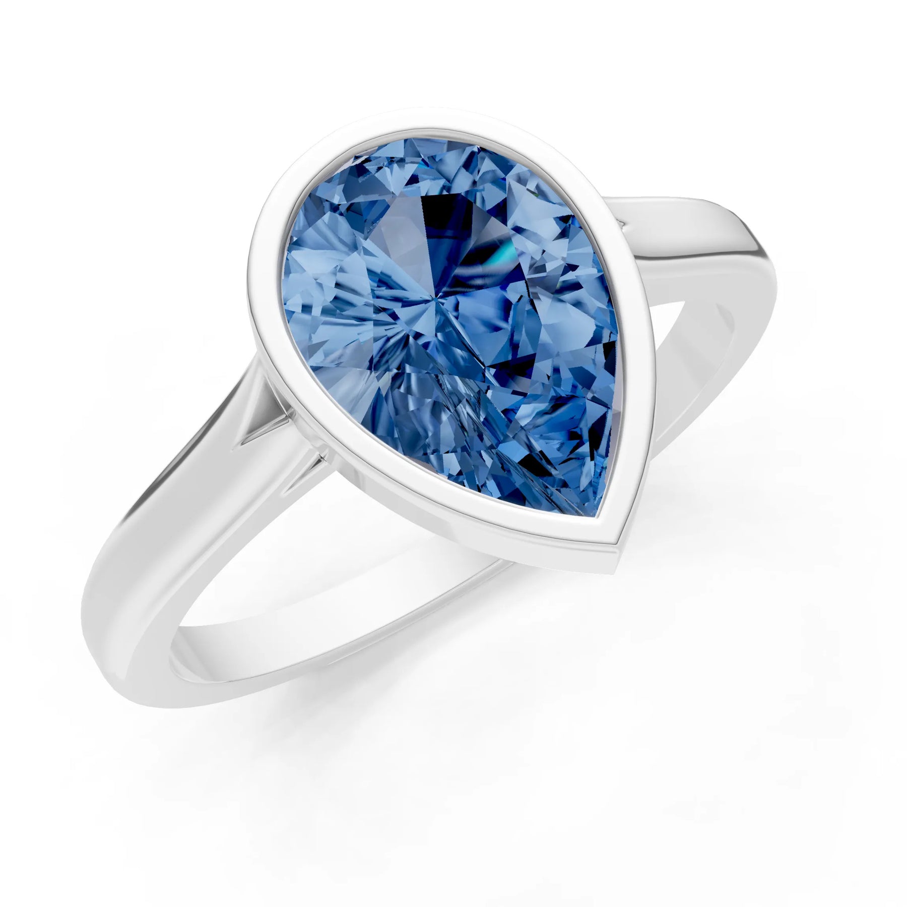 London Blue Topaz Pear Shape Bezel Set Solitaire Ring