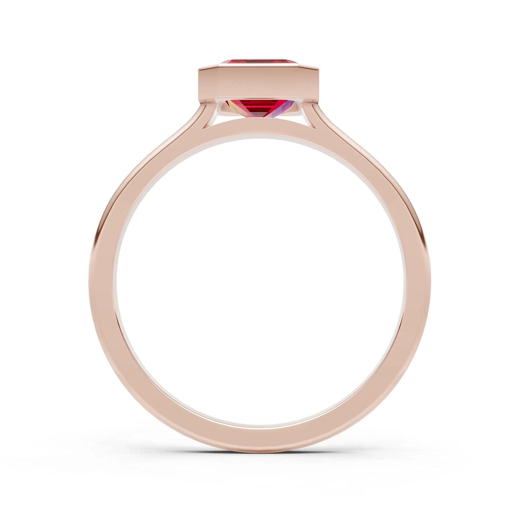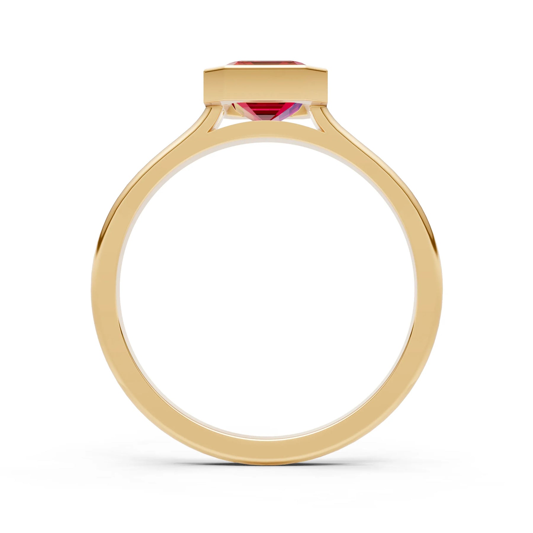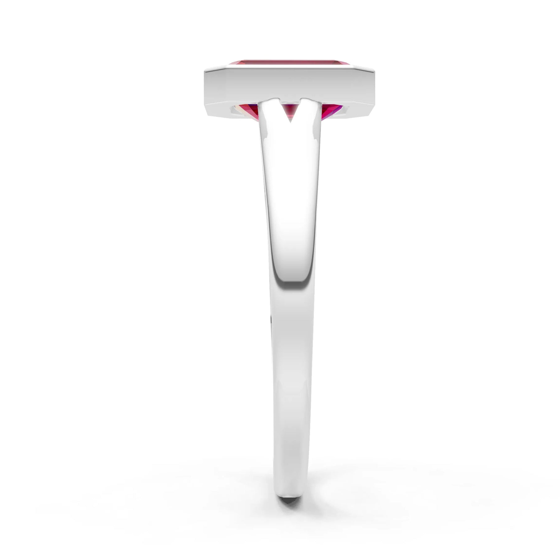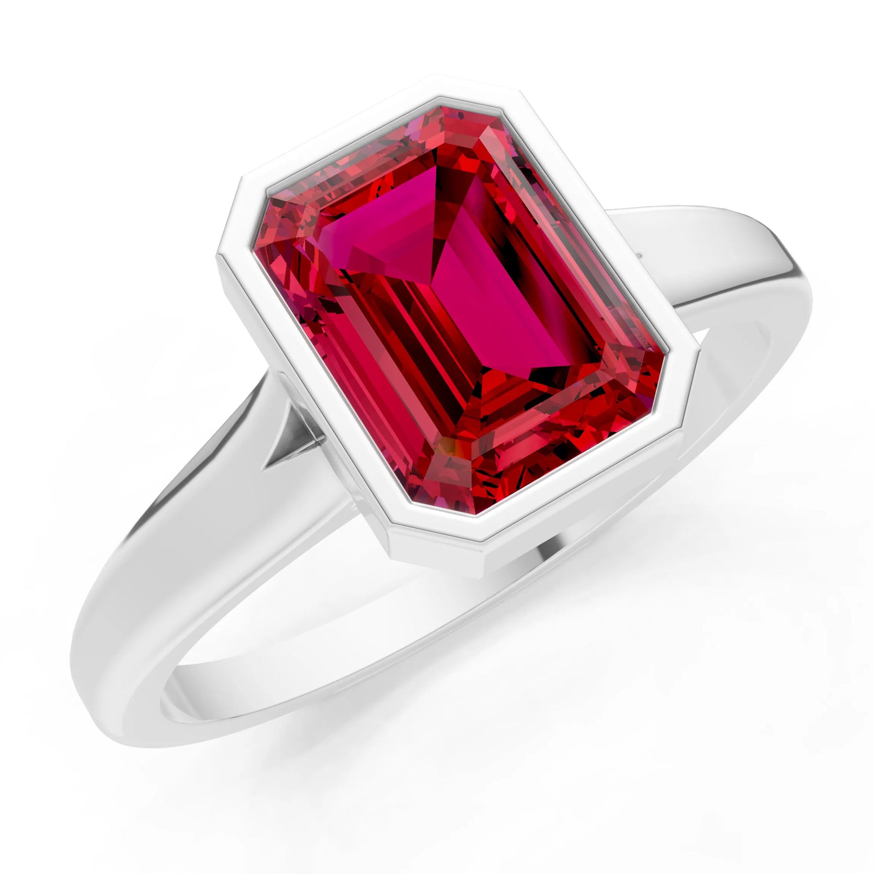 Ruby Emerald Cut Bezel Set Solitaire Ring