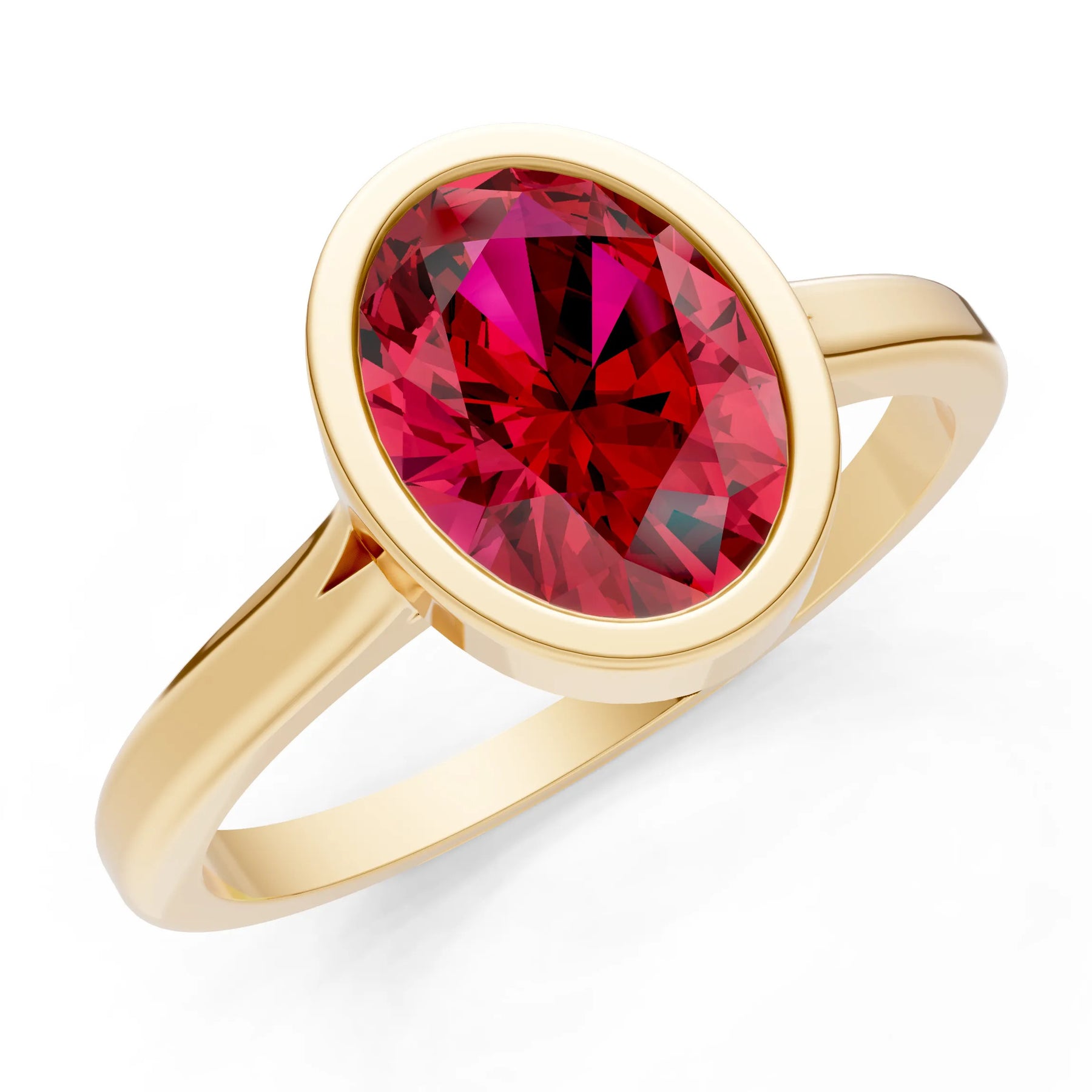 Ruby Oval Shape Bezel Set Solitaire Ring