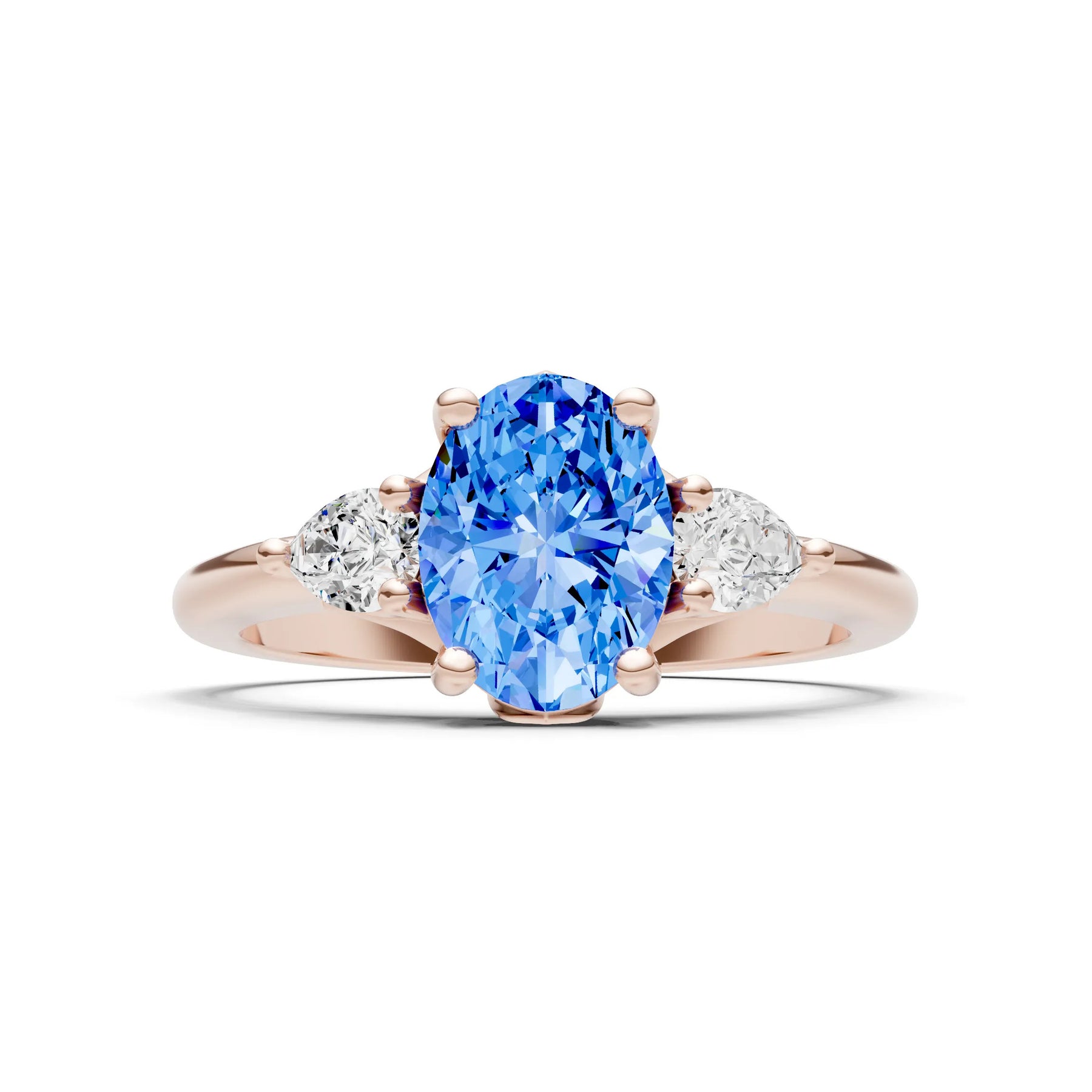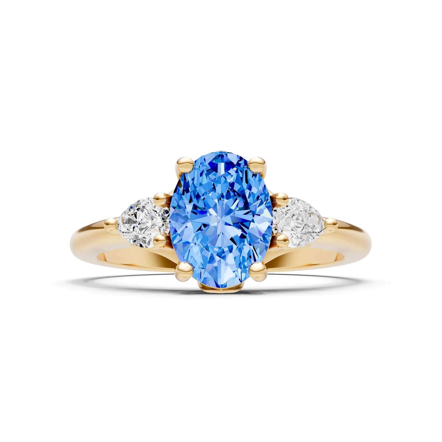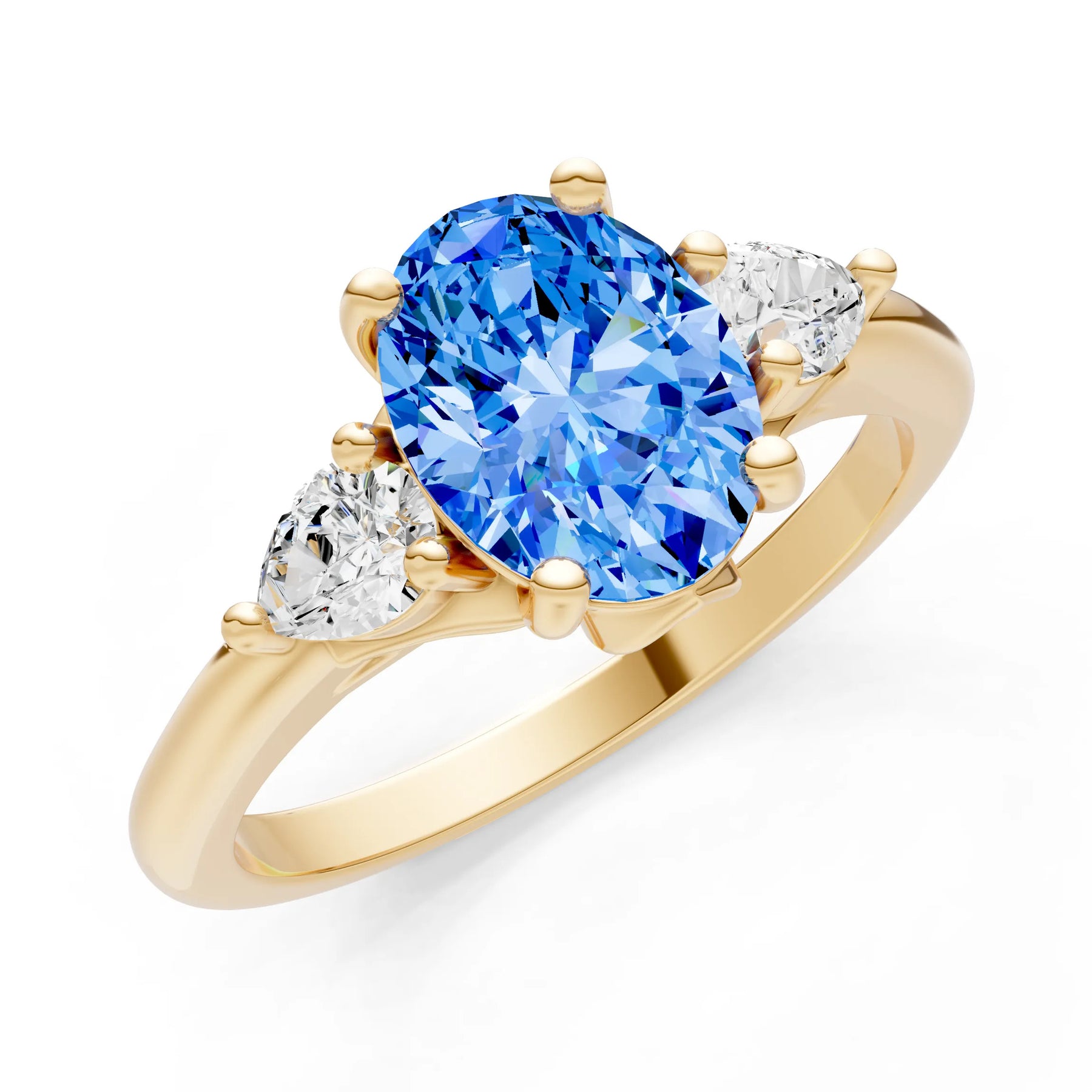 SBT Oval 8x6mm Normal Gold Quality Trellis Three Stone Oval and Pear Lab Diamond Engagement Ring