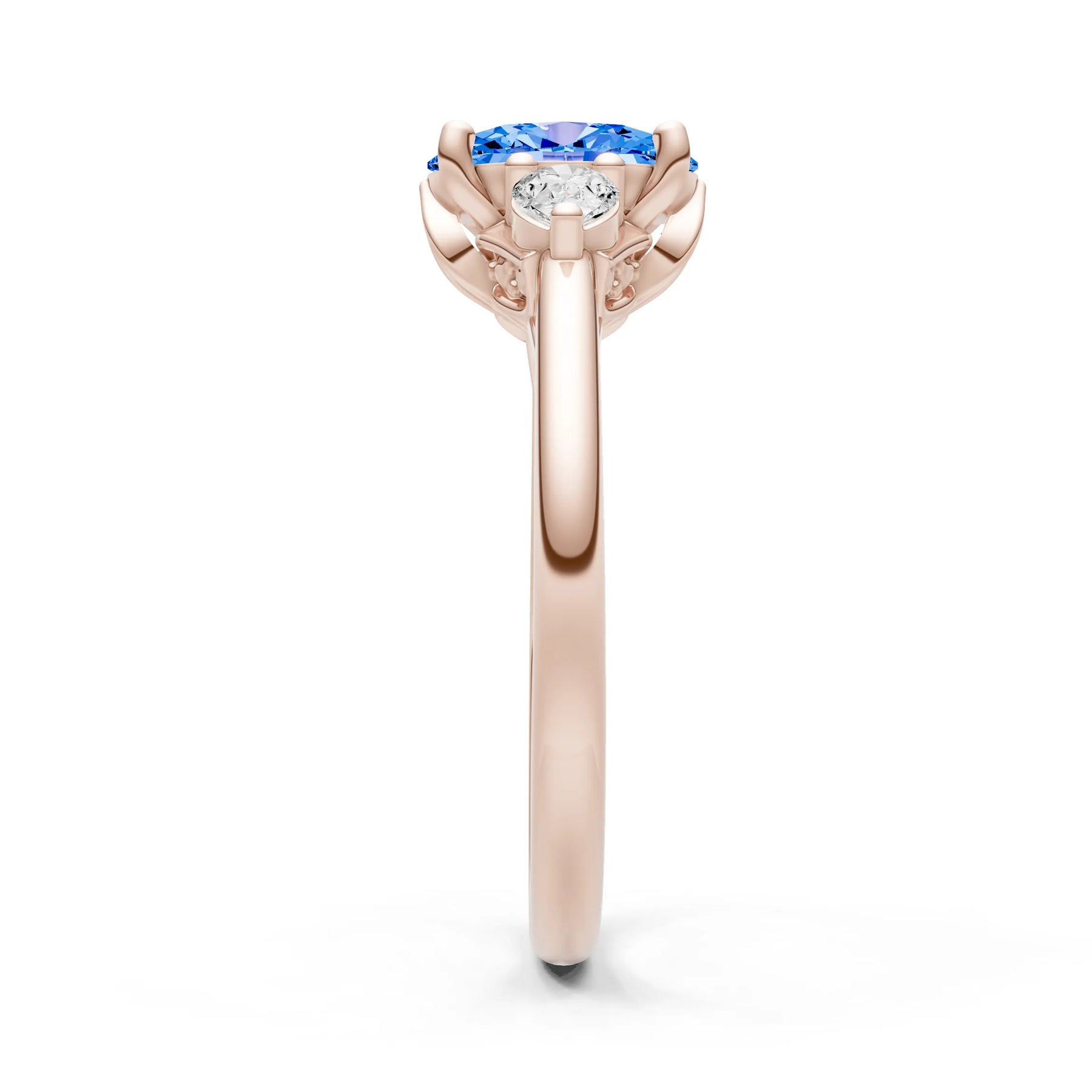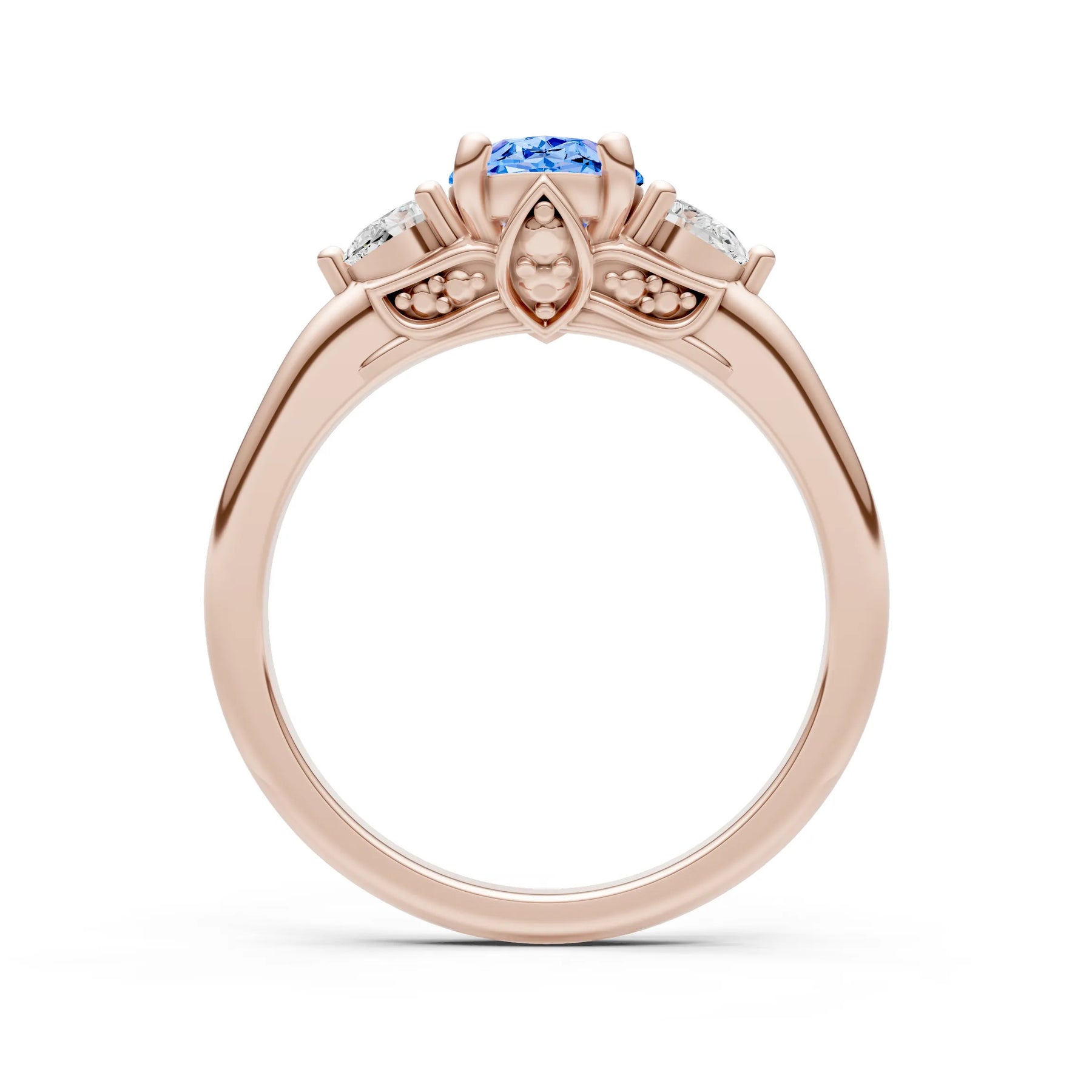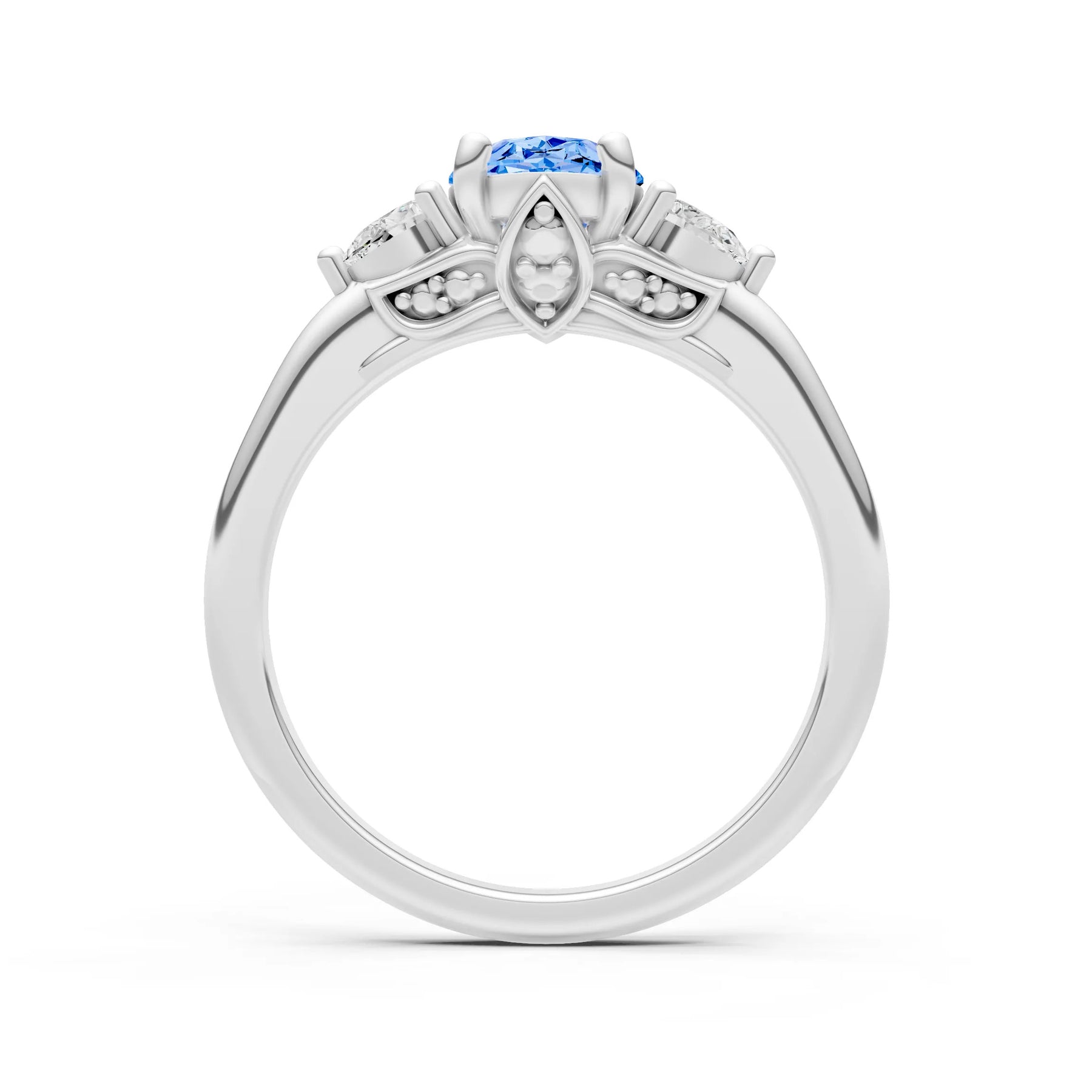 SBT Oval 8x6mm Normal Gold Quality Trellis Three Stone Oval and Pear Lab Diamond Engagement Ring