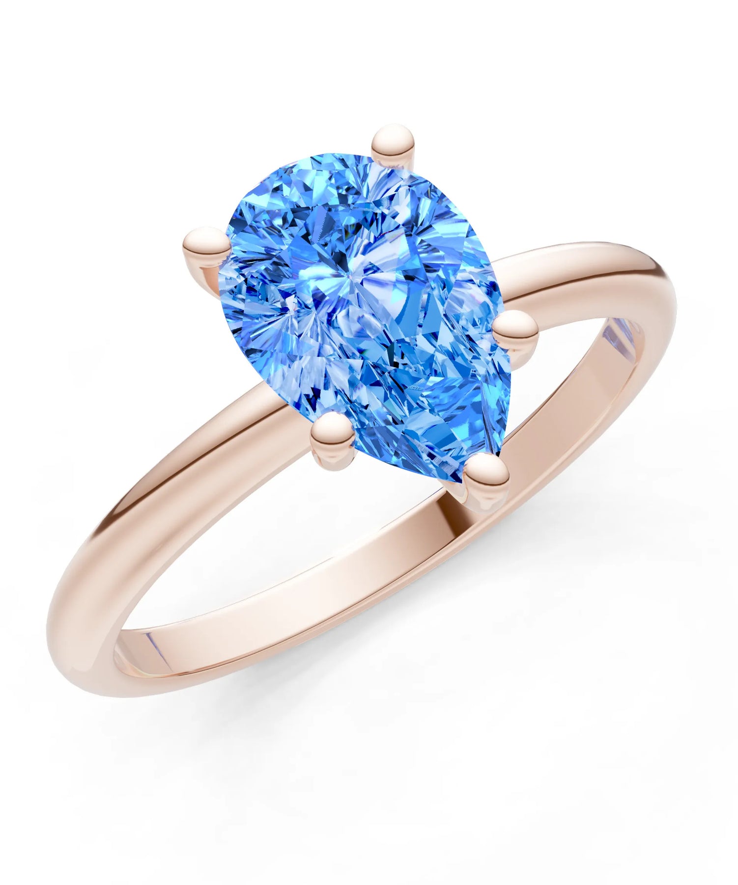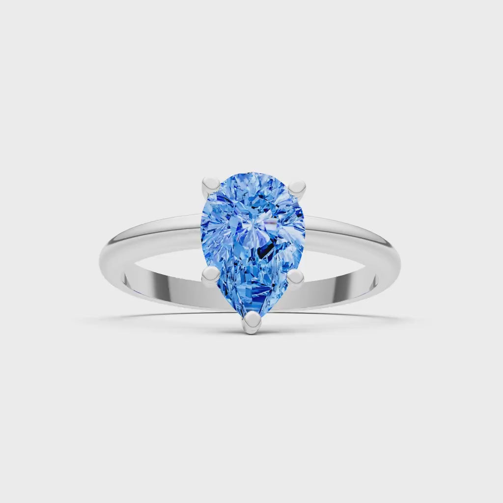 Swiss Blue Topaz 5 Prong Pear Shape Solitaire Engagement Ring