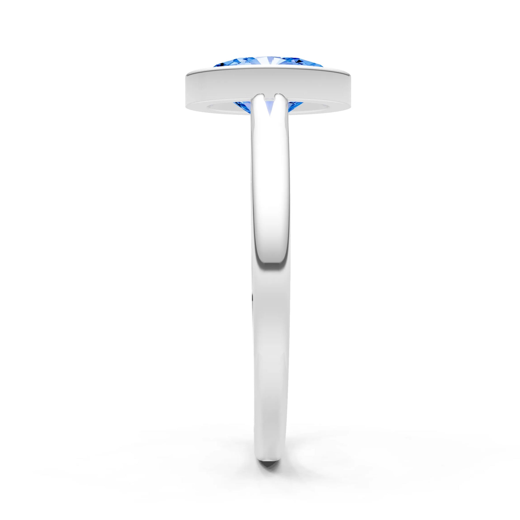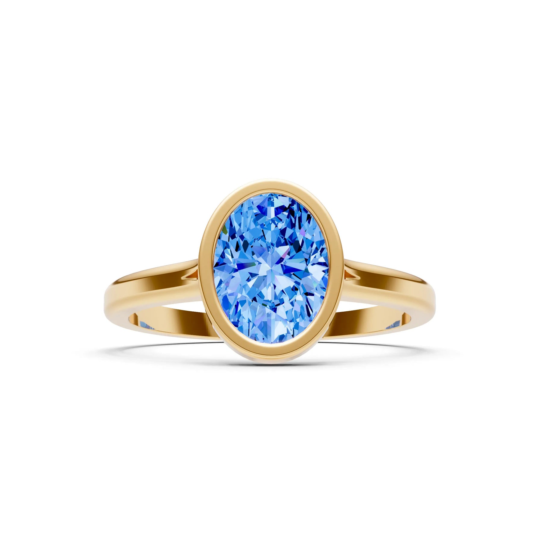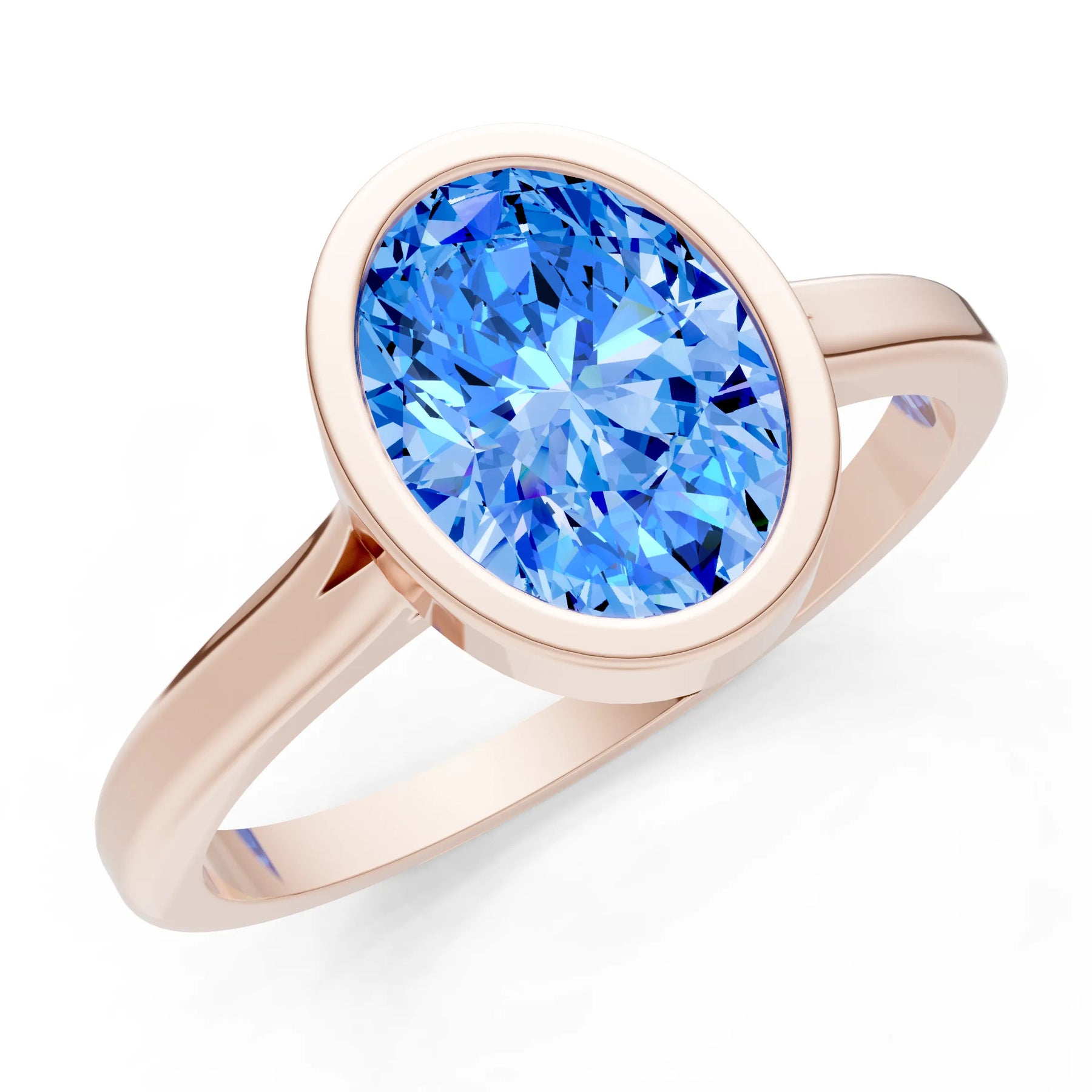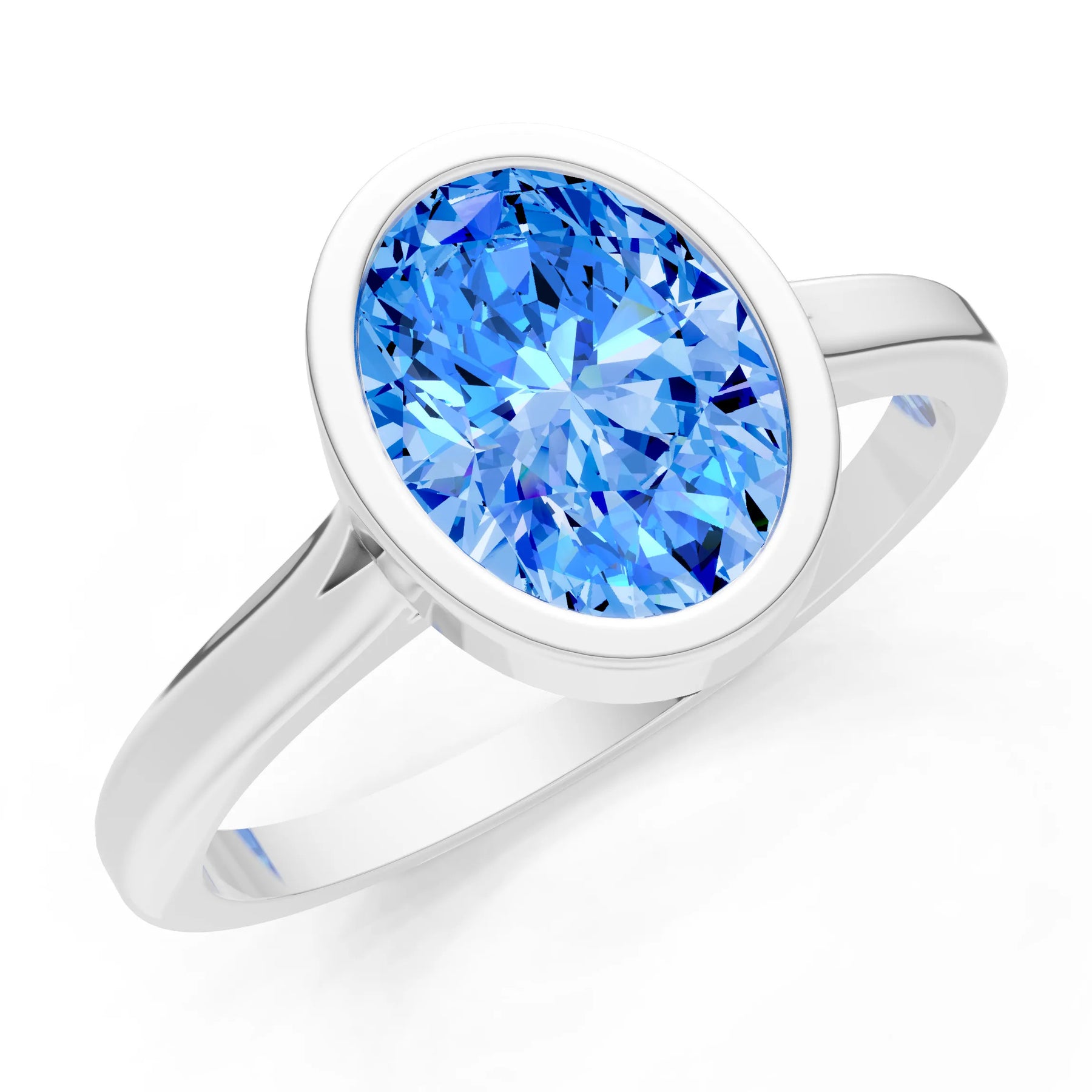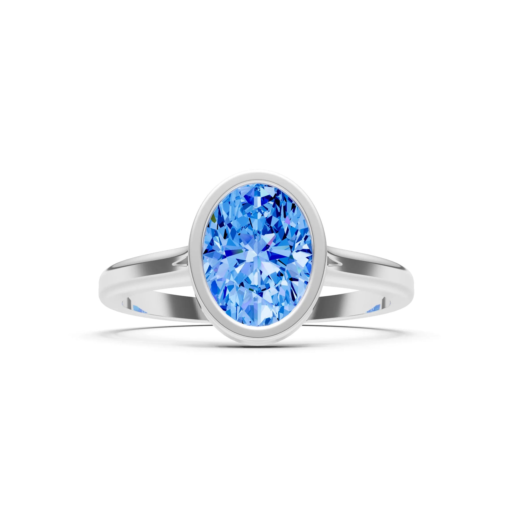 Swiss Blue Topaz Oval Shape Bezel Set Solitaire Ring