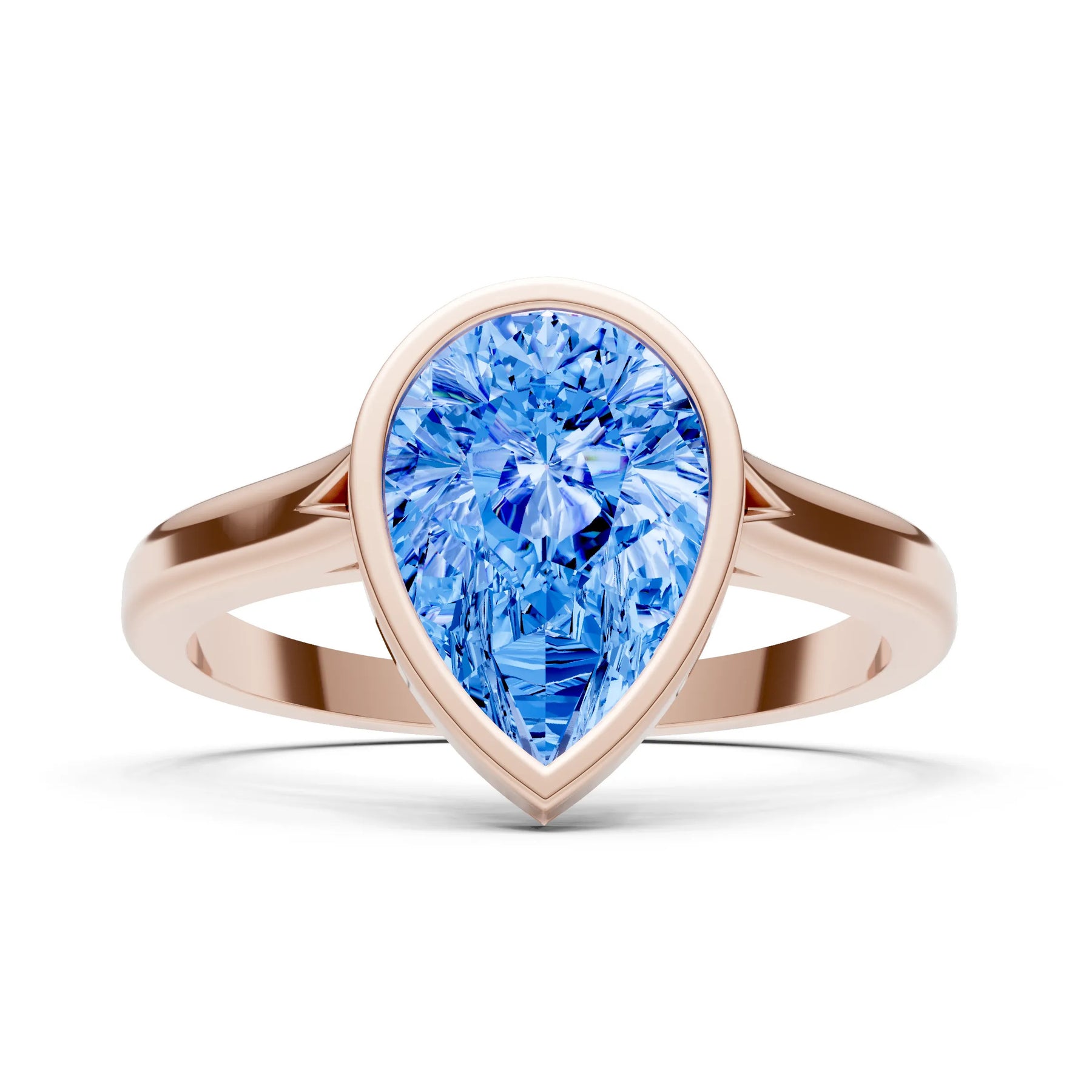 Swiss Blue Topaz Pear Shape Bezel Set Solitaire Ring