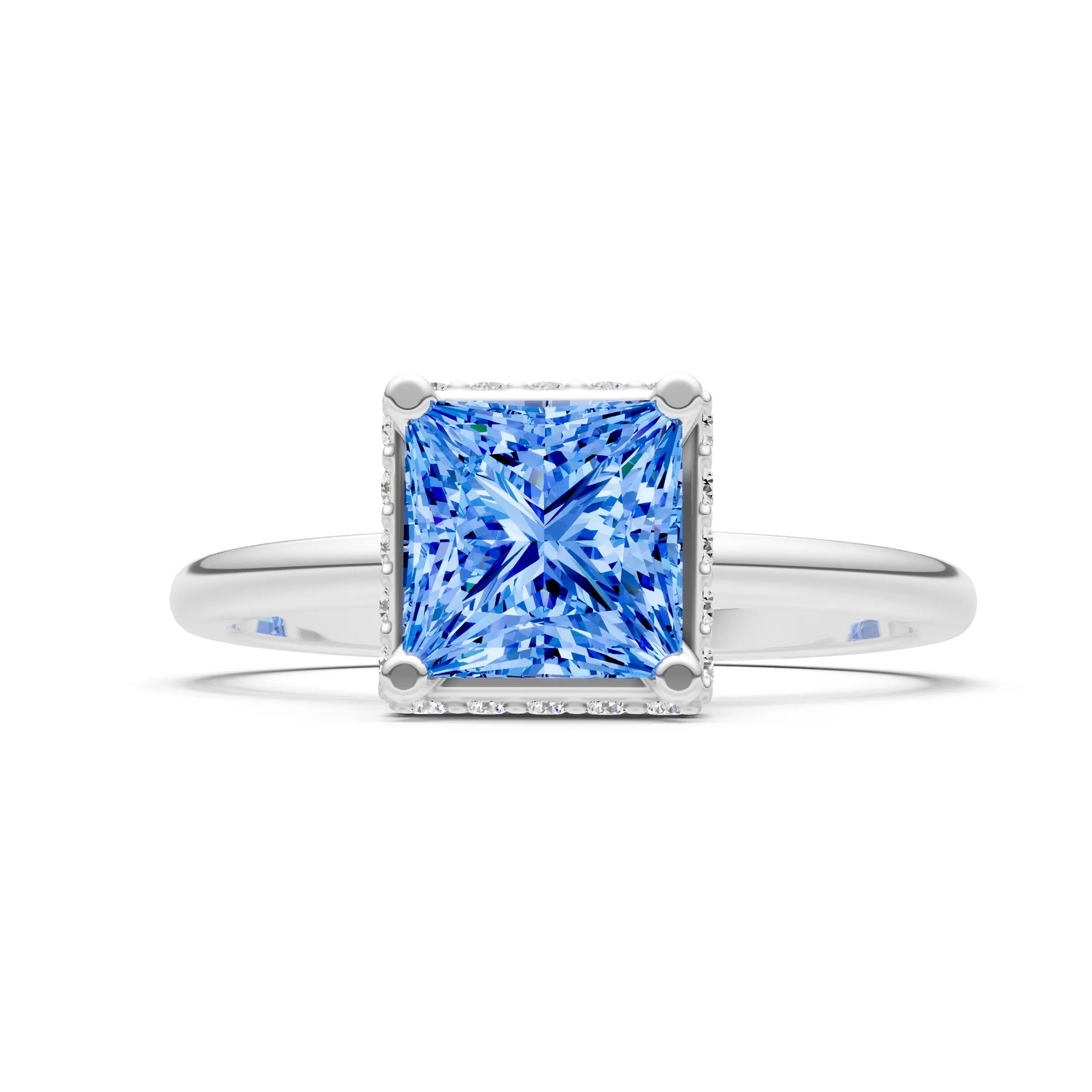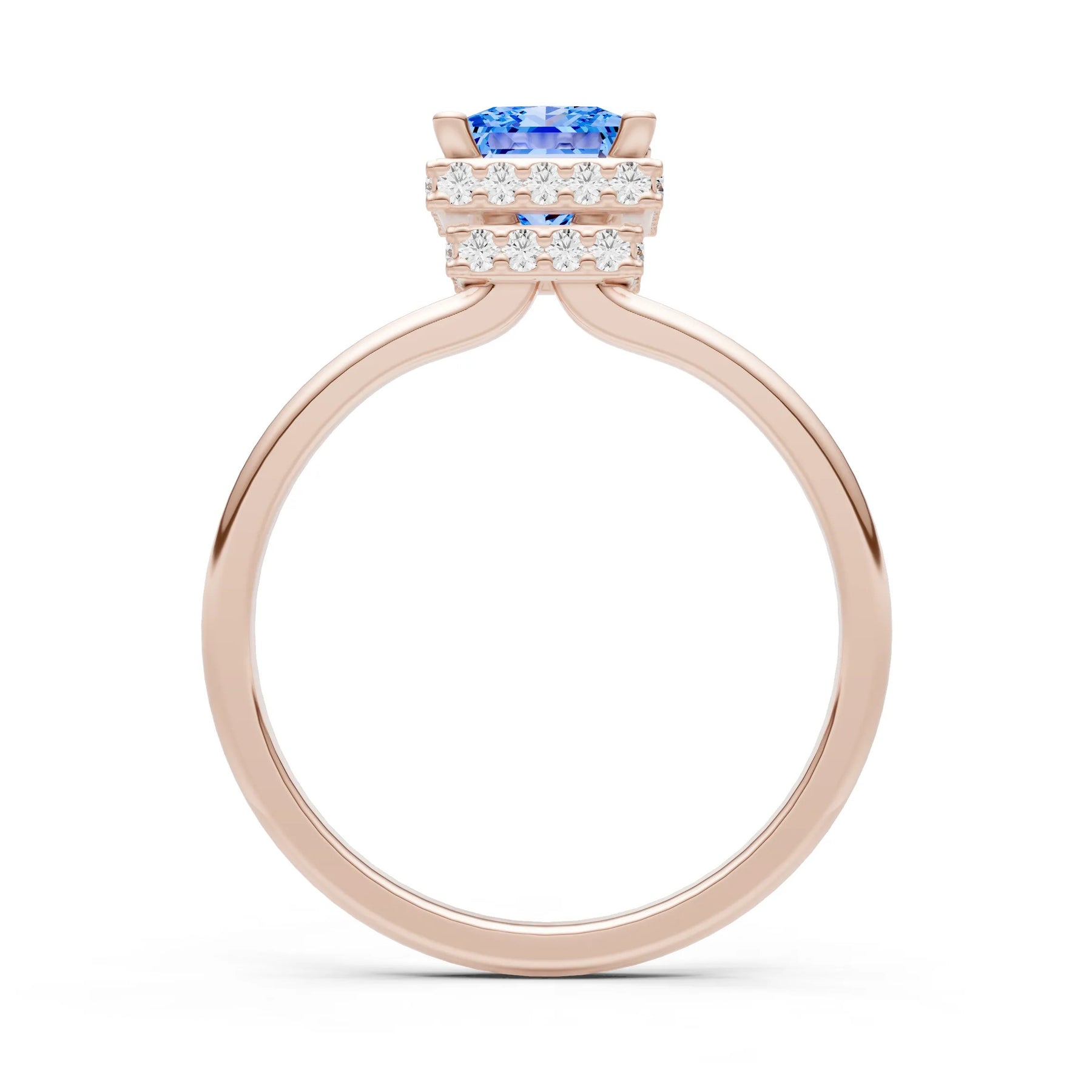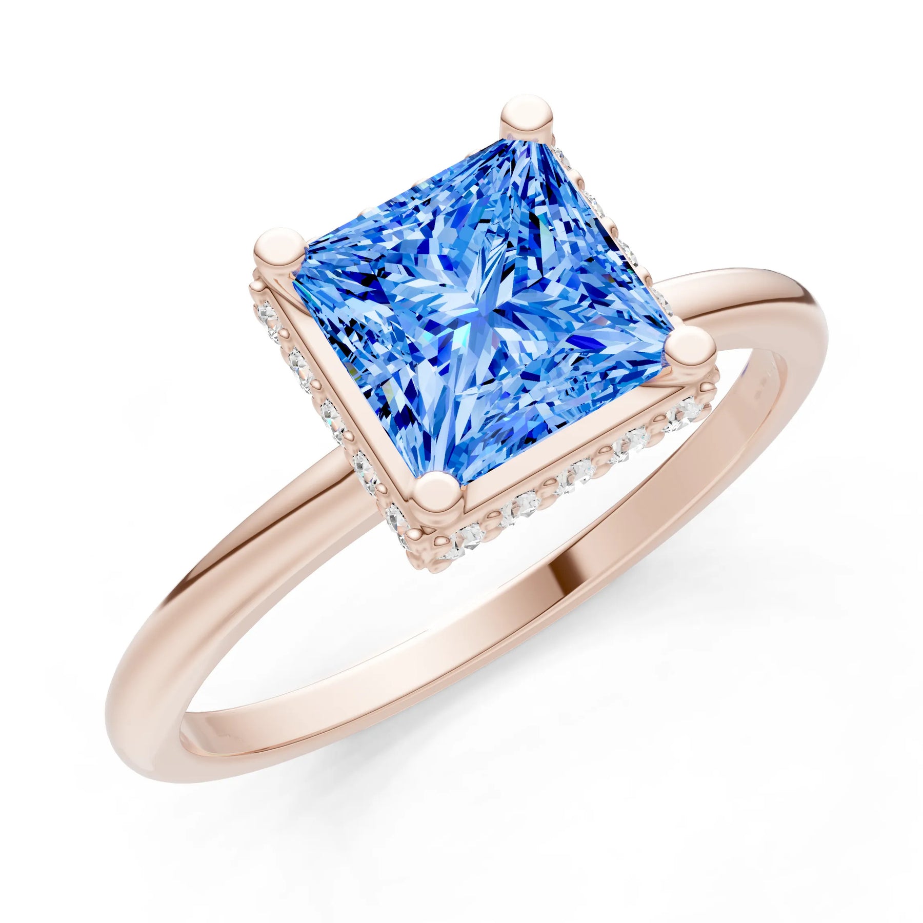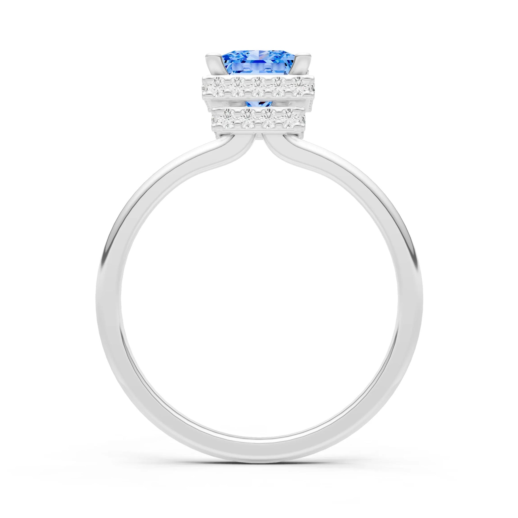 Swiss Blue Topaz Princess Cut Hidden Double Halo Engagement Ring