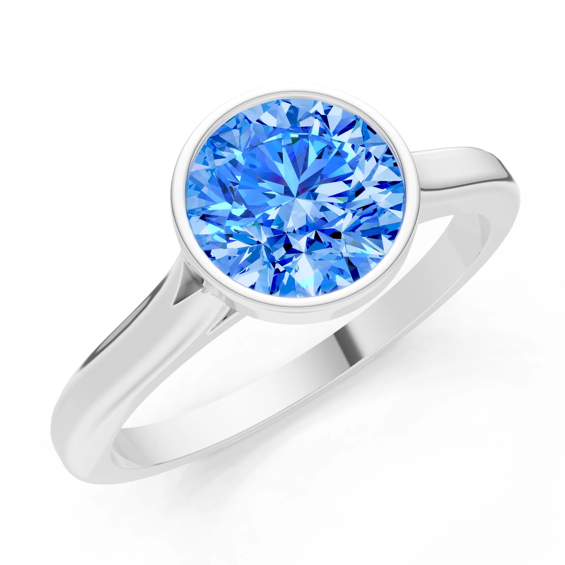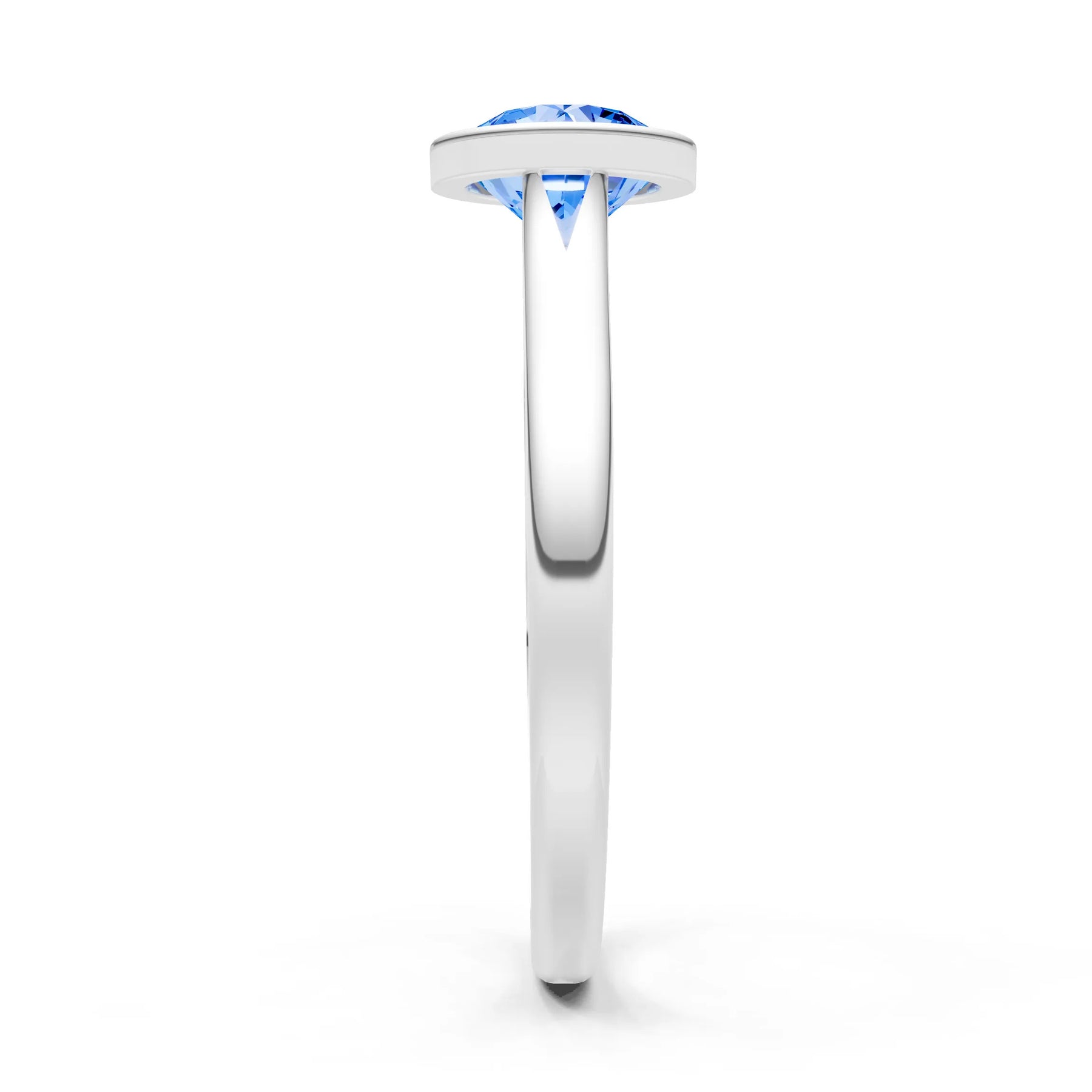 Swiss Blue Topaz Round 6.5mm Normal Round Bezel Set Solitaire Ring