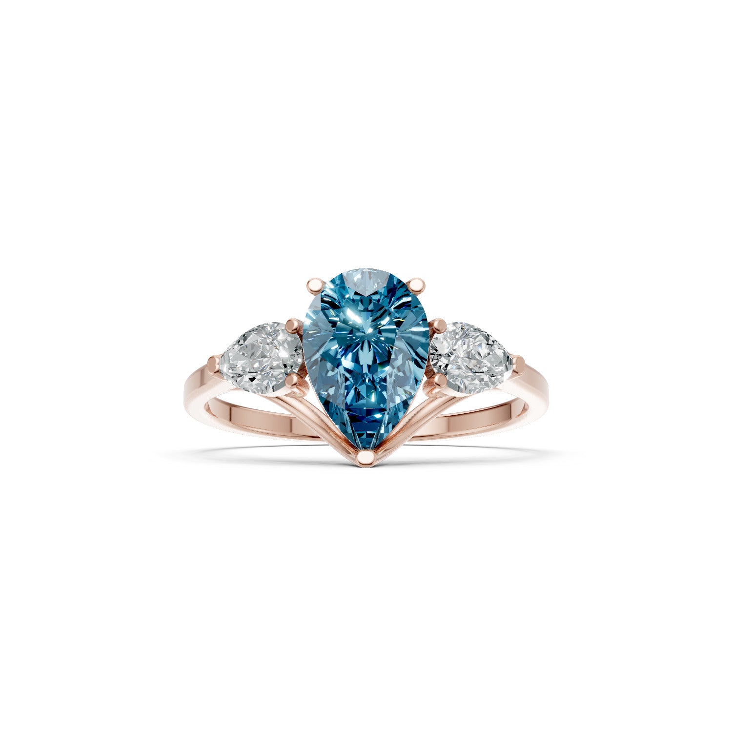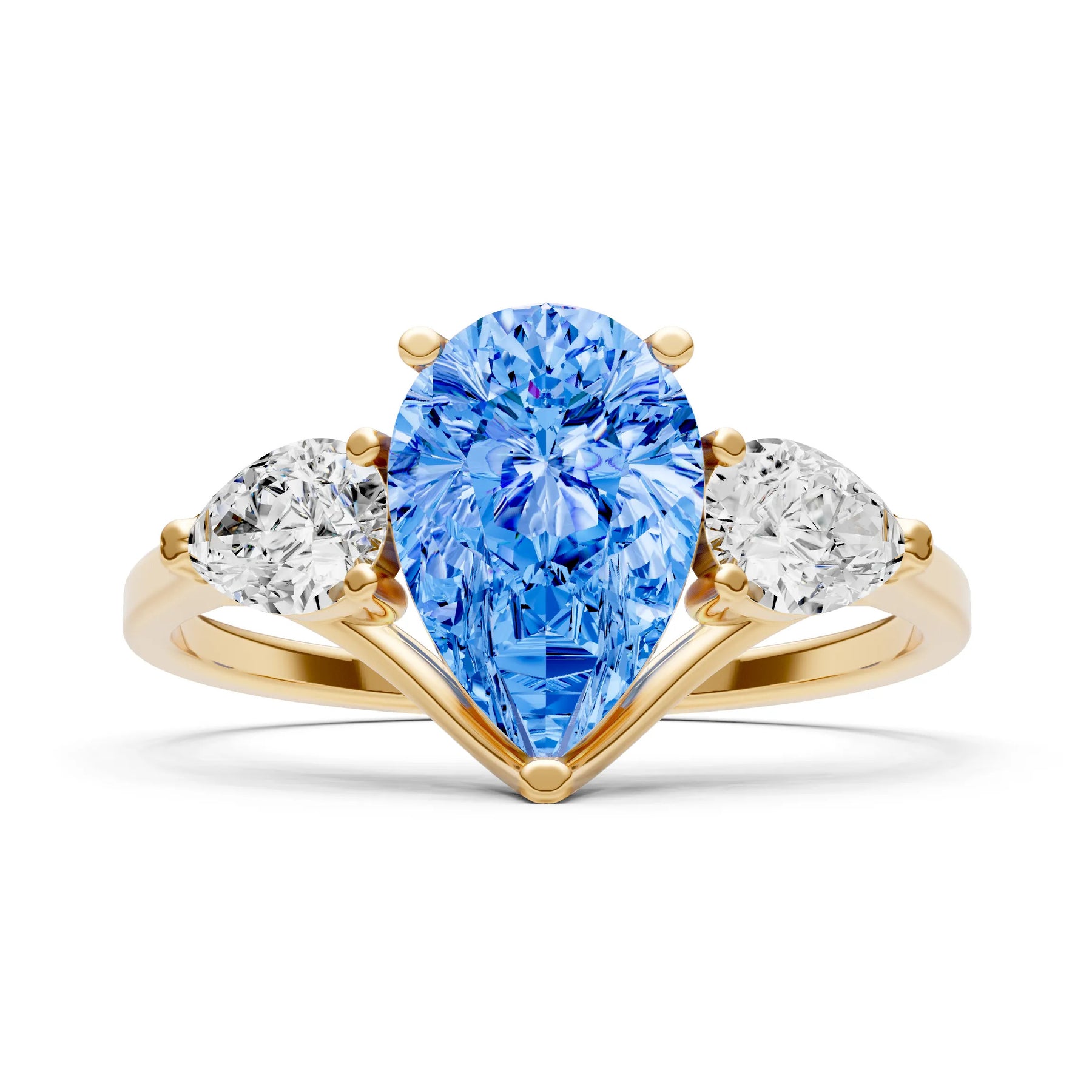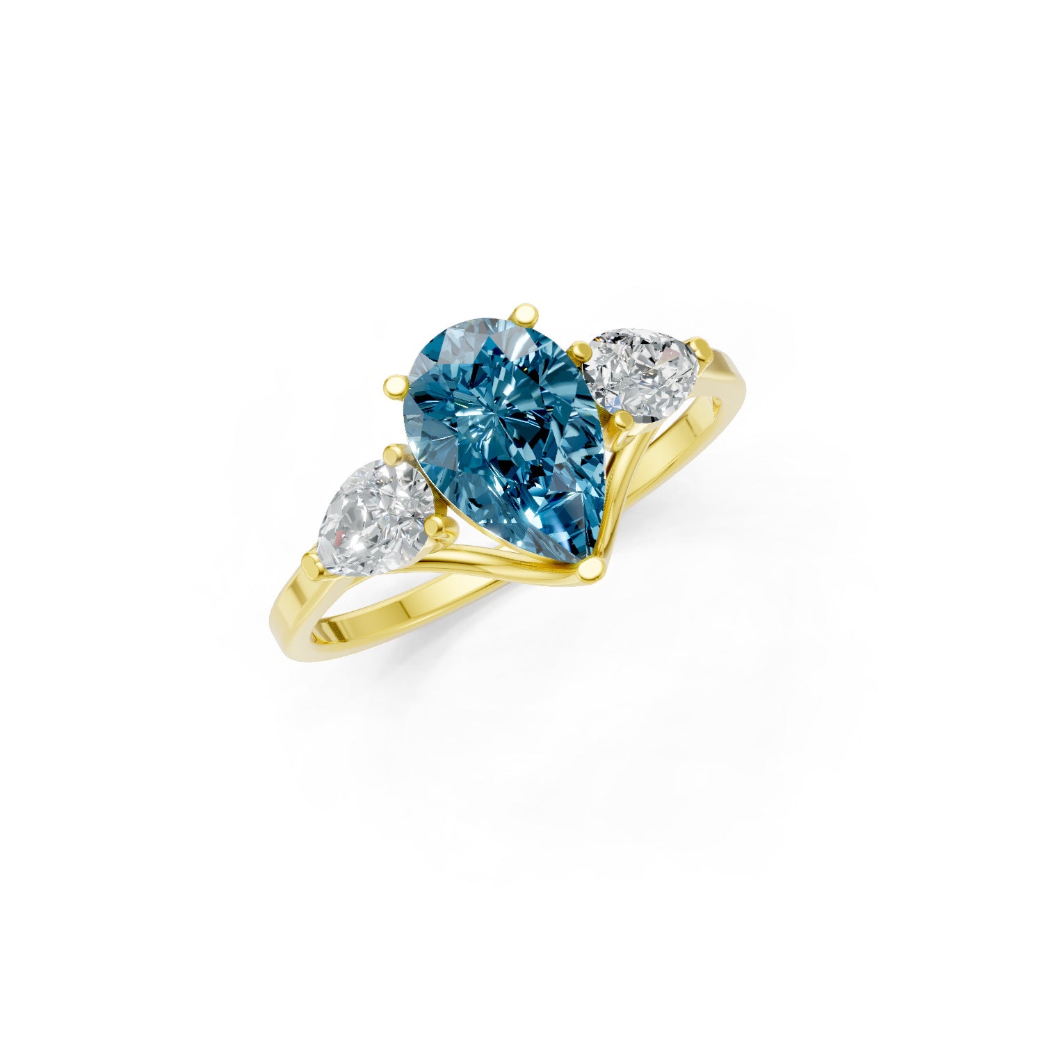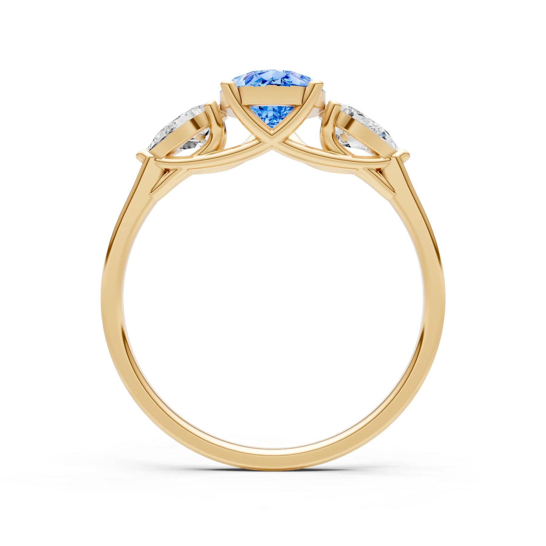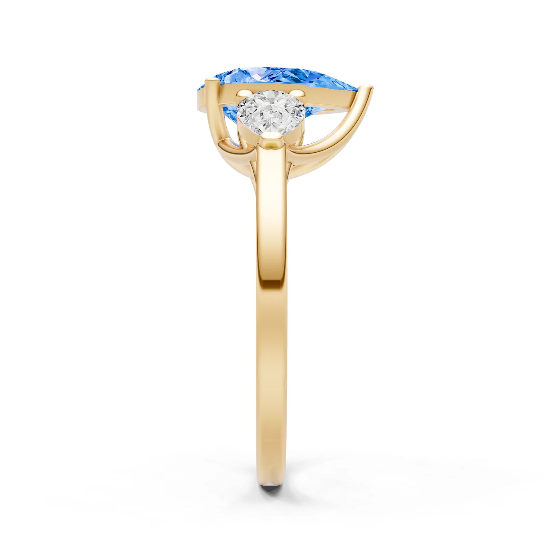 Swiss Blue Topaz Three Pear Cut Stone Ring