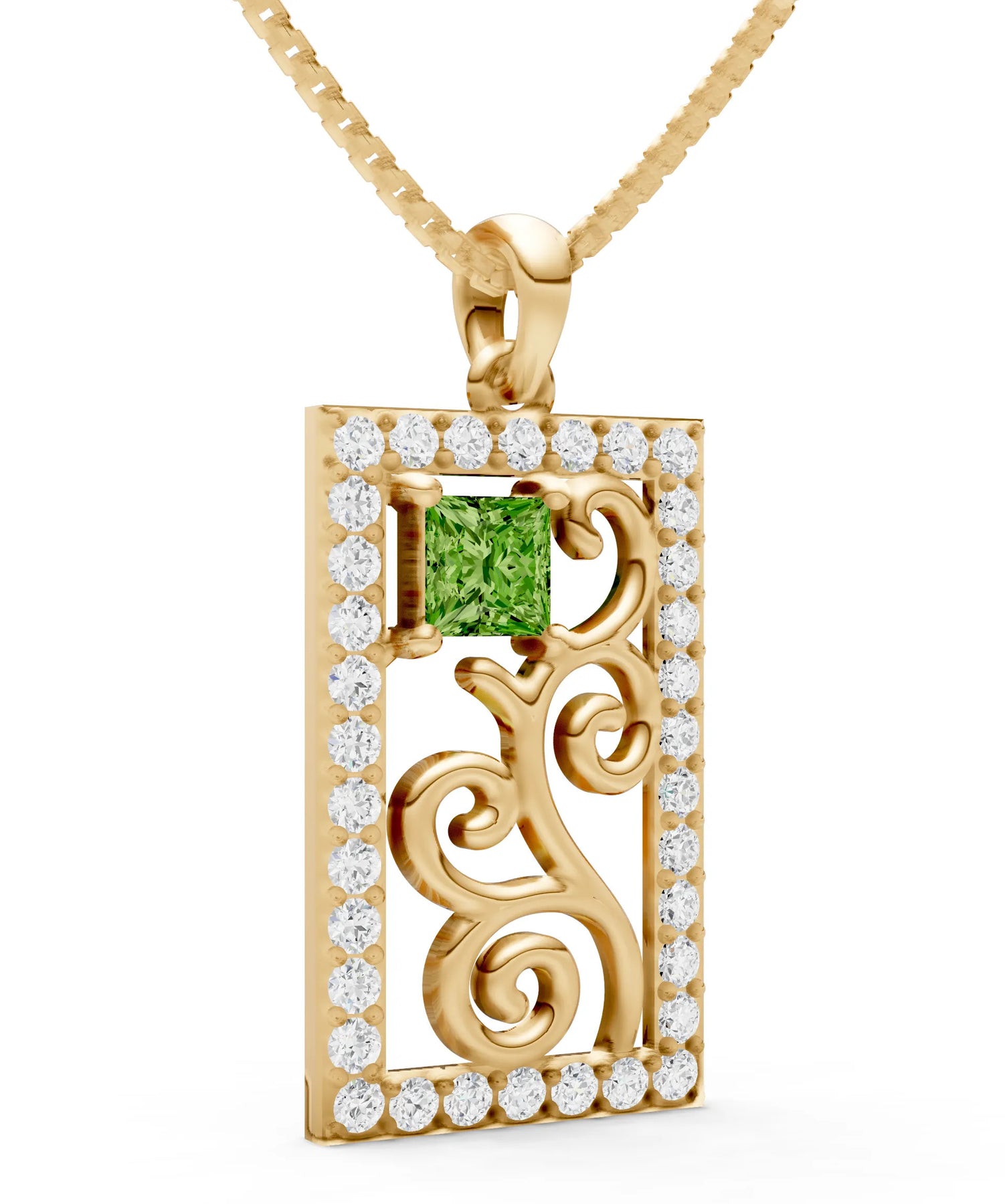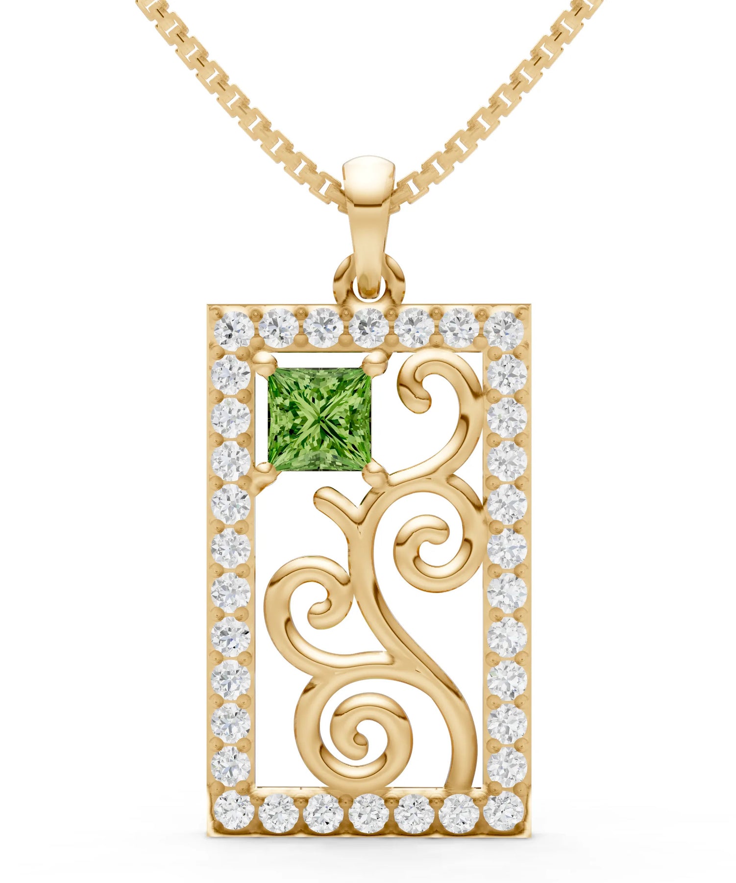 Introducing the Trellis Pattern Inset Luster Pendant, a stunning gold piece crafted with exquisite attention to detail. Available in a variety of vibrant gemstones and customizable in 10k, 14k, and 18k gold in your choice of White, Yellow, or Rose Gold, this pendant showcases intricate design elements that highlight its beauty. At Peora, craftsmanship meets purpose, reflecting a mission to create jewelry that embodies both aesthetic appeal and emotional depth. Each piece is thoughtfully designed, ensuring each responsibly sourced gemstone captivates with its radiant colors, clarity, and unique qualities. Elevate your collection with this luxurious pendant, which arrives beautifully packaged in a gift box, ideal for special occasions or safekeeping.