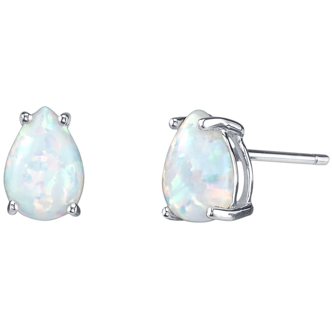 These classic earrings feature pear shape Peora created opal gemstones in 14K white gold.