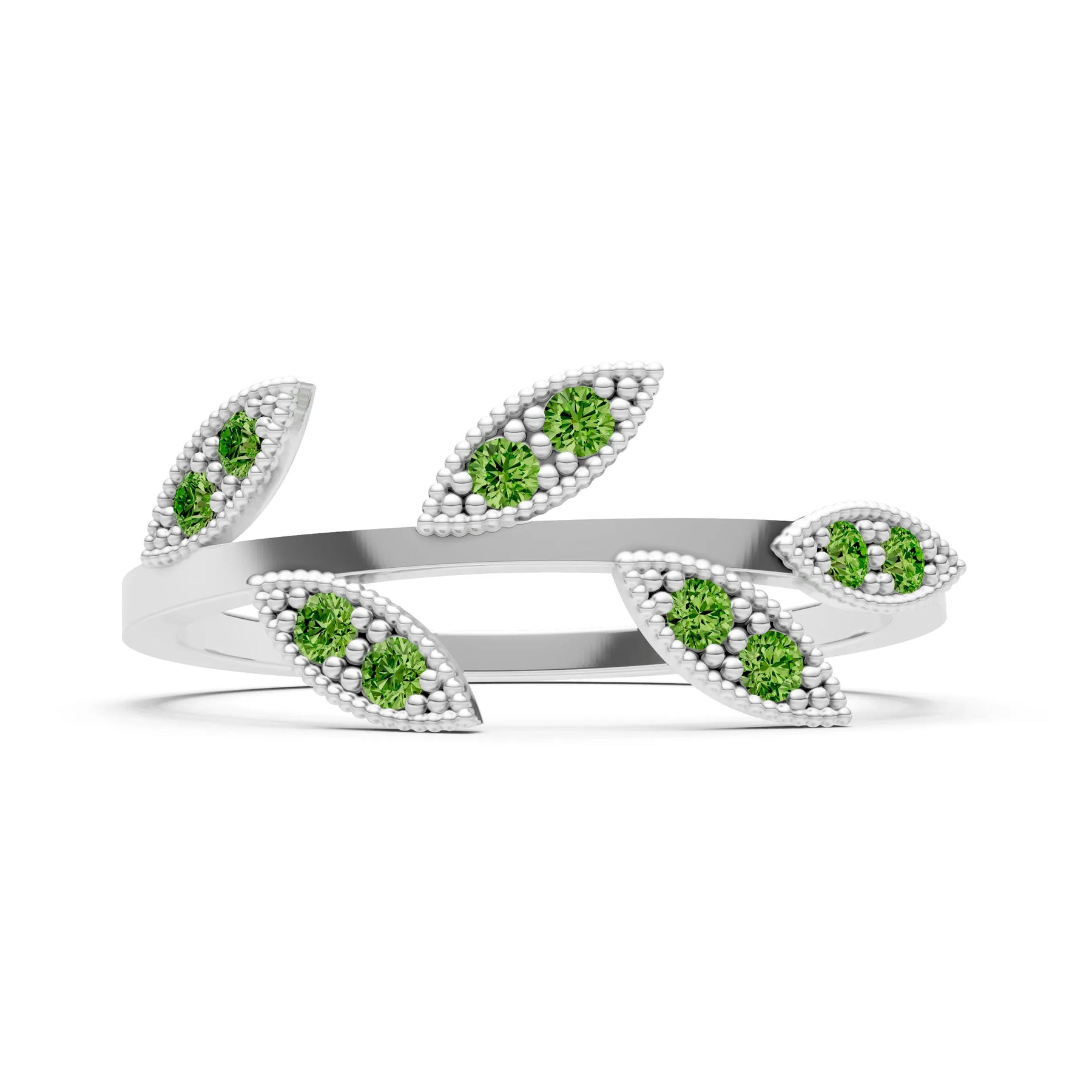 Discover the Dainty Leaf Cluster Gold Ring, featuring a radiant Peridot nestled within a beautifully crafted design, available in 10k, 14k, and 18k gold with your choice of White, Yellow, or Rose Gold. Peora's reputation for quality craftsmanship shines through in this meticulously designed piece. Crafted with a focus on beauty and responsibility, this ring embodies the spirit of nature while offering a luxurious touch, making it not just an accessory but a treasure to cherish. Peora is committed to responsible sourcing, ensuring that each gemstone is thoughtfully selected for its outstanding clarity and vibrant color. Each ring comes elegantly packaged in a luxurious gift box, ideal for gifting or safekeeping.