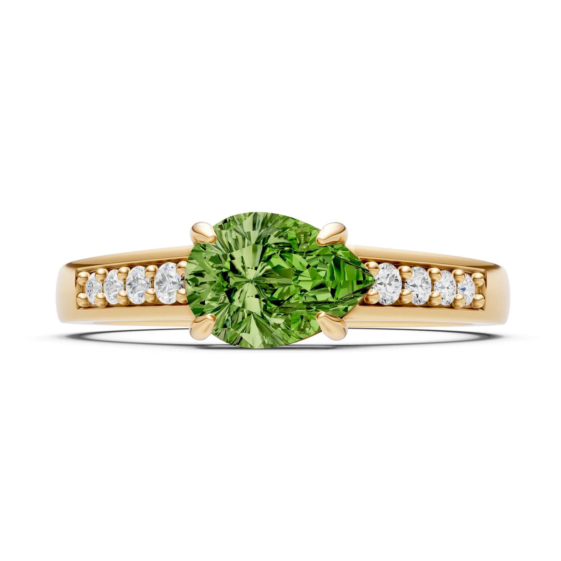Peridot East West Pear Gemstone Ring with Accents
