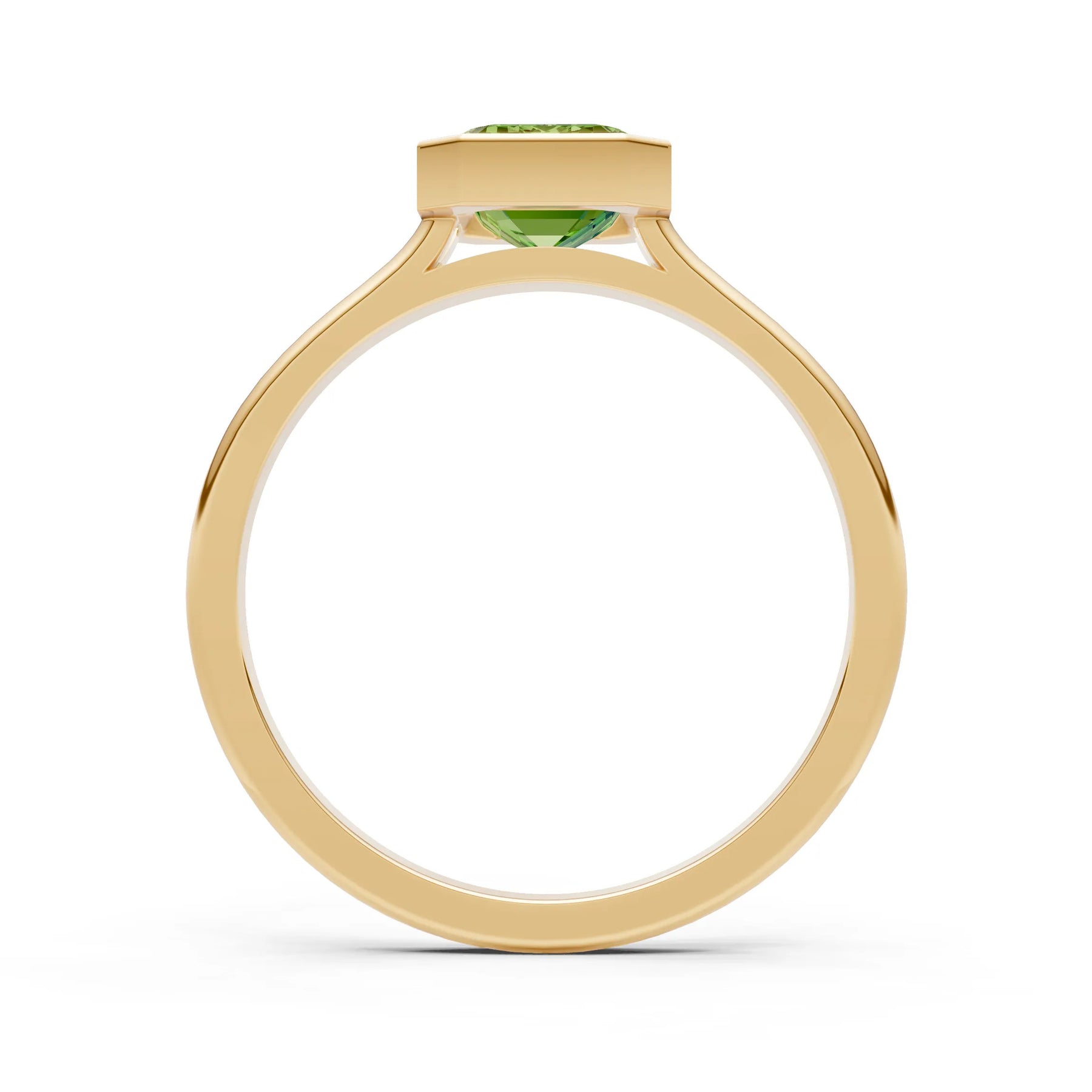 Peridot Emerald Cut Bezel Set Solitaire Ring