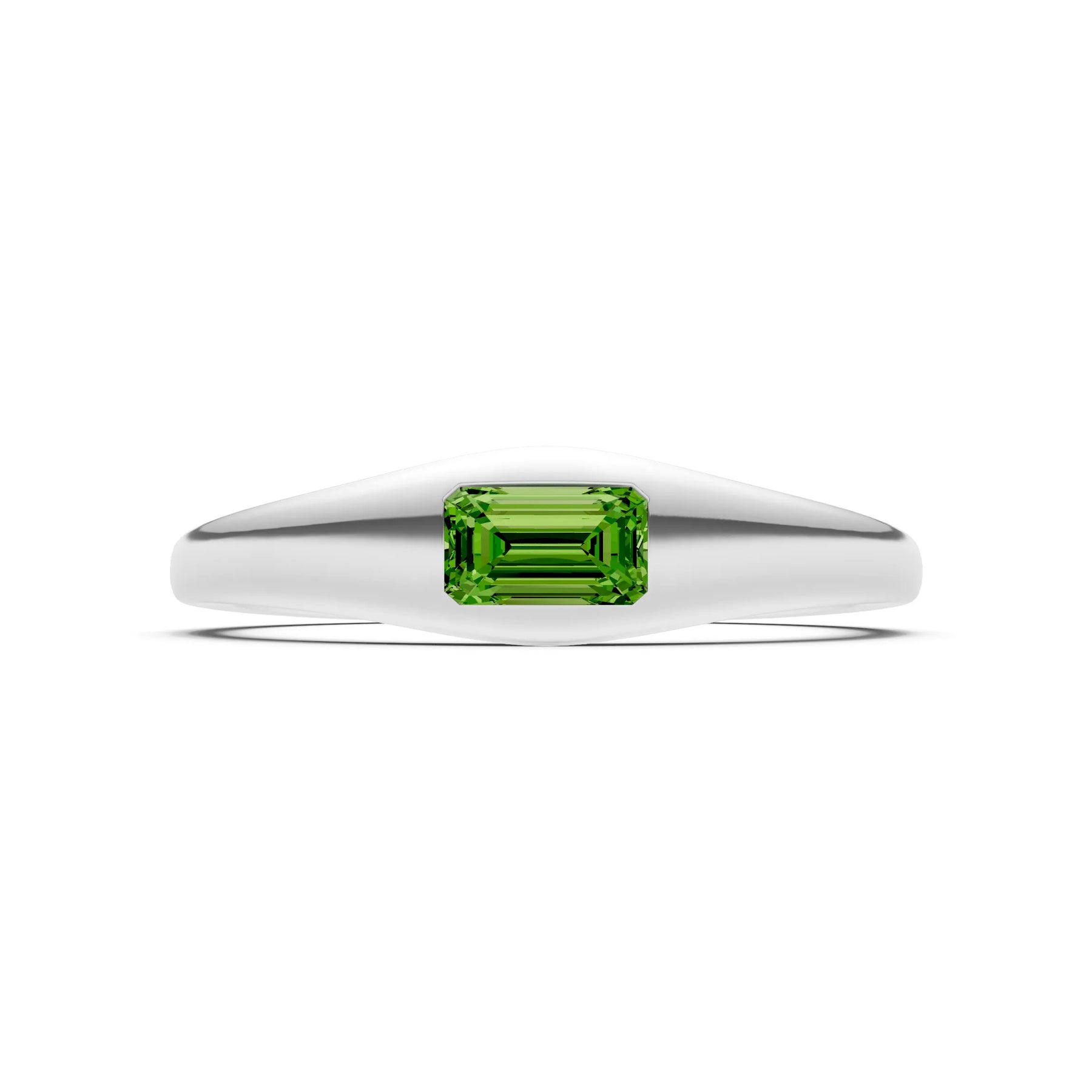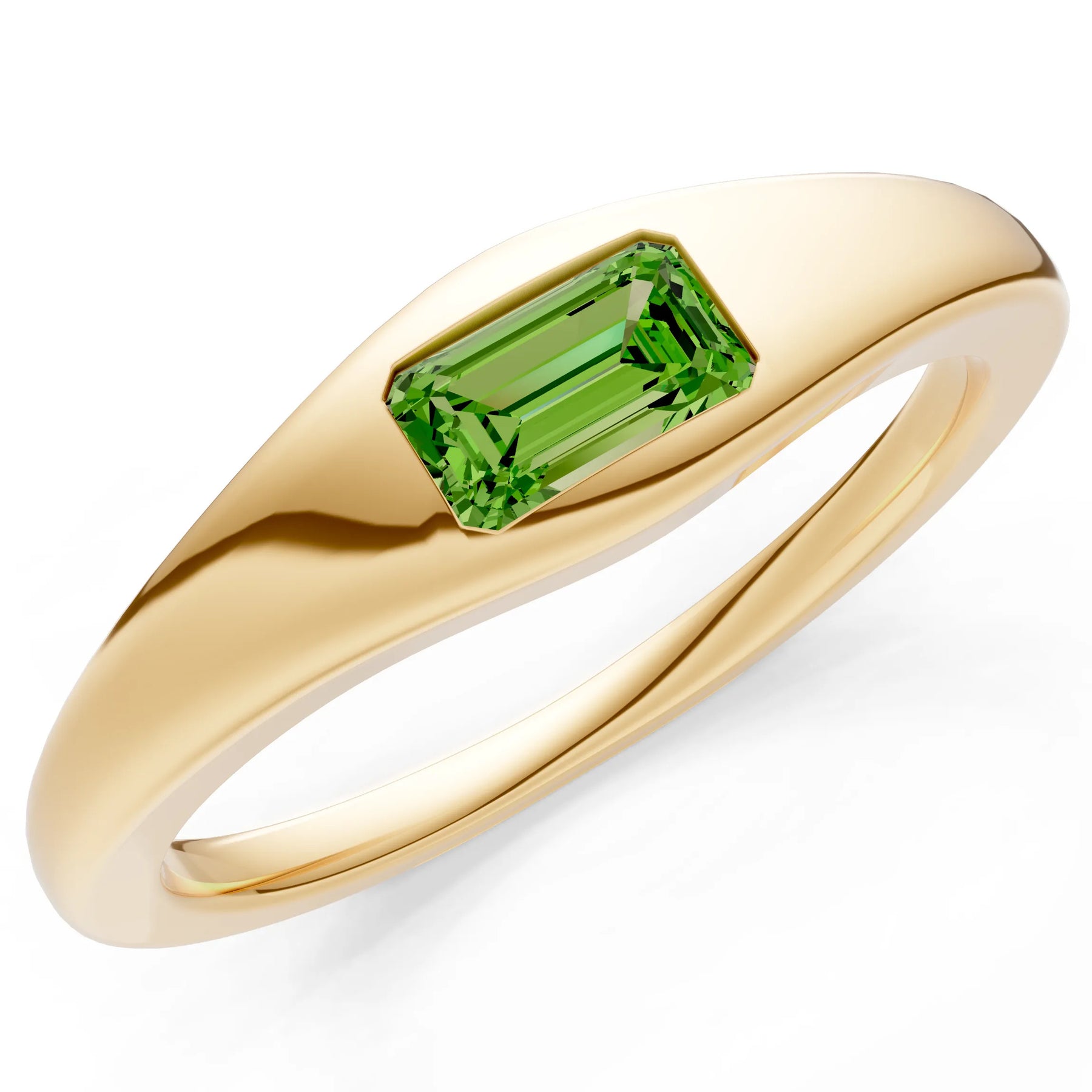 Peridot Flush-Set Emerald Cut Gemstone Mini Signet Ring