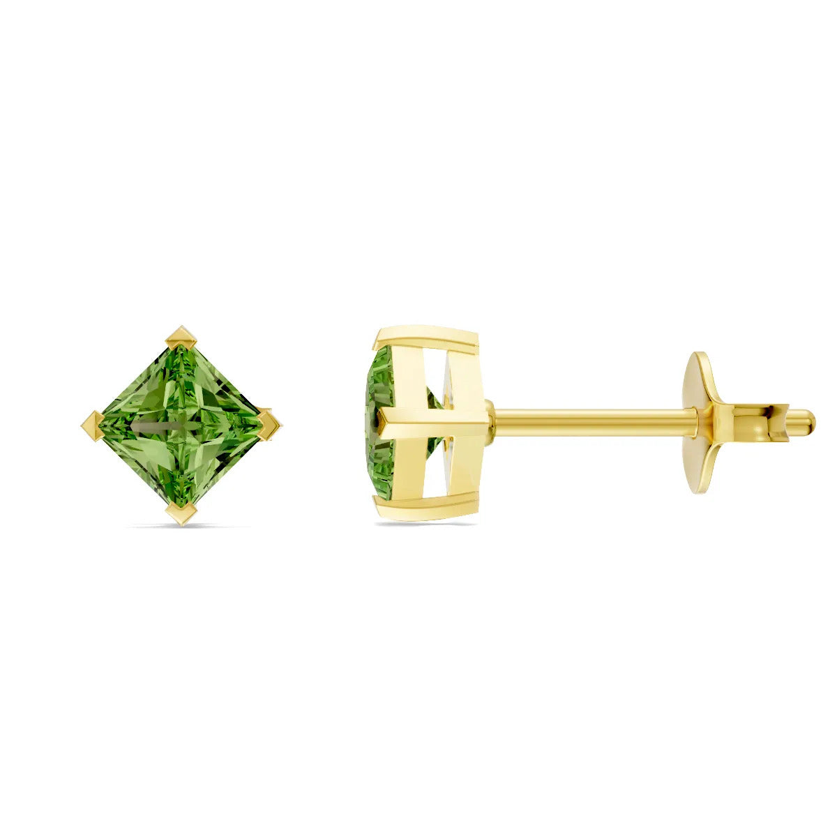 Peridot Princess Studs - NSEW Prongs - 4mm
