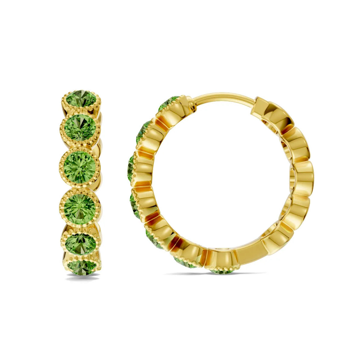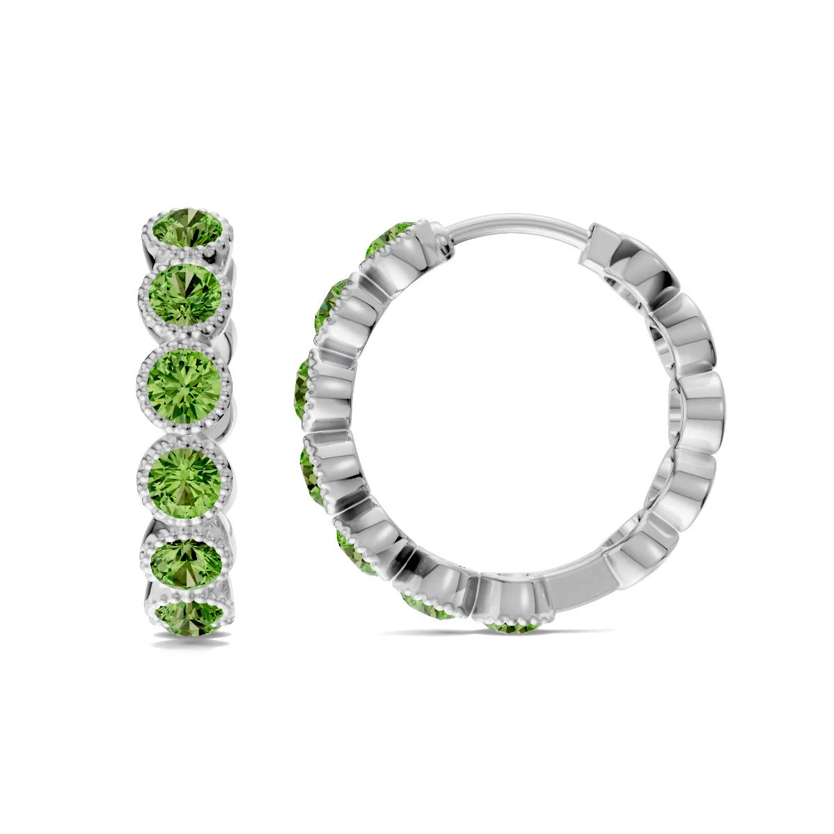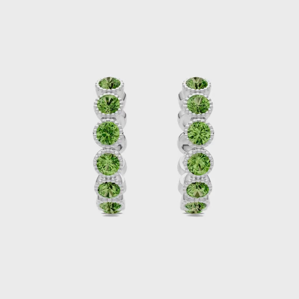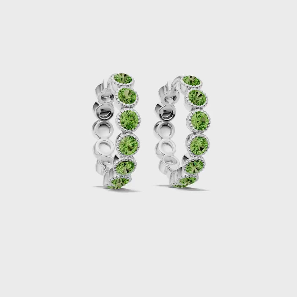 Peridot Round Bezel Hoop Earrings with Milgrain