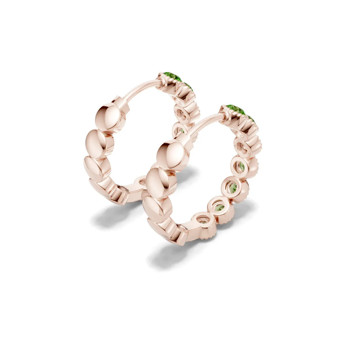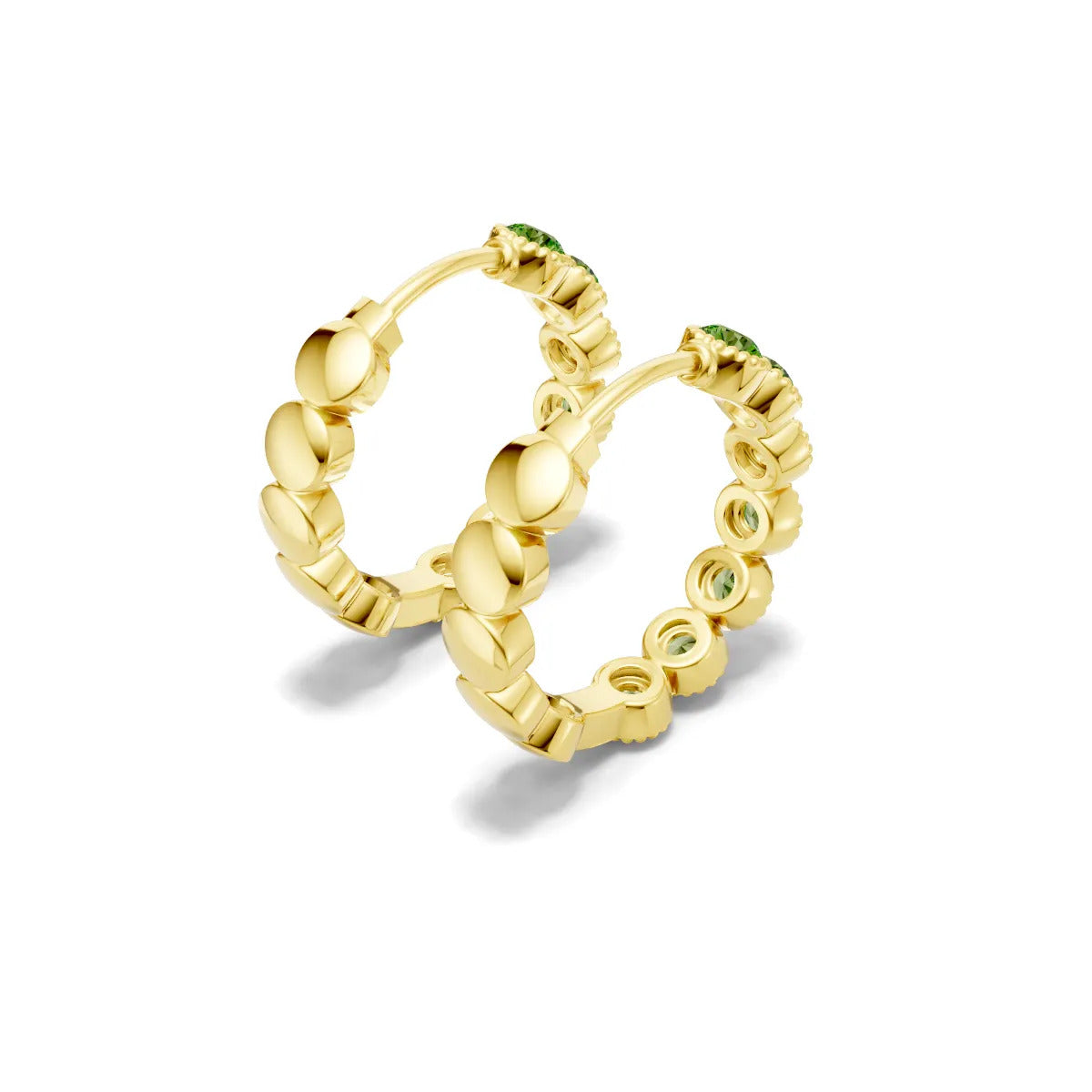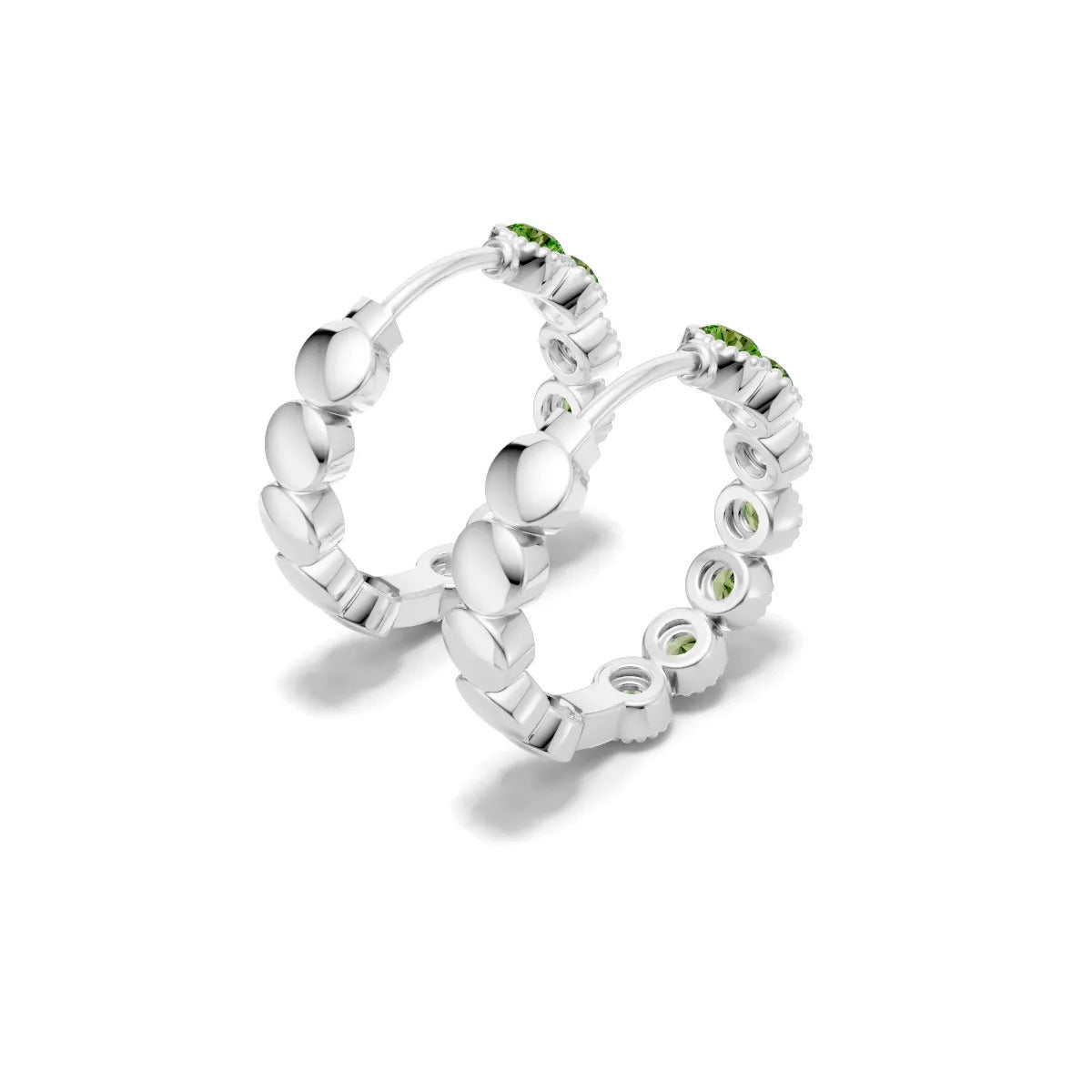 Peridot Round Bezel Hoop Earrings with Milgrain