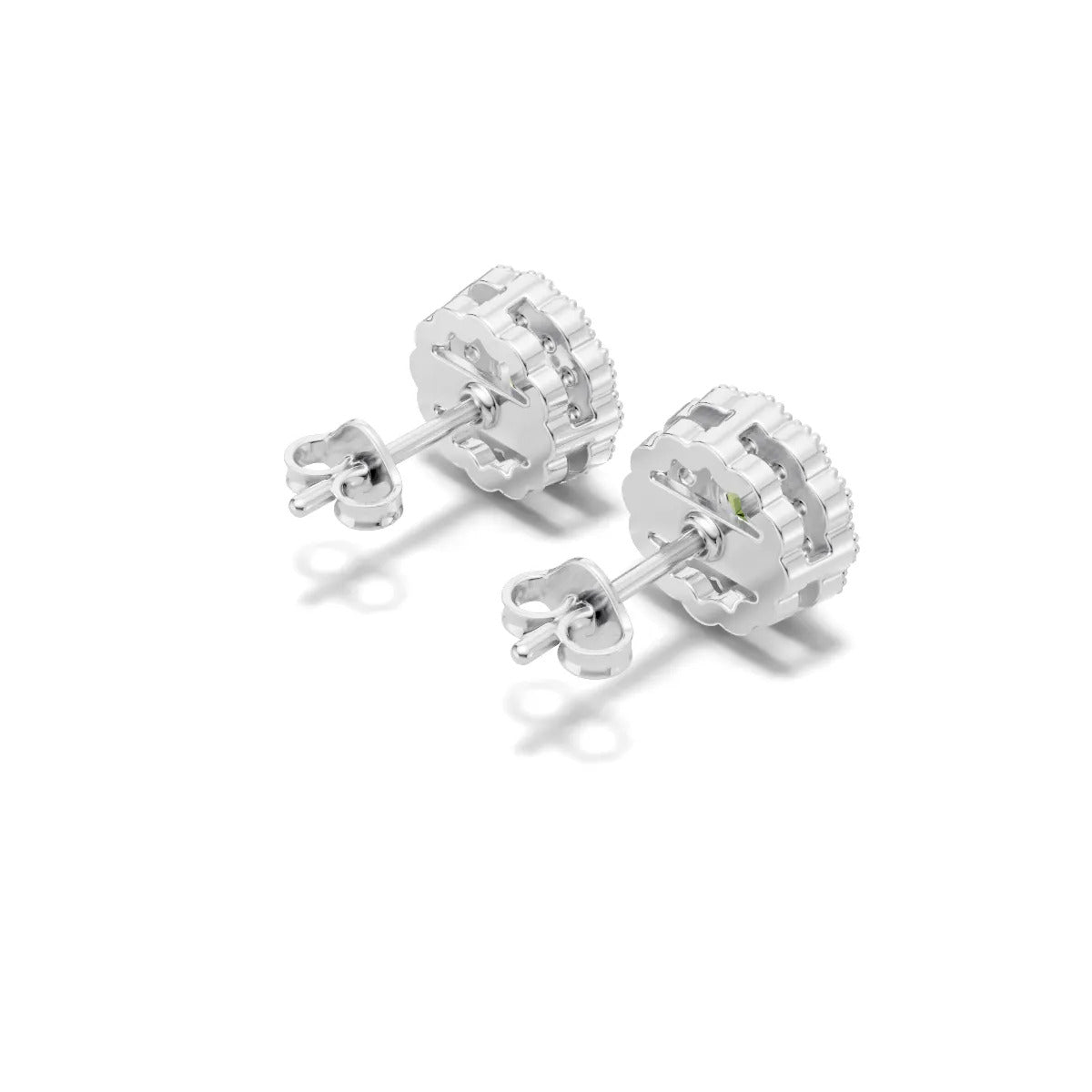 Peridot Round Floral Halo Earrings - 5mm