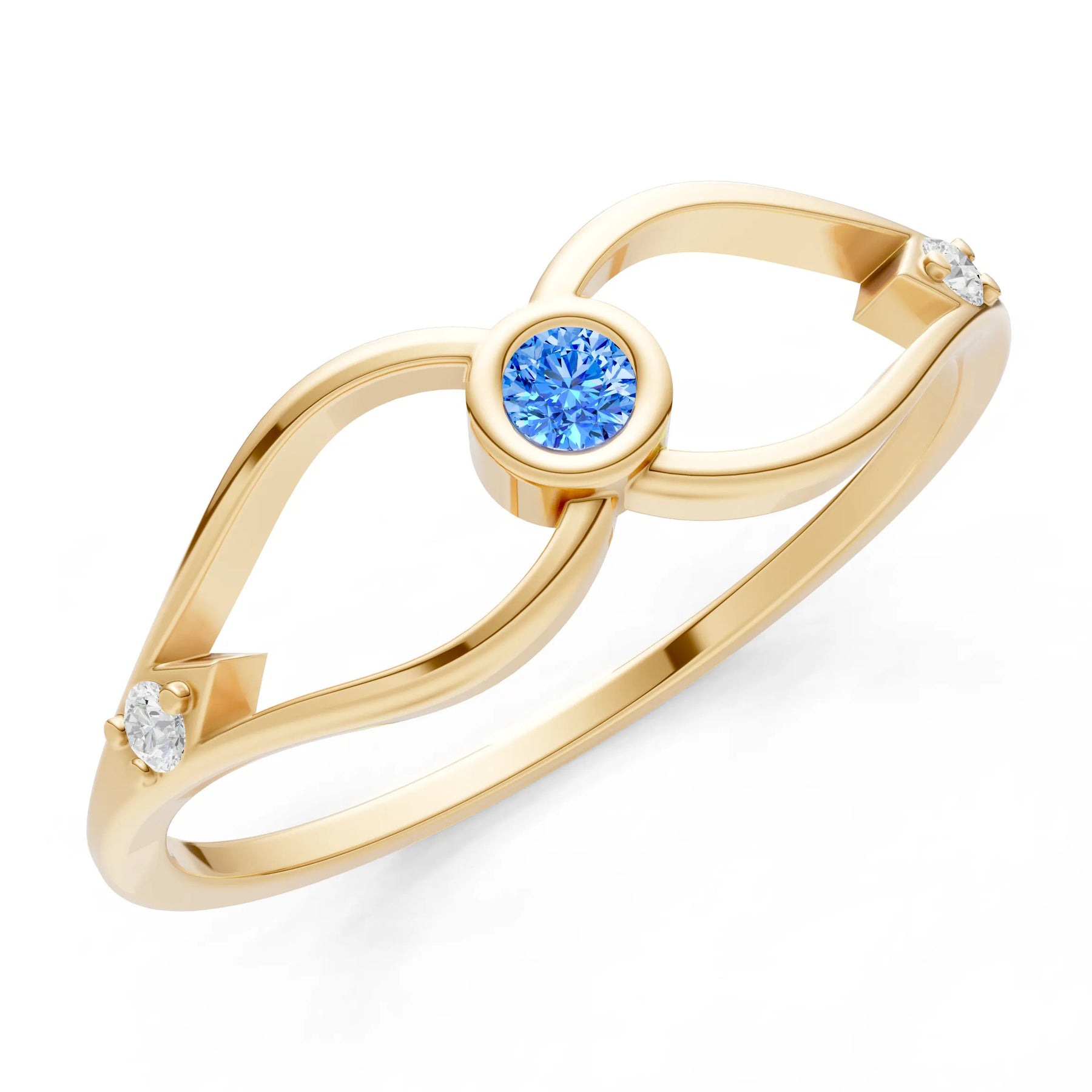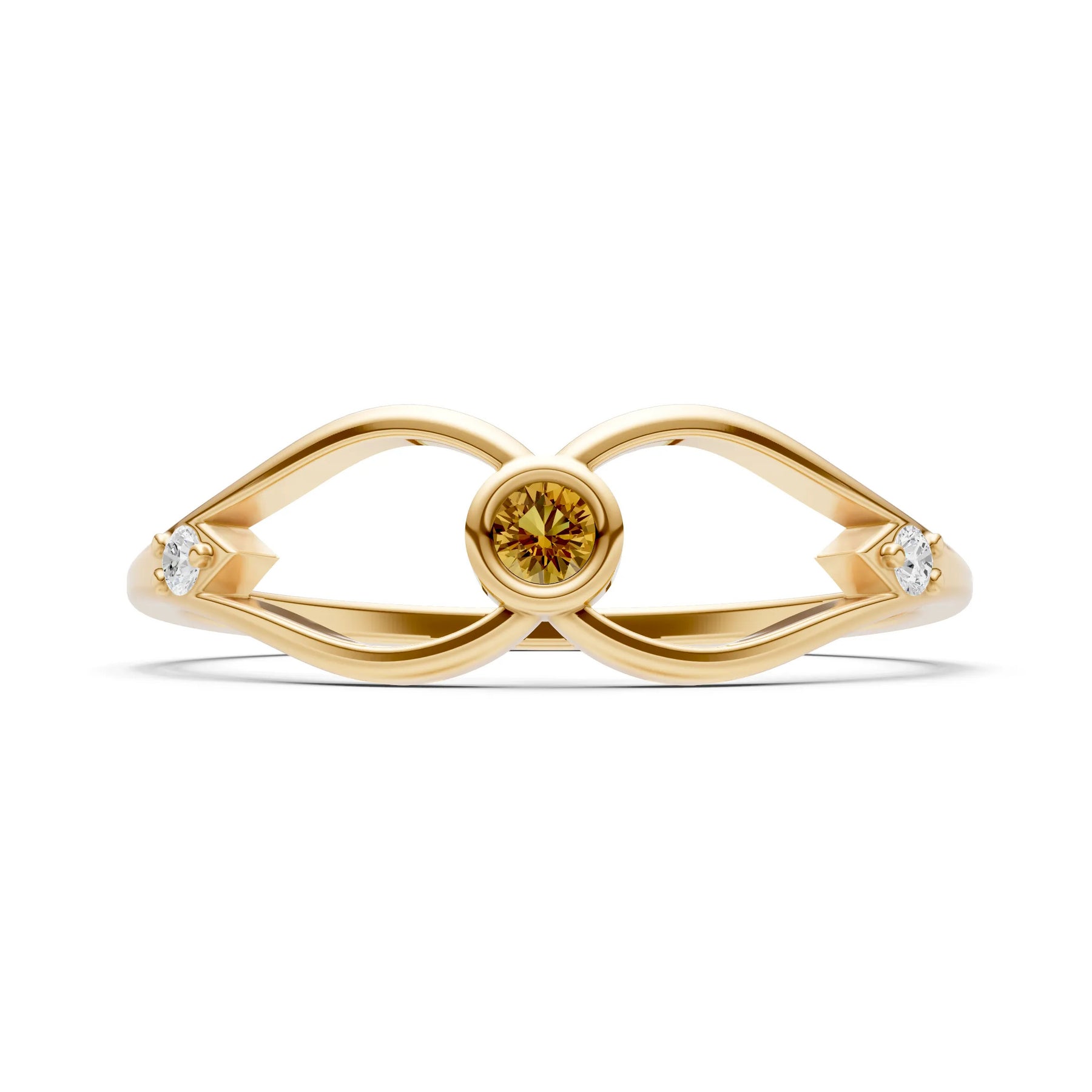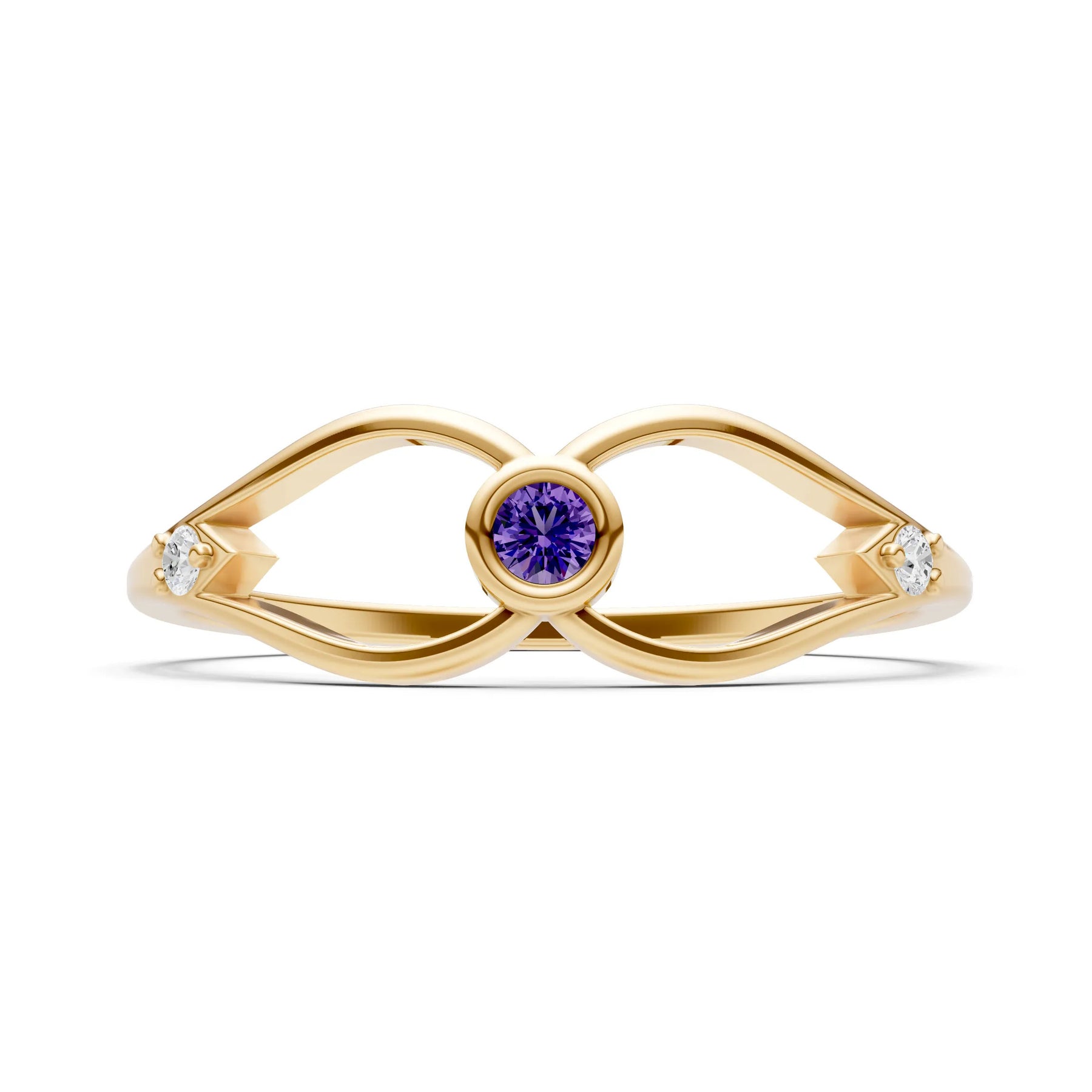 Dainty Bezel Twist Crossover Ring – Round