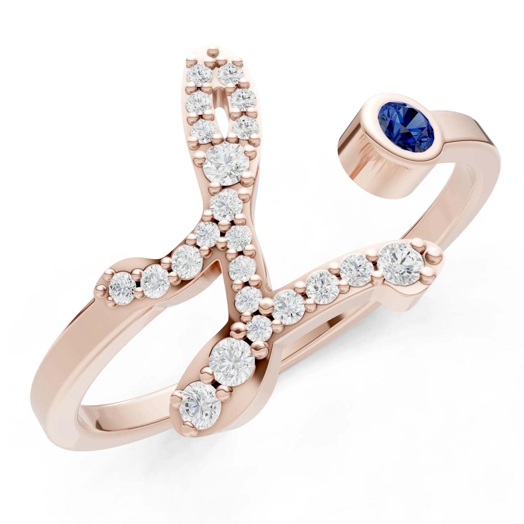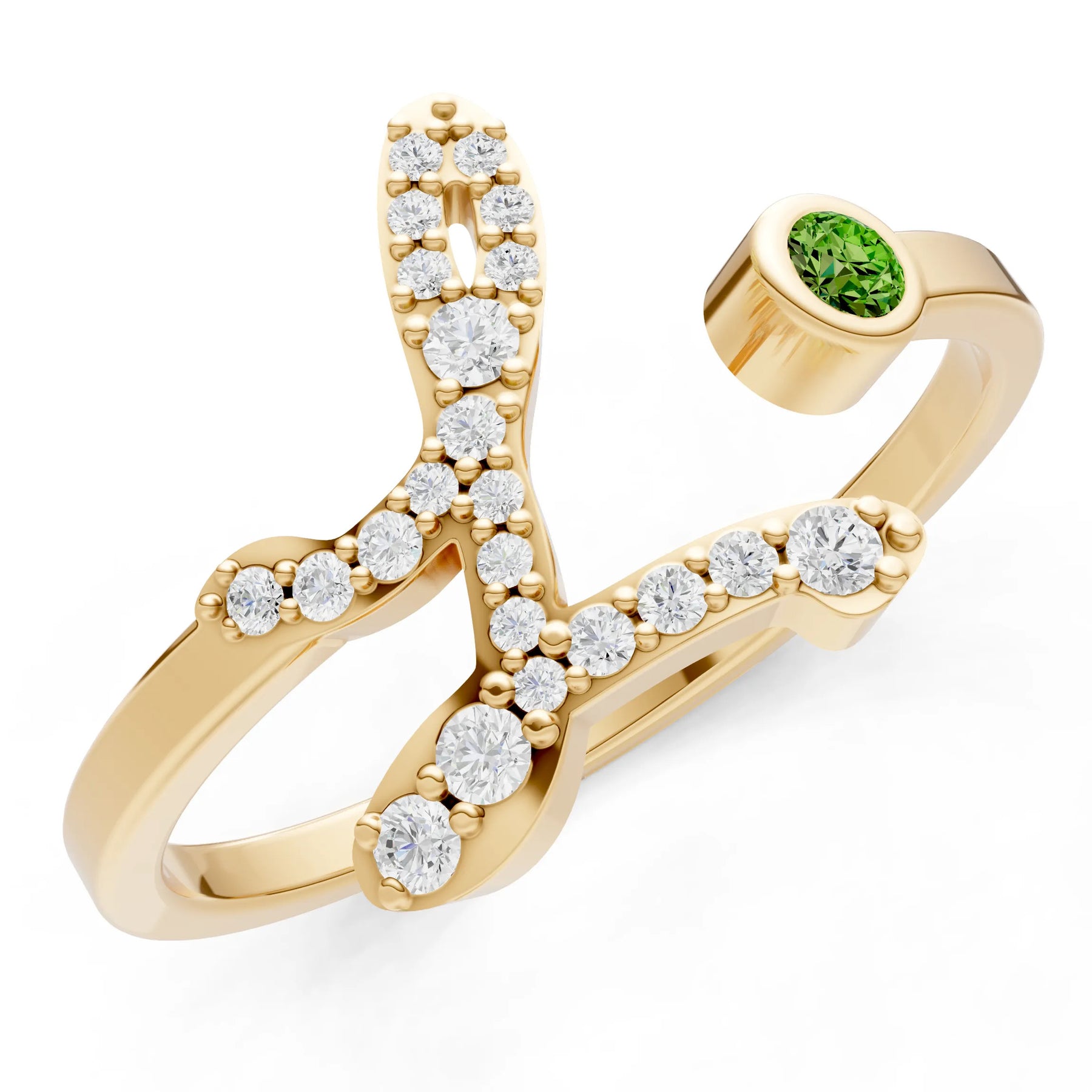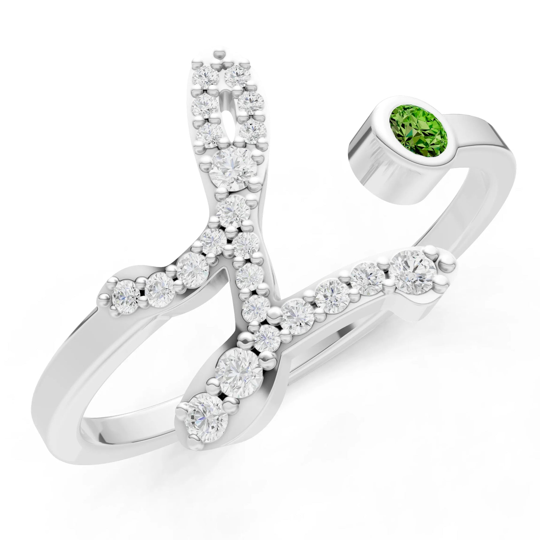Dainty Initial Letter Birthstone Open Ring – L
